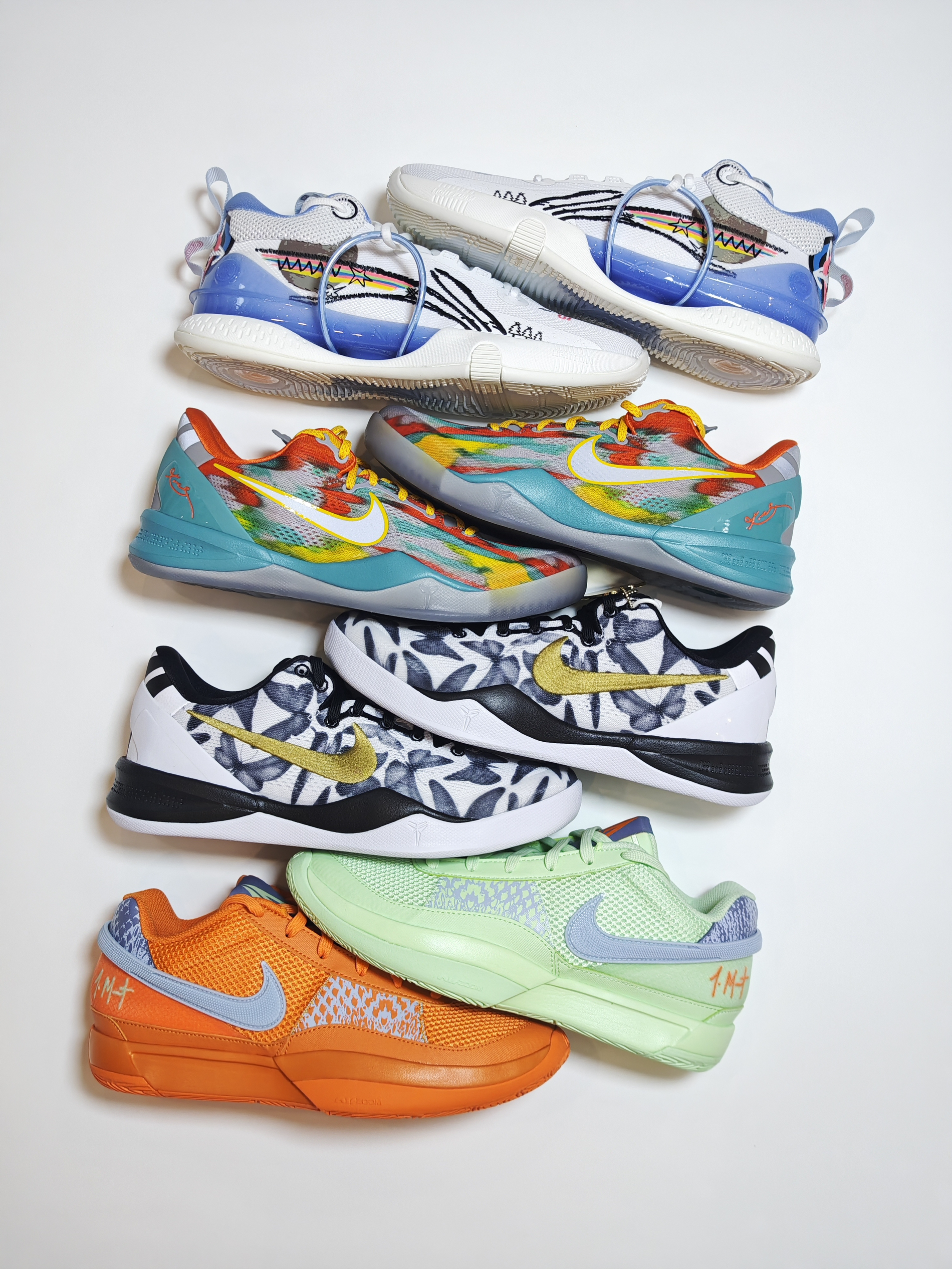 分享下我最近入手的篮球鞋 1️⃣闪击8圣诞节 2️⃣科比8威尼斯海滩 3️⃣科比8gigi 4️⃣莫兰特1绿橙色鸳鸯 都是低帮鞋,兄弟们最喜欢哪双
