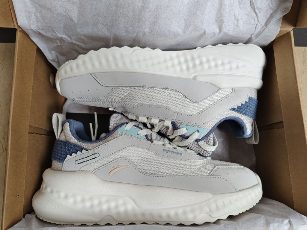 安踏不羁系列的运动休闲鞋,这双鞋我已经入手一段时间了,现在分享一下我的穿着感受,给想入手的朋友作些参考—— 👍外观设计:这双鞋采用白灰蓝的颜色搭配,比较清新淡雅,非常适合春夏季节,鞋型非常好看也很百搭。鞋型是流线型设计,非常好看,既运动又休闲。后跟绷带锁定设计彰显巧思。 鞋面采用大面积网眼的设计,夏天穿着很透气不闷脚。 👍中底:这双鞋的中底采用软质发泡材质,带来不错的缓震体验。所以穿起来脚感舒适,...