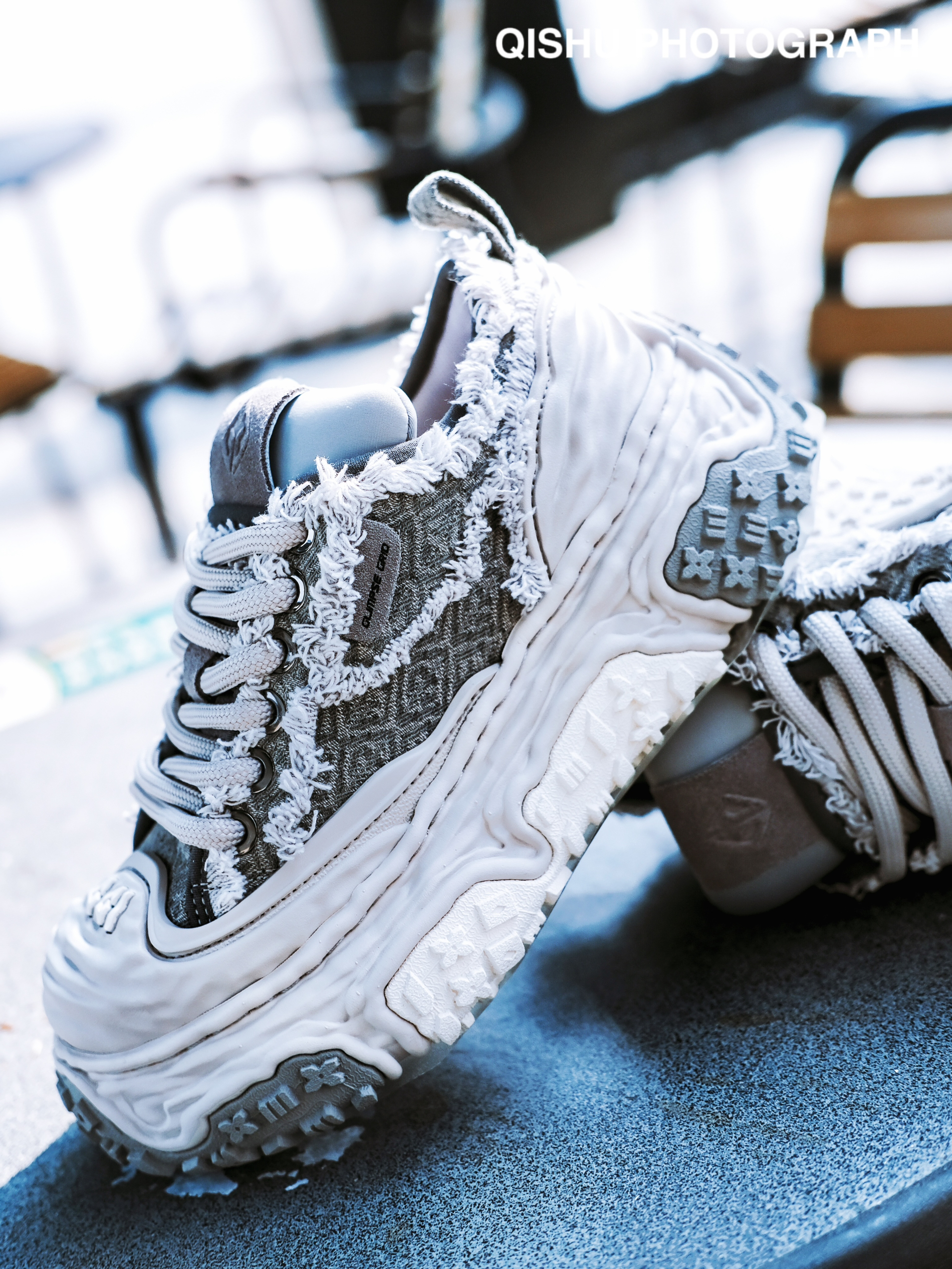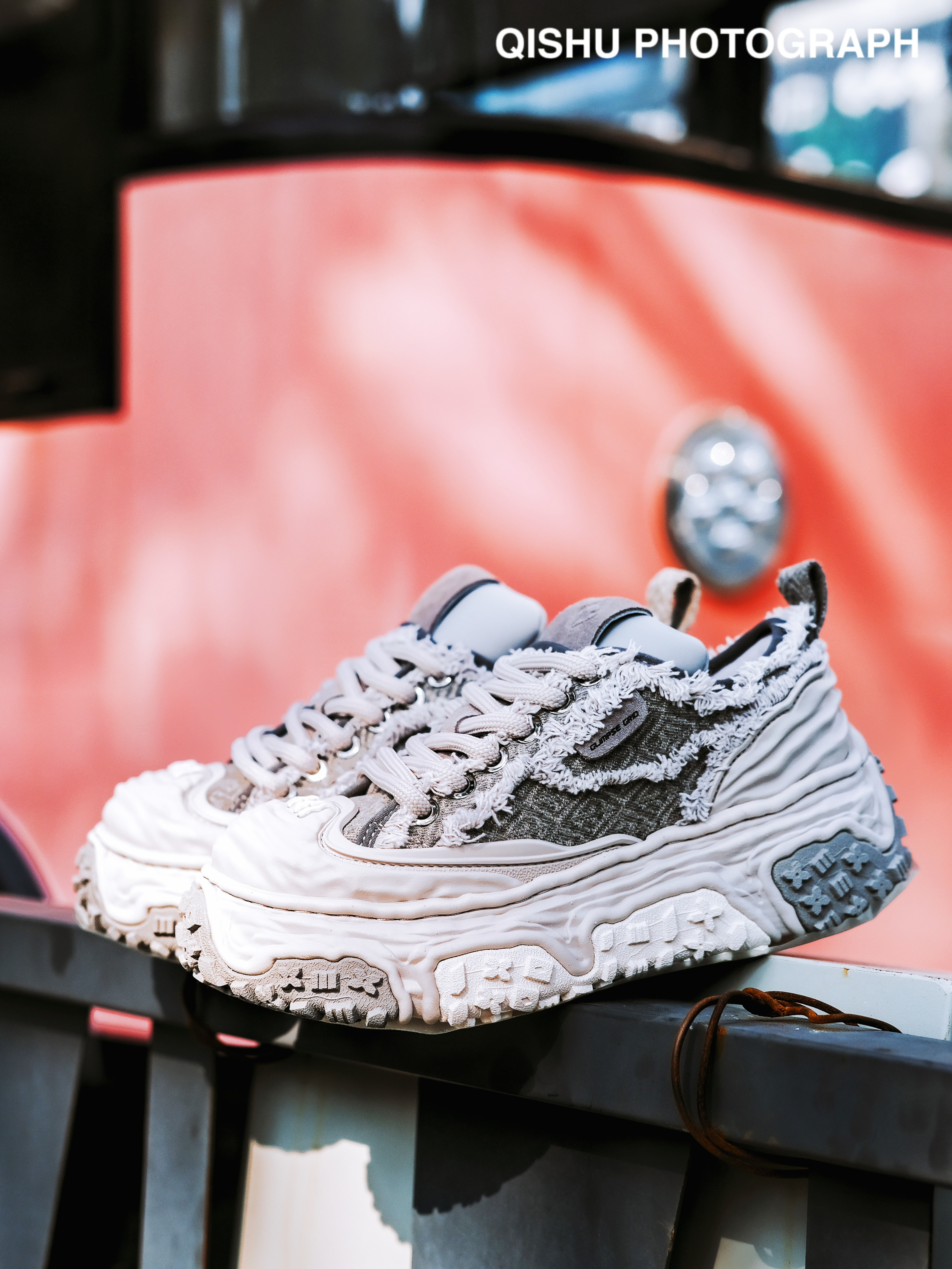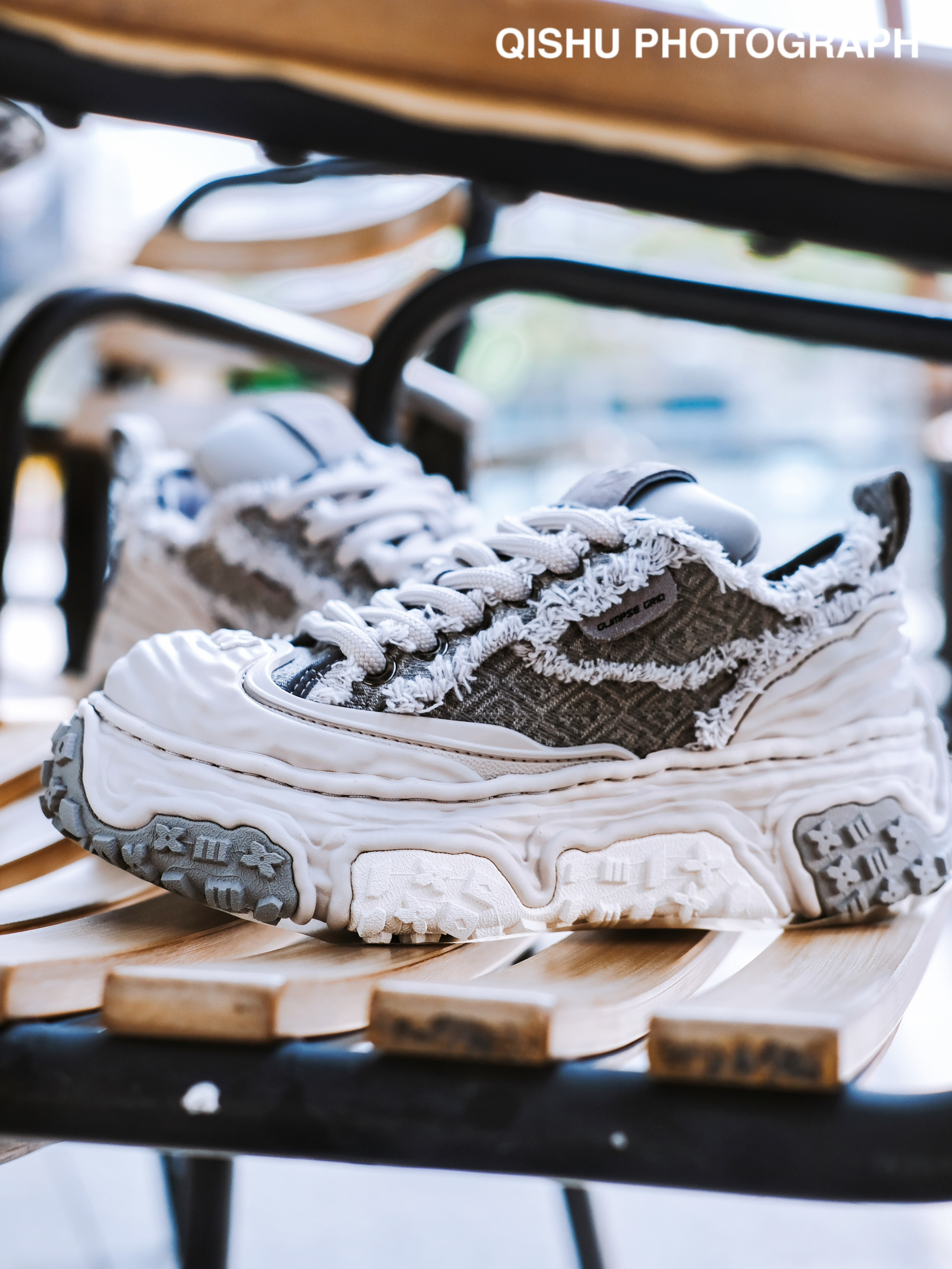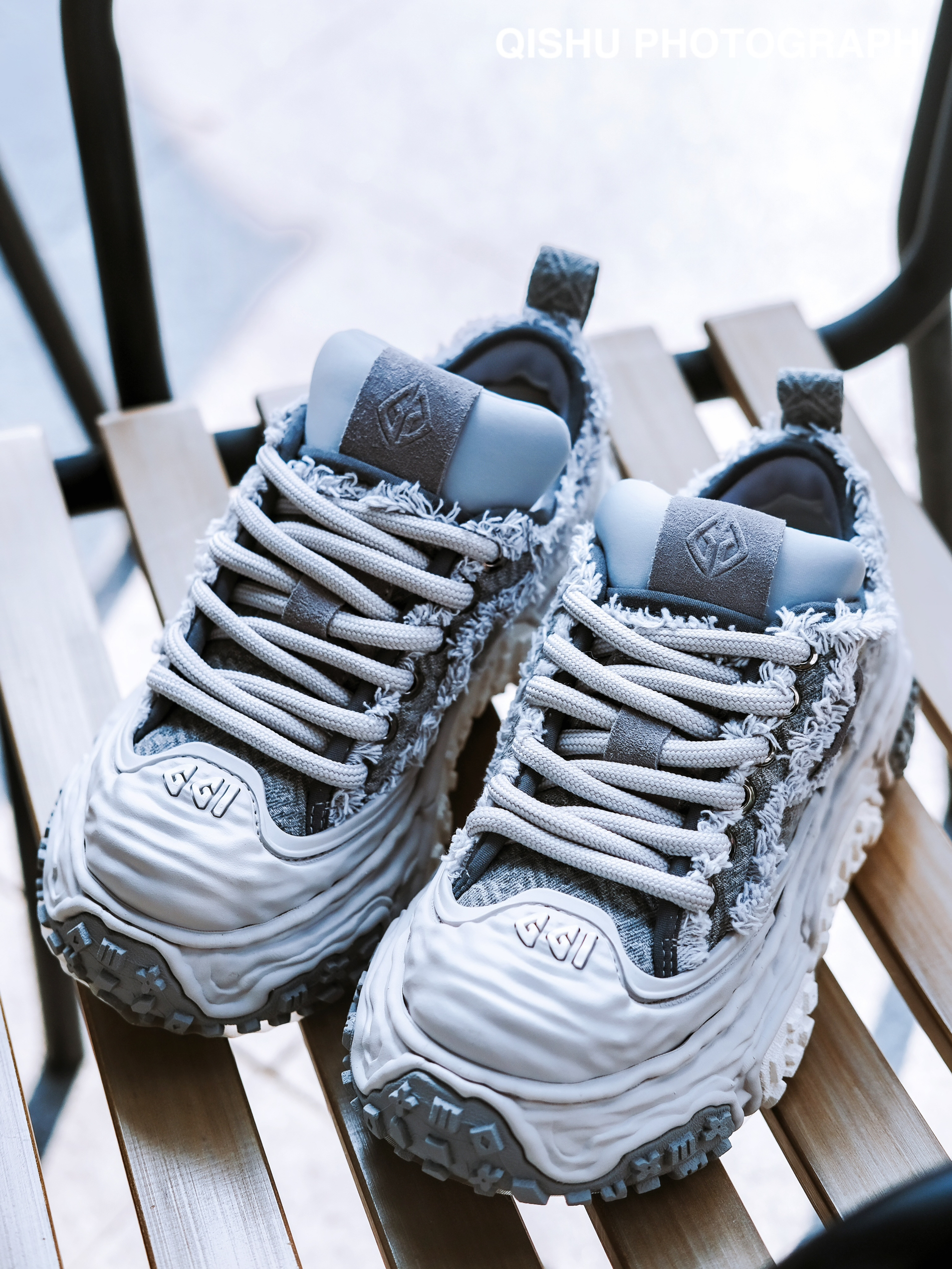 今天再来给大家开箱一双颜值很赞的女鞋,依然是来自 ggi的产品。 这款行云系列的厚底板鞋造型感很强。鞋面是采用水洗牛仔布的材质,质感很不错,特别是破坏流苏感设计,让整双鞋款外观非常的有层次感。而且星河灰的配色也比较百搭耐看。 厚厚的中底采用了溶解的设计,搭配轮胎纹路的大底,视觉冲击力十足。整体增高效果显著。 如果喜欢厚底板鞋,那可以入手这款轻松拿捏秋季氛围感穿搭!