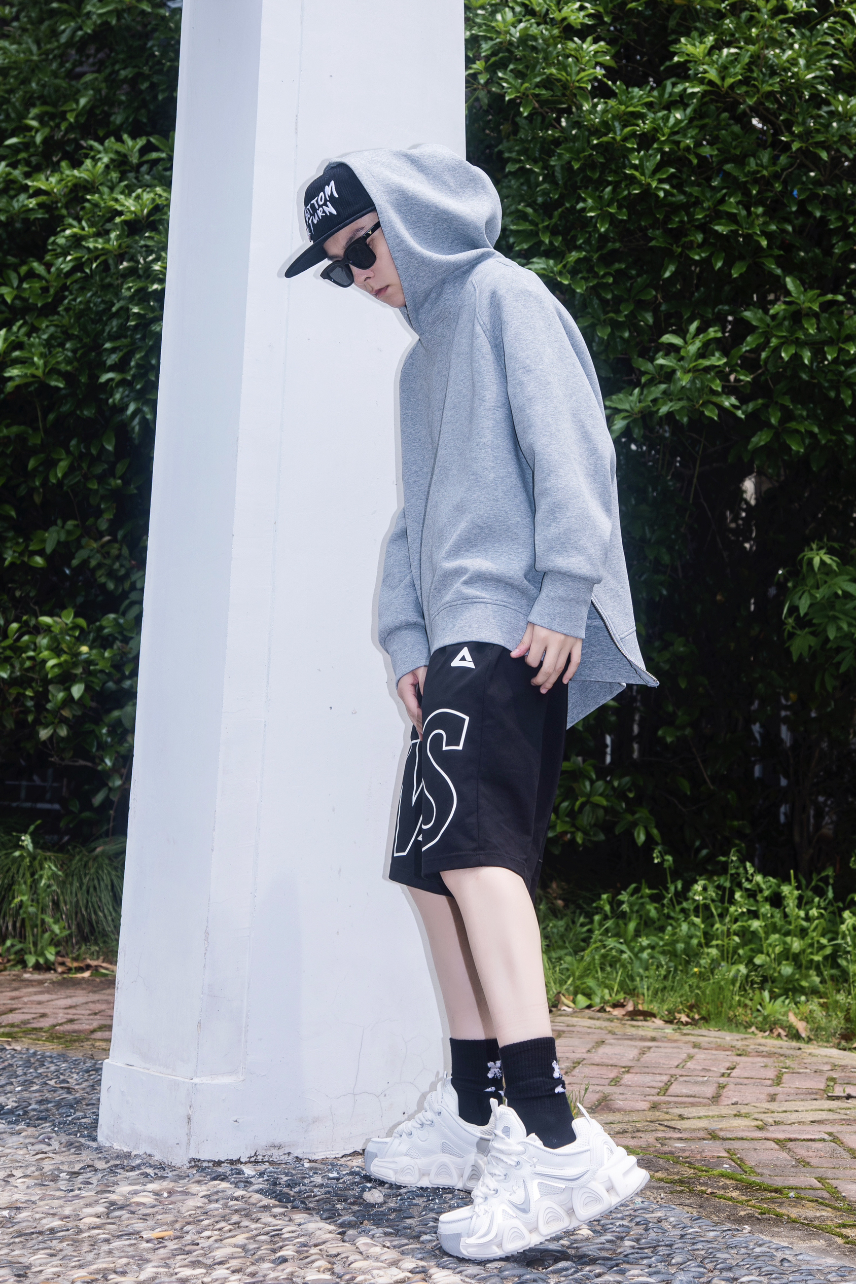 南方现在的温度 卫衣配短裤正合适 分享一套随性又有高级感的运动穿搭 穿搭指南: 上身一件灰色连帽卫衣 一定要选版型重磅挺阔的 显得hin高级 下身搭配一条匹克黑色五分篮球裤 宽松版型配复古字母印花 美式街头感十足 高克重的针织面料 自带垂感 无论逛街还是在运动场上都舒适 上脚一双灰白色运动鞋首尾呼应一下 春日的松弛感 主打一个舒适运动风