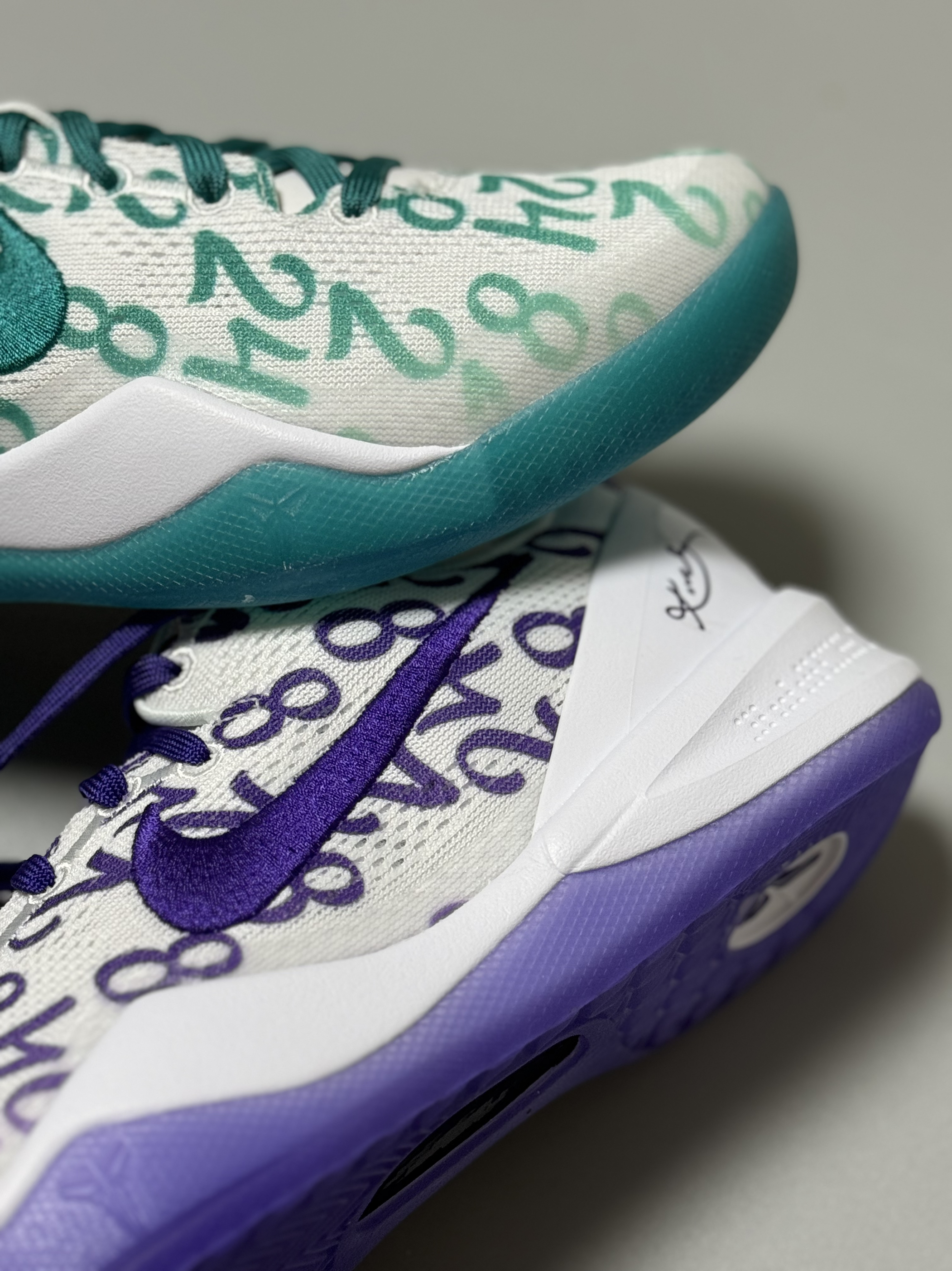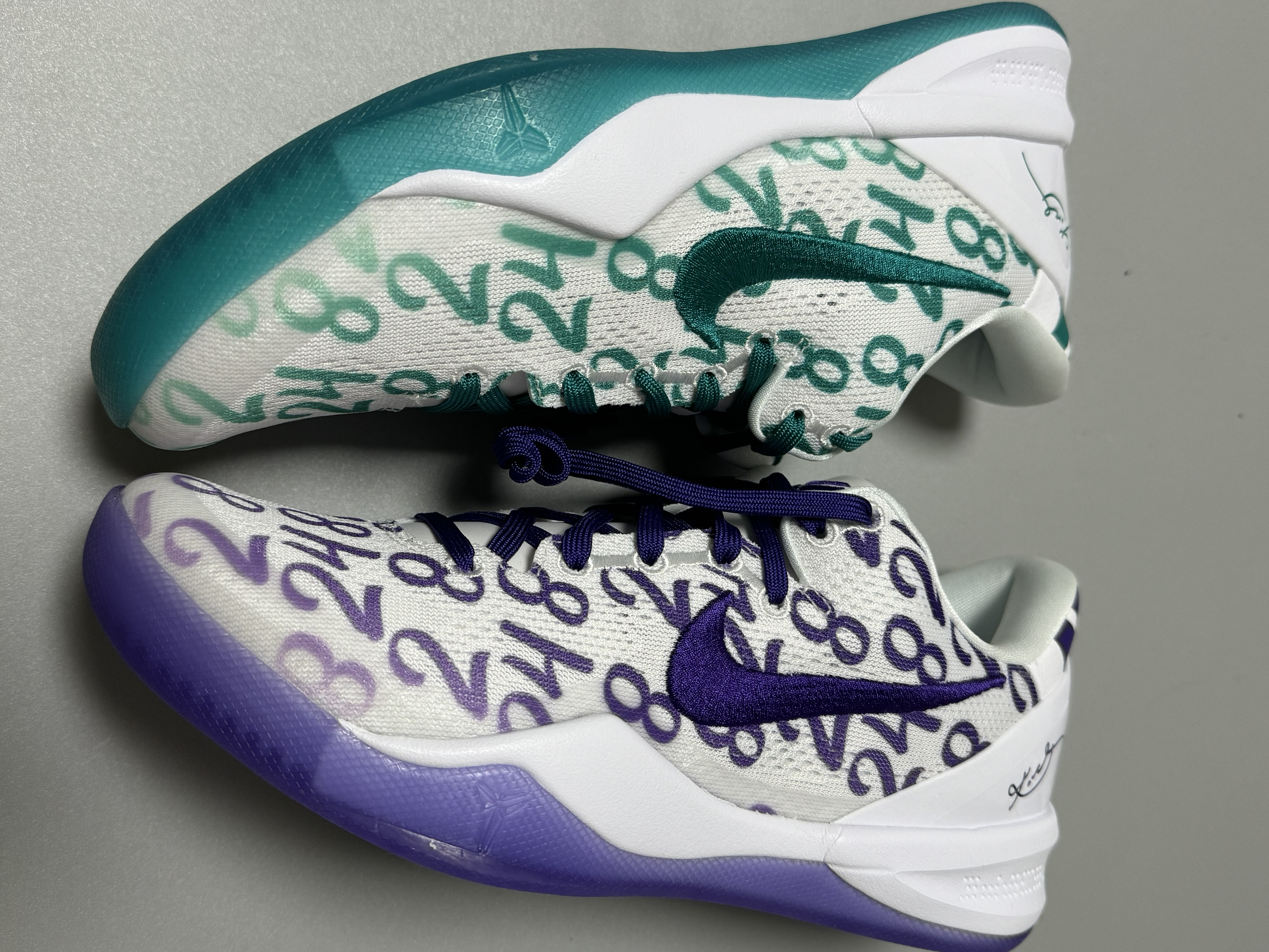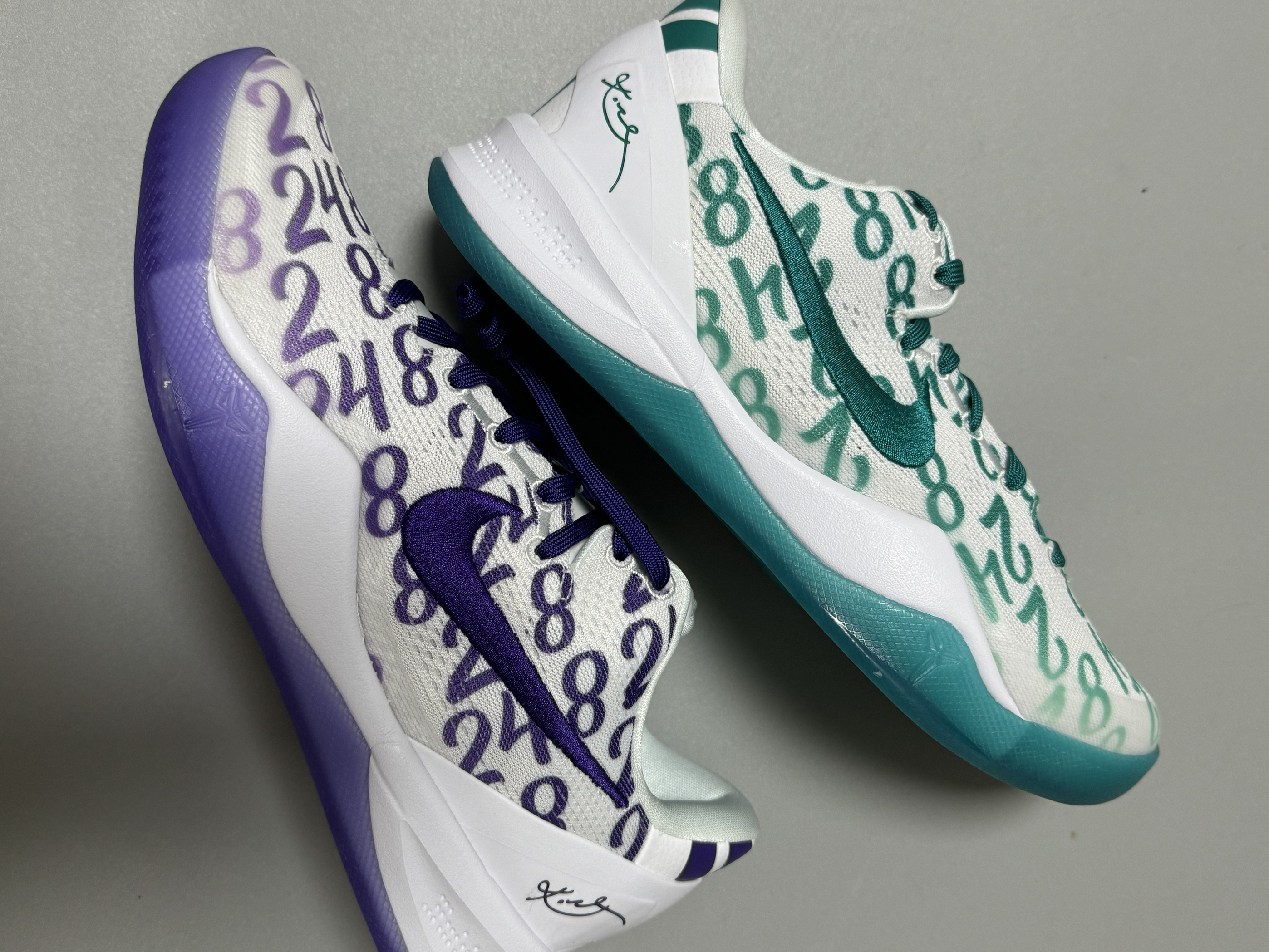 halo 阿迪来了,本期分享两双最近入手的kobe 8,一个双白紫配色,一双白绿配色,颜值都不弱 首先,我们看看这双白紫配色,整双鞋👟采用白紫搭配,鞋身编织网眼材料 Engineered Mesh 打造,轻质、透气,保证运动时的舒适性。 鞋舌均都采用厚鞋舌设计。后跟处是曼巴 LOGO、科比签名都悉数还原。科技方面,均与之前推出的「纯白」Nike Kobe 8 Protro 相同,采用 Nike R...