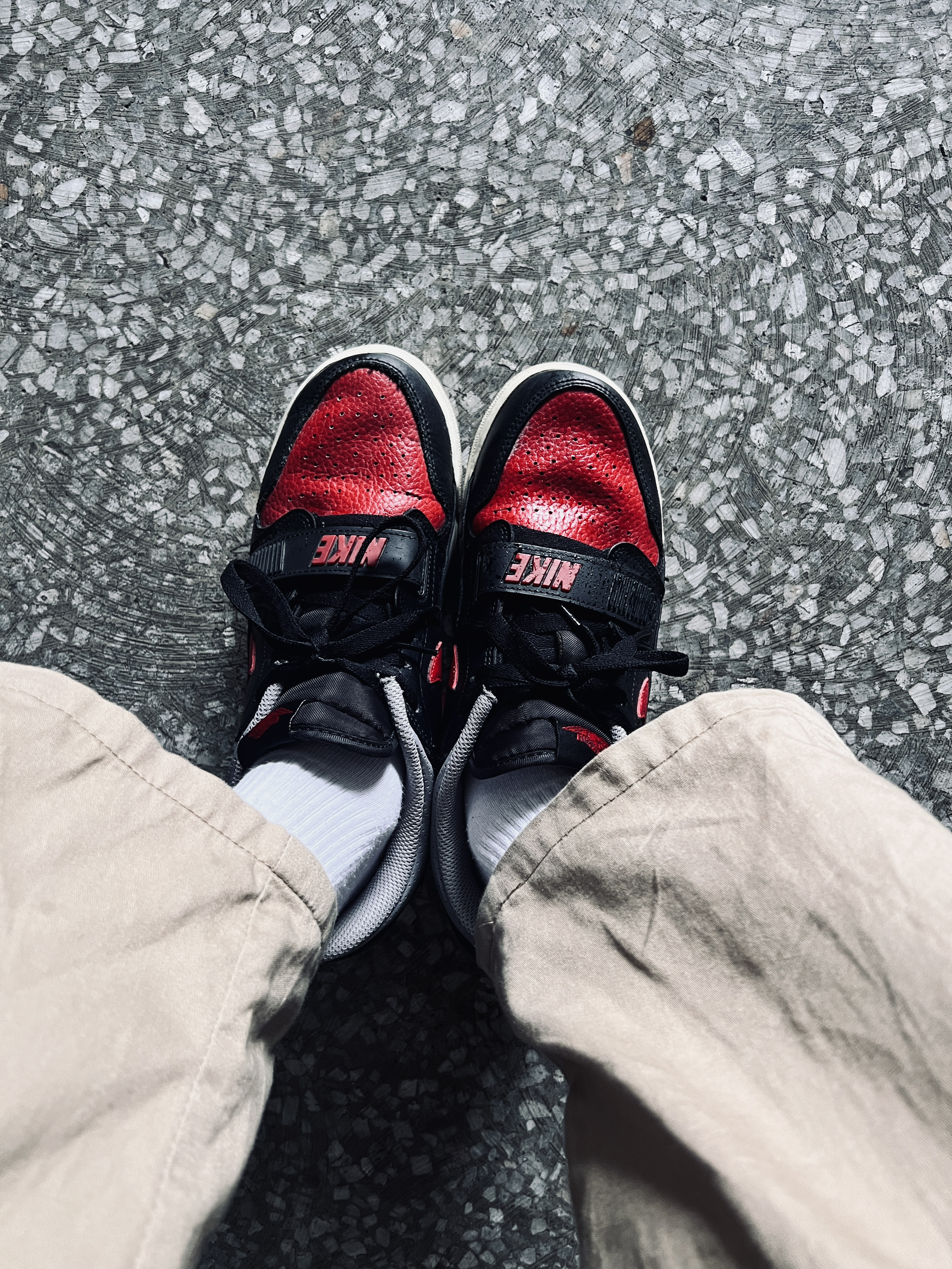 👟球鞋名称:Aj312 黑红爆裂 🔍分享理由:百搭款休闲鞋 🤔整体感受:Aj312一款久经沙场的经典鞋款,这双鞋我穿了几年,除了氧化,其他都还好!主要还百搭!