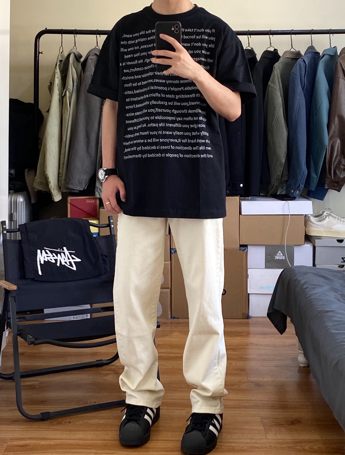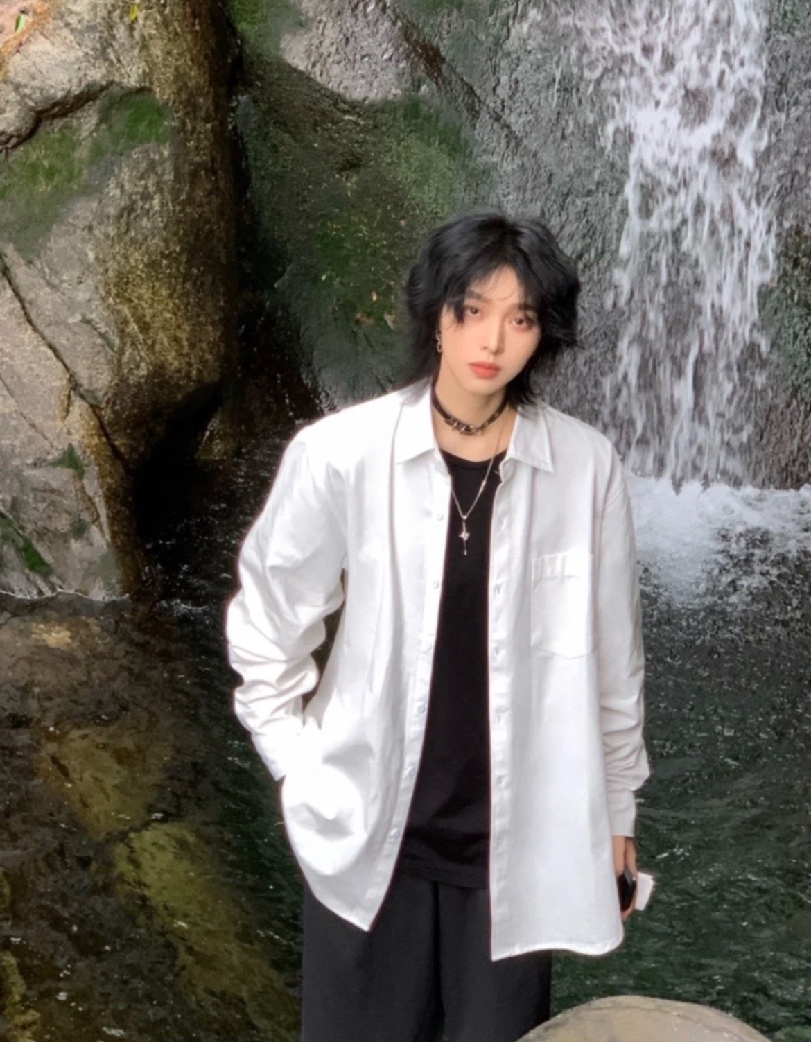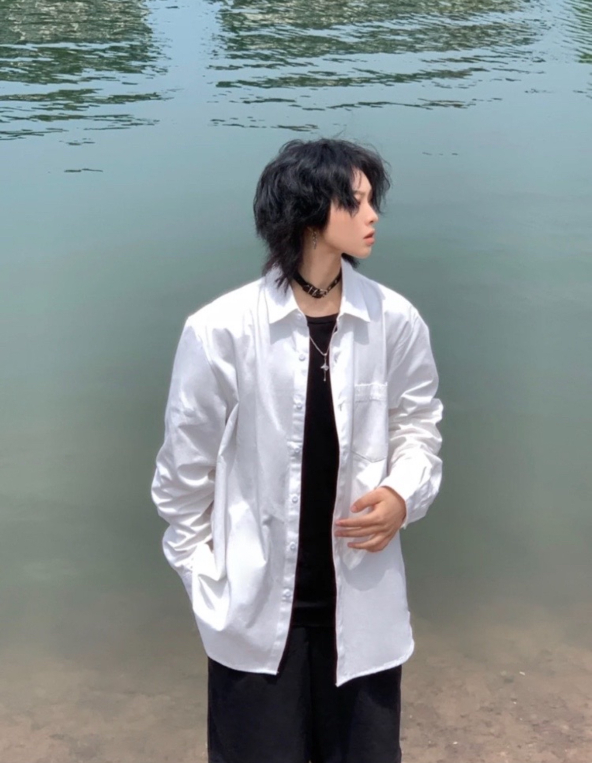白白净净的清秀感真的超级爱的,这件白色衬衫就可以穿出这种感觉,宽松的版型可以外搭真的不错!