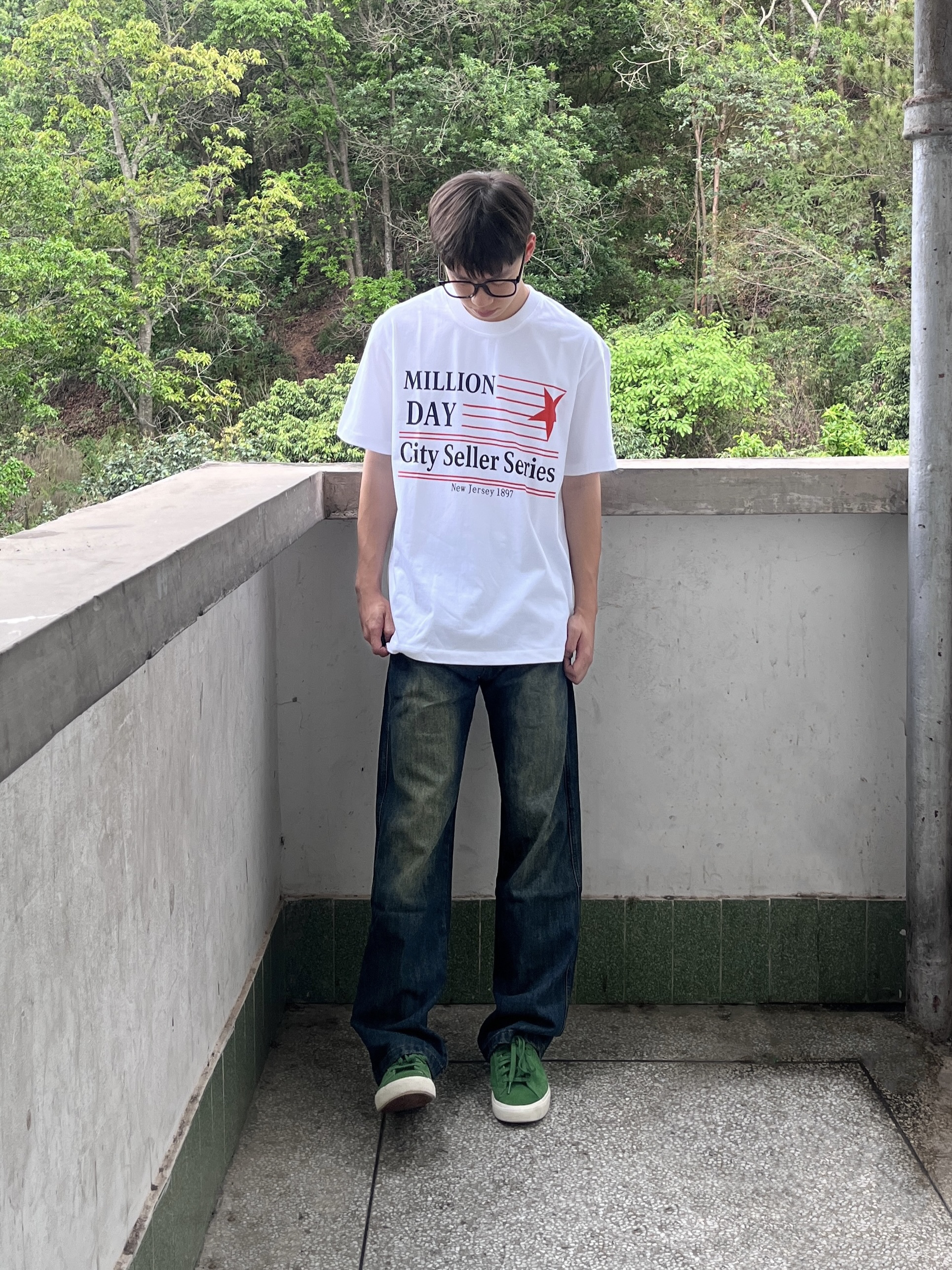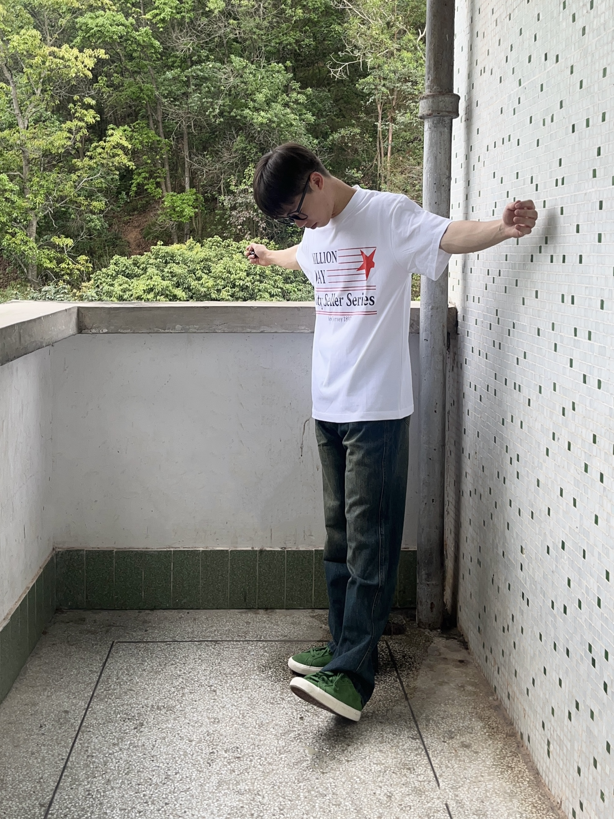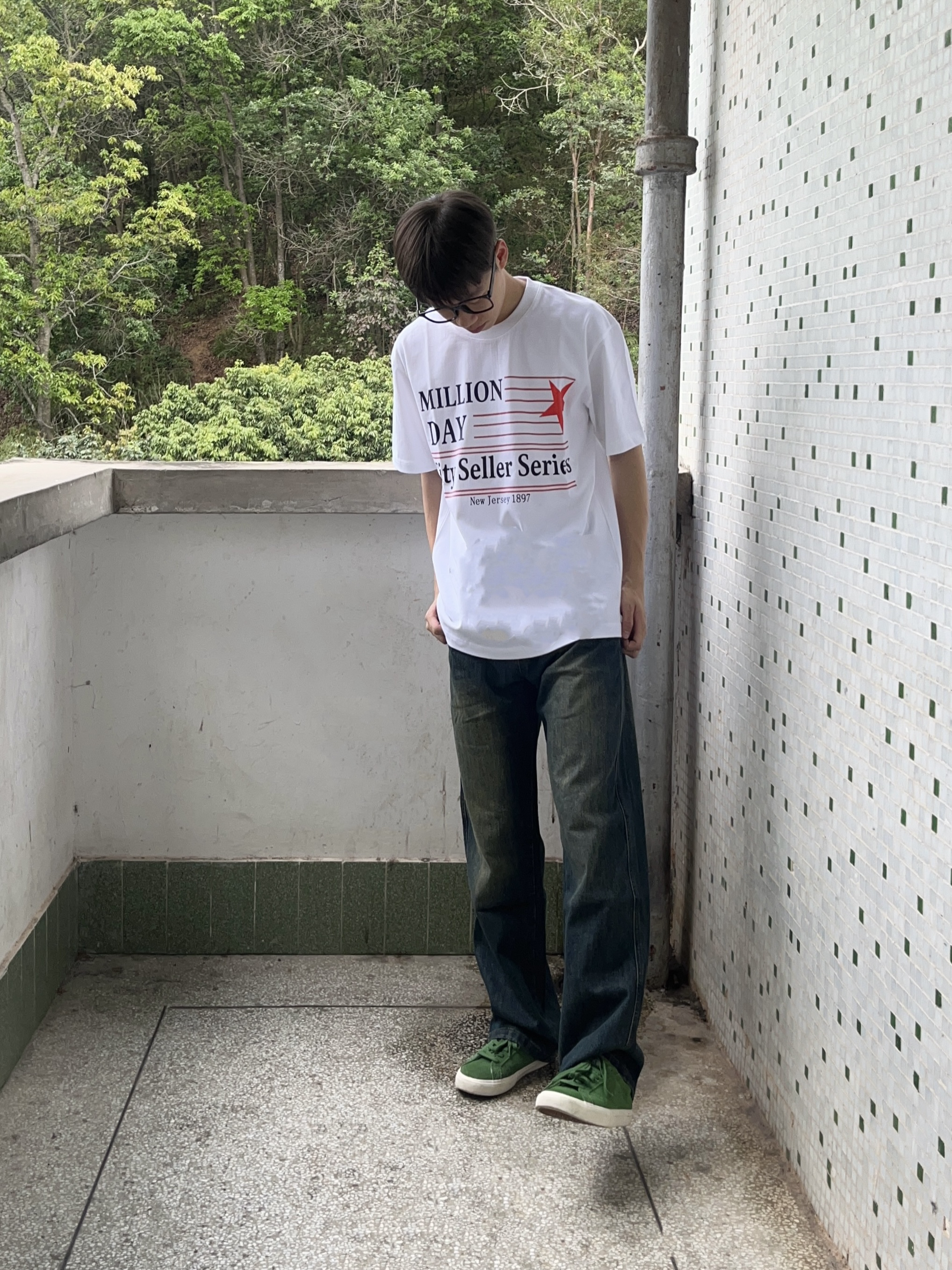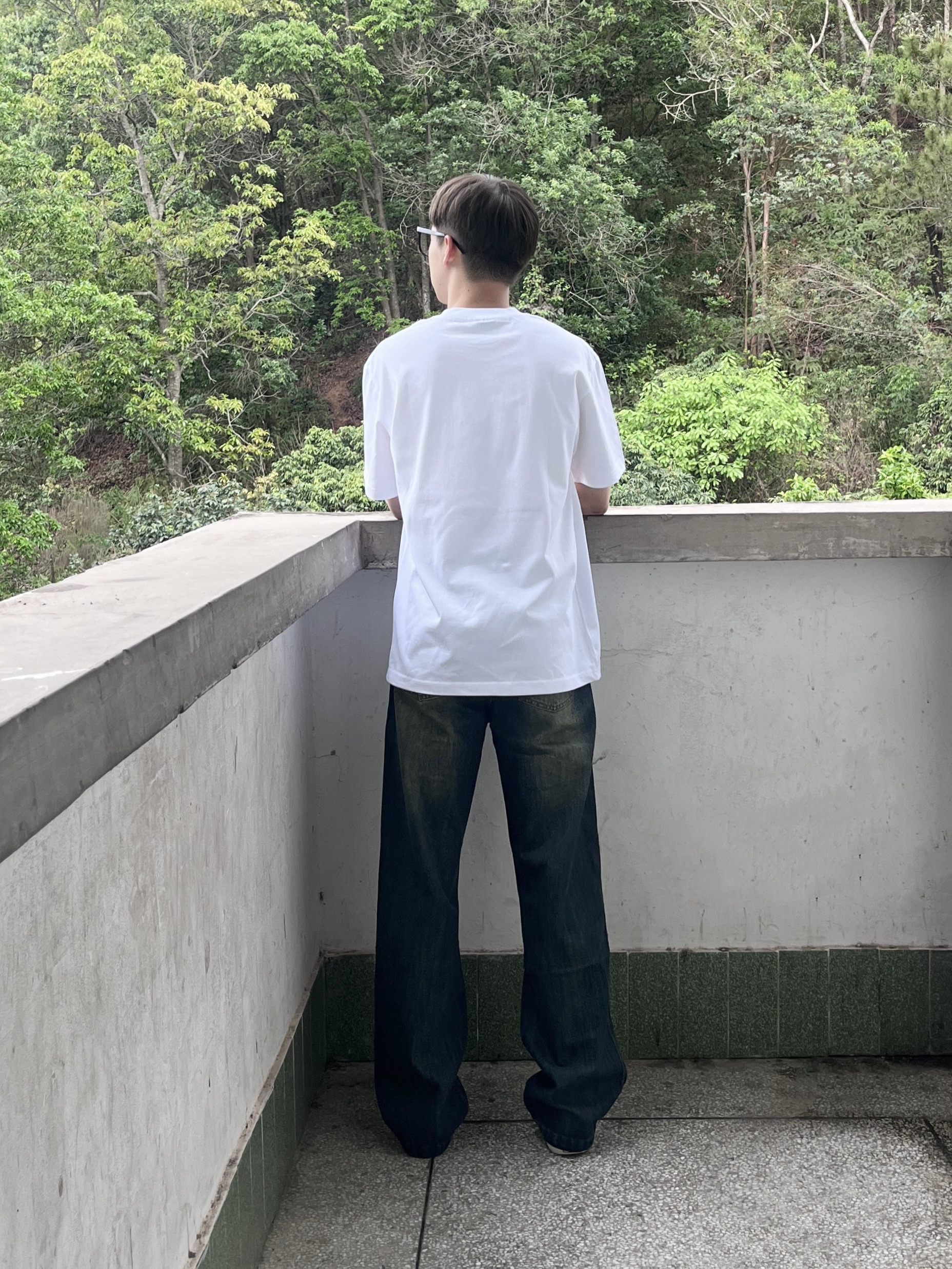 今日份穿搭分享look👀 衣服是白色简约字母印花短袖 涂鸦设计高街又复古 面料也很舒适 再搭配一条黑色直筒牛仔裤 版型宽松显瘦 最后休闲板鞋点缀 一套搭配下来 百搭又好看