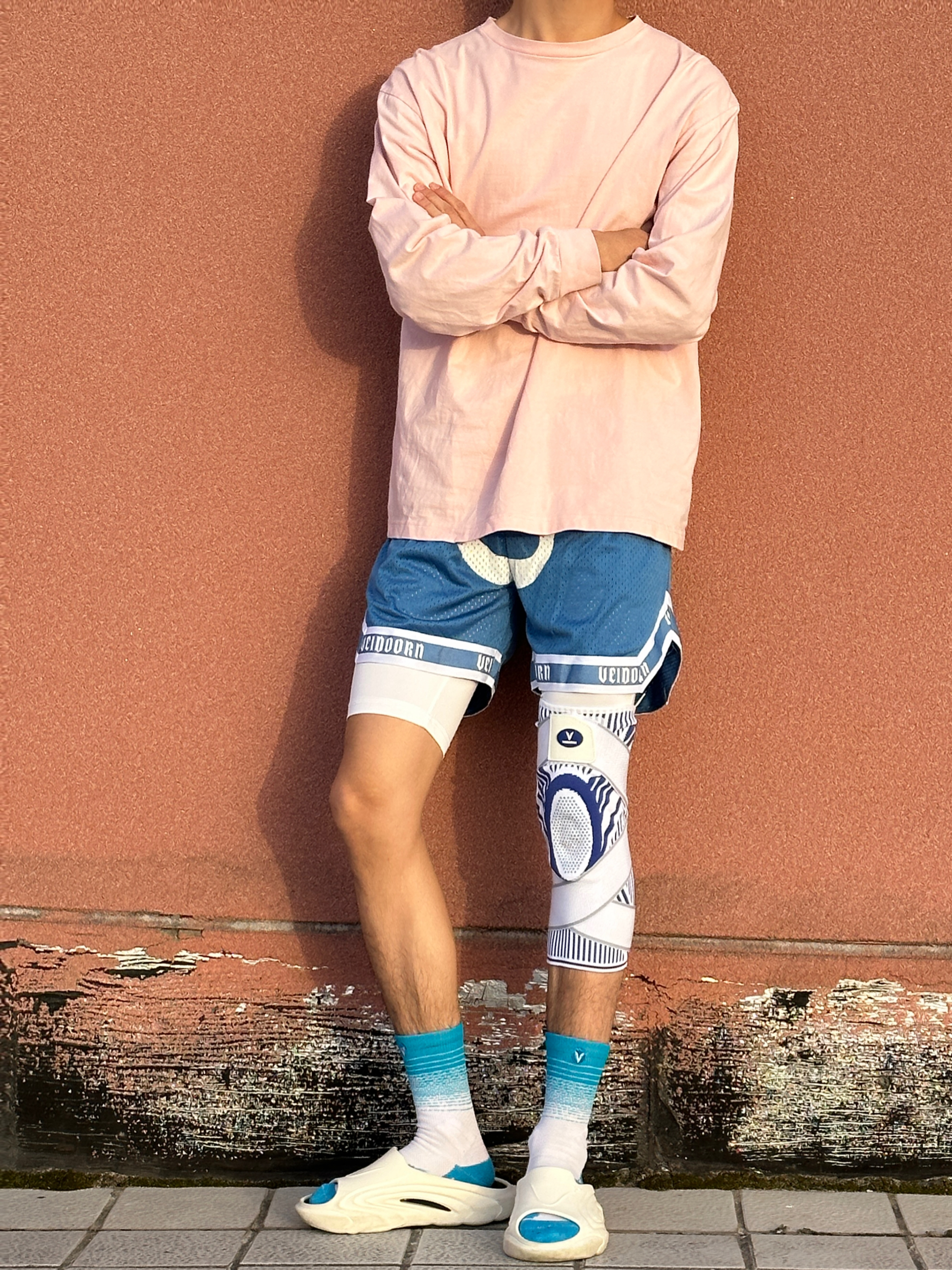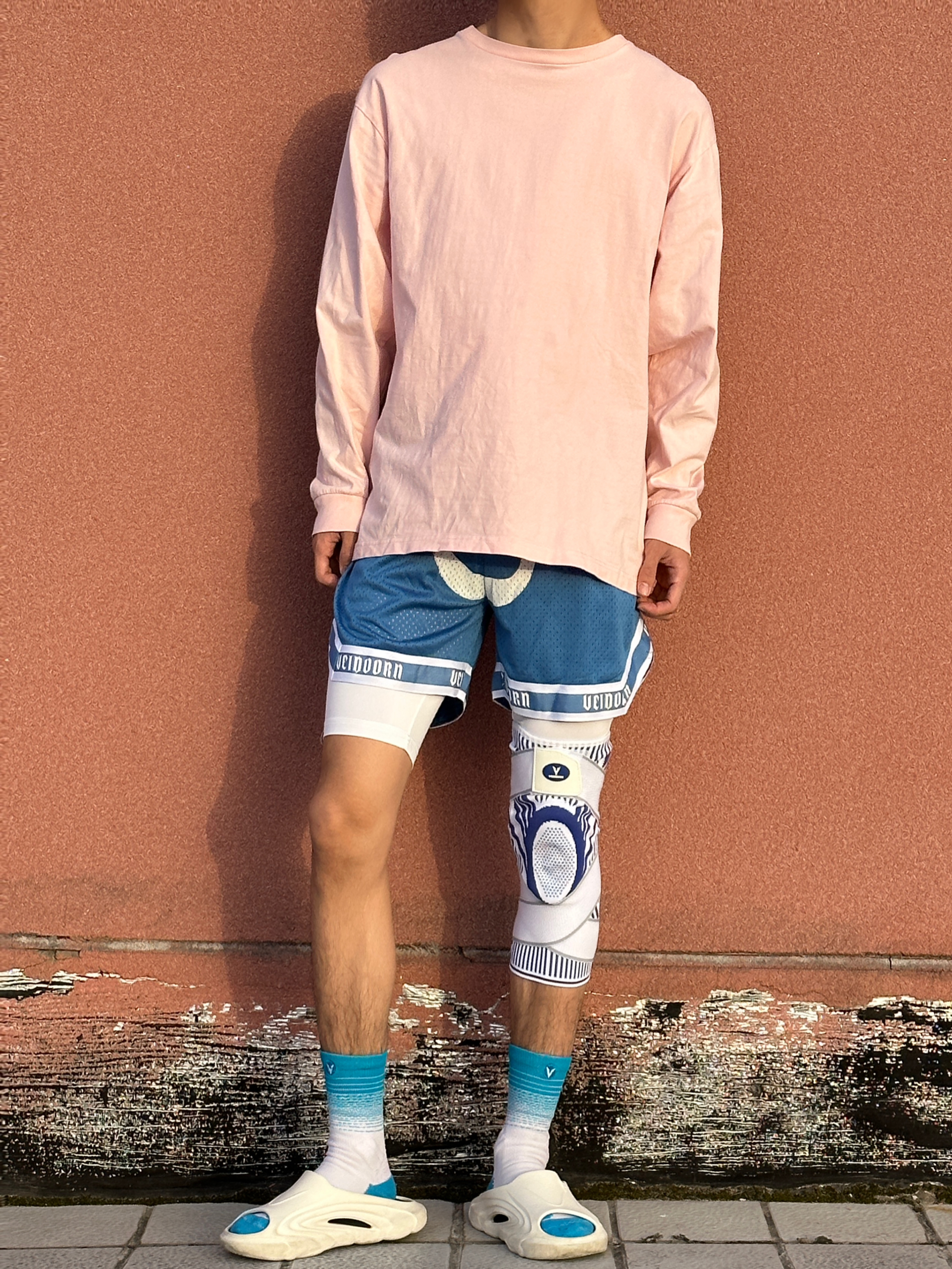 夏天就要穿搭短裤打篮球🏀 每天保持运动状态❕ 粉色T恤➕蓝色篮球短裤 今天去内场 穿上拖鞋就出发❗️ 今天约一场比赛🆚 穿上护膝 来打一打强度 维动这条护膝🌟 整体包裹性很不错 🤩 有效保护膝盖 打一打强度运动还是要带个护膝合适🥰 护膝:短裤:维动 VEIDOORN