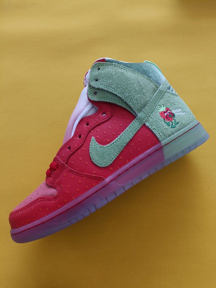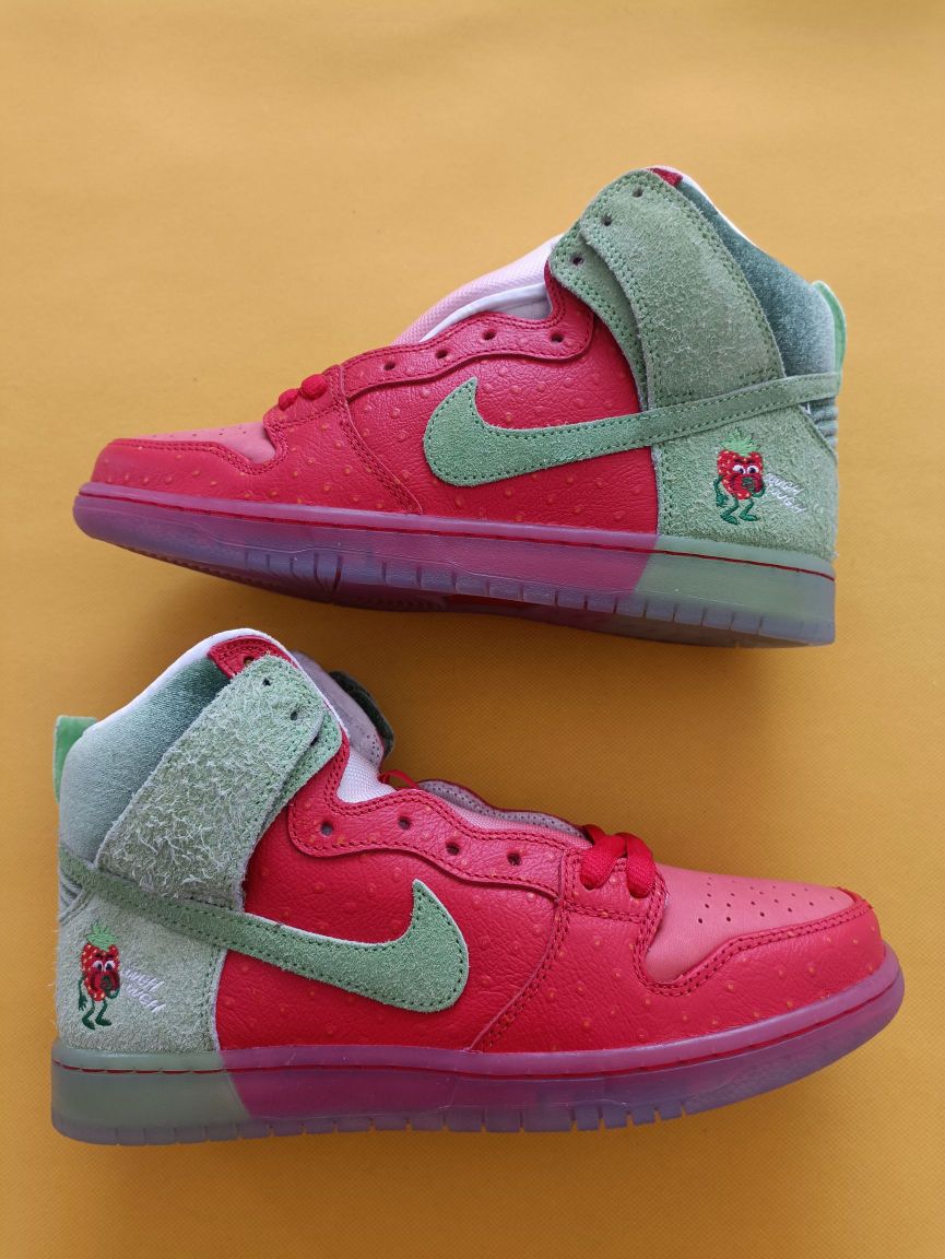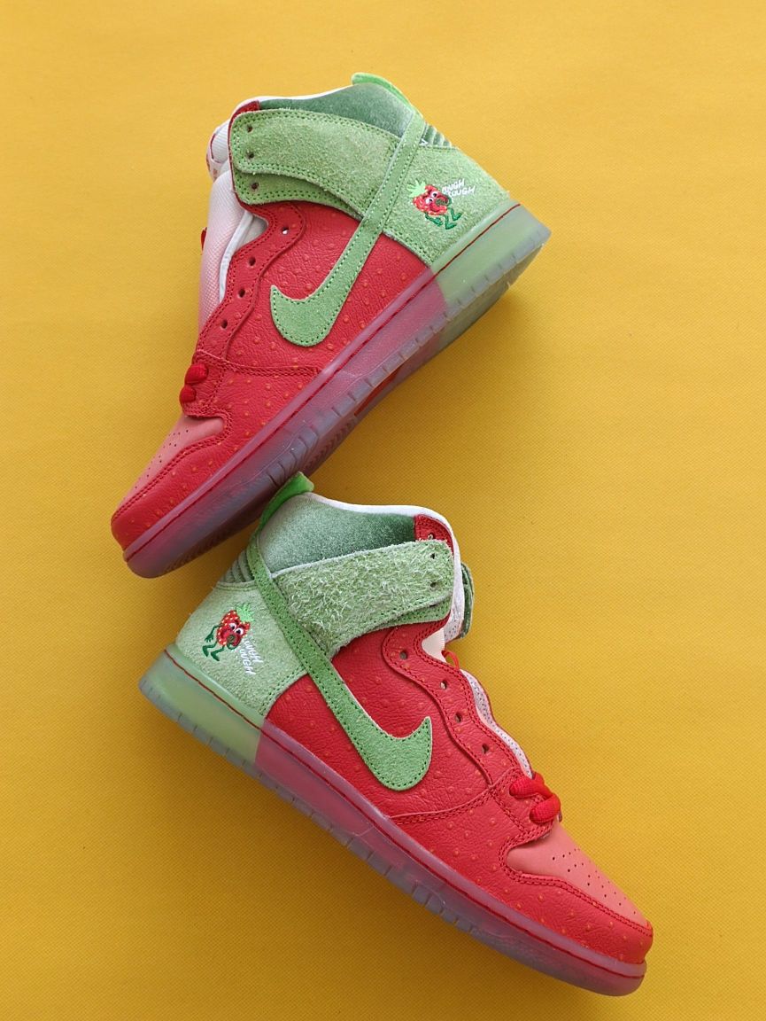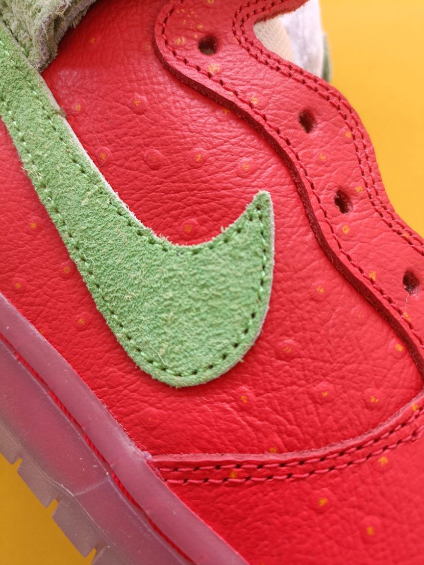 快来摘草莓🍓了^O^ 整双鞋子的设计采用了红色与绿色的设计,这双dunk打理起来真的要费点小脑筋了,但整双的设计蛮有特点挺合适收藏的了