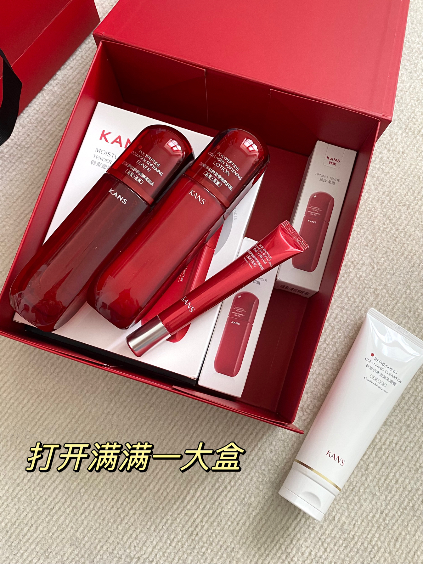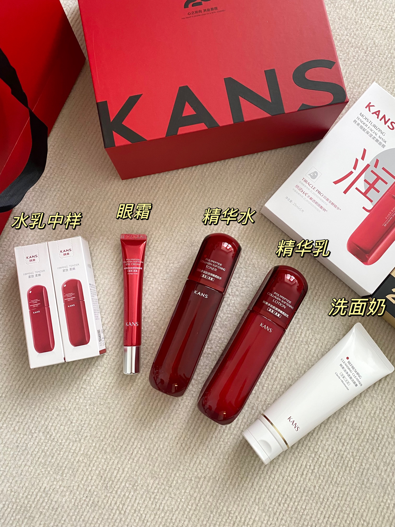 本篇笔记关联了Kans/韩束 红蛮腰多肽胶原弹嫩护肤套装【水+乳+面霜+精华+洁面】抗老抗氧糖焕亮肌肤紧致淡纹 水100ml+乳100ml+面霜50g+精华30ml+洁面100g等商品,为用户提供真实的使用体验和购买参考。