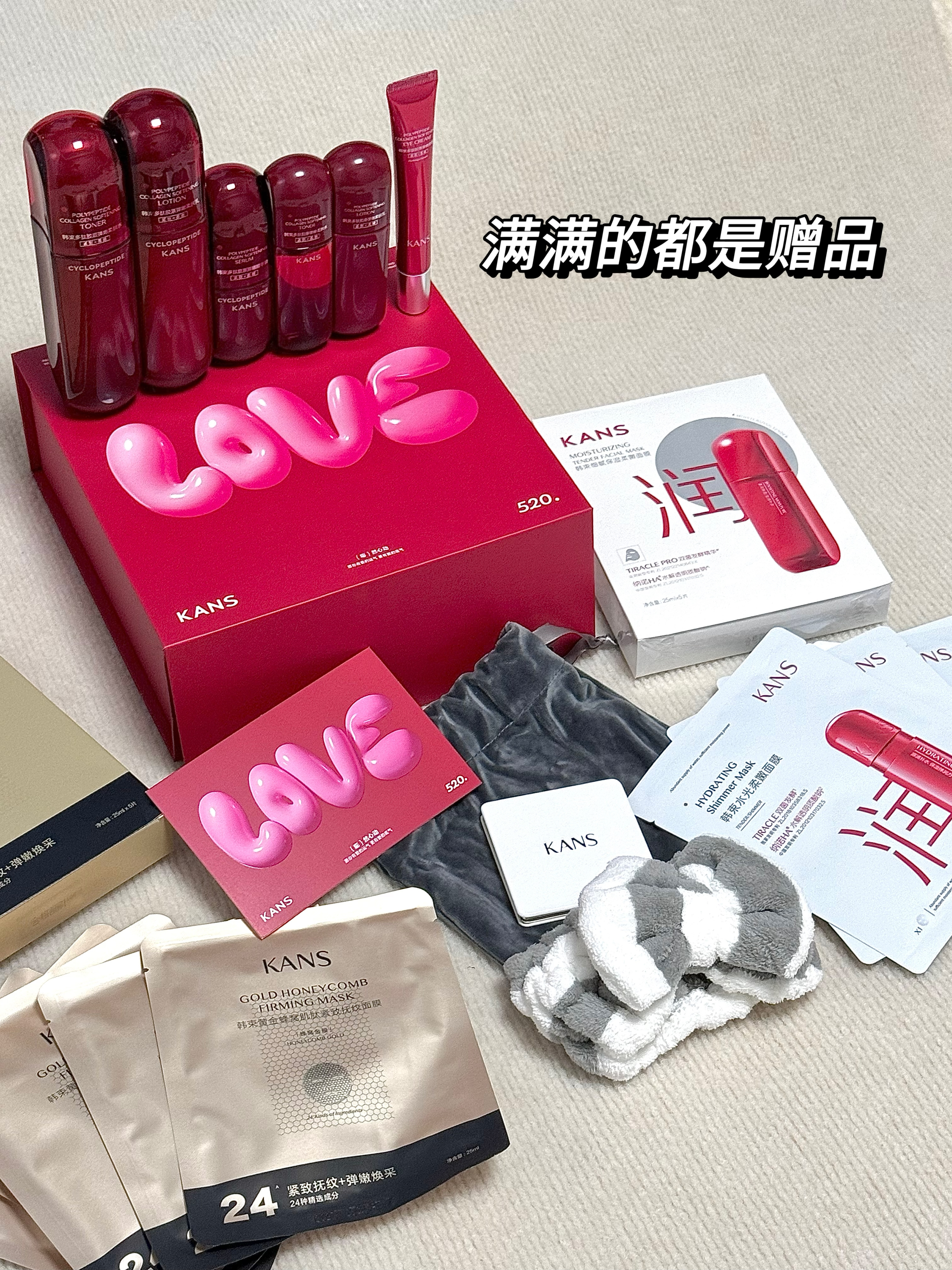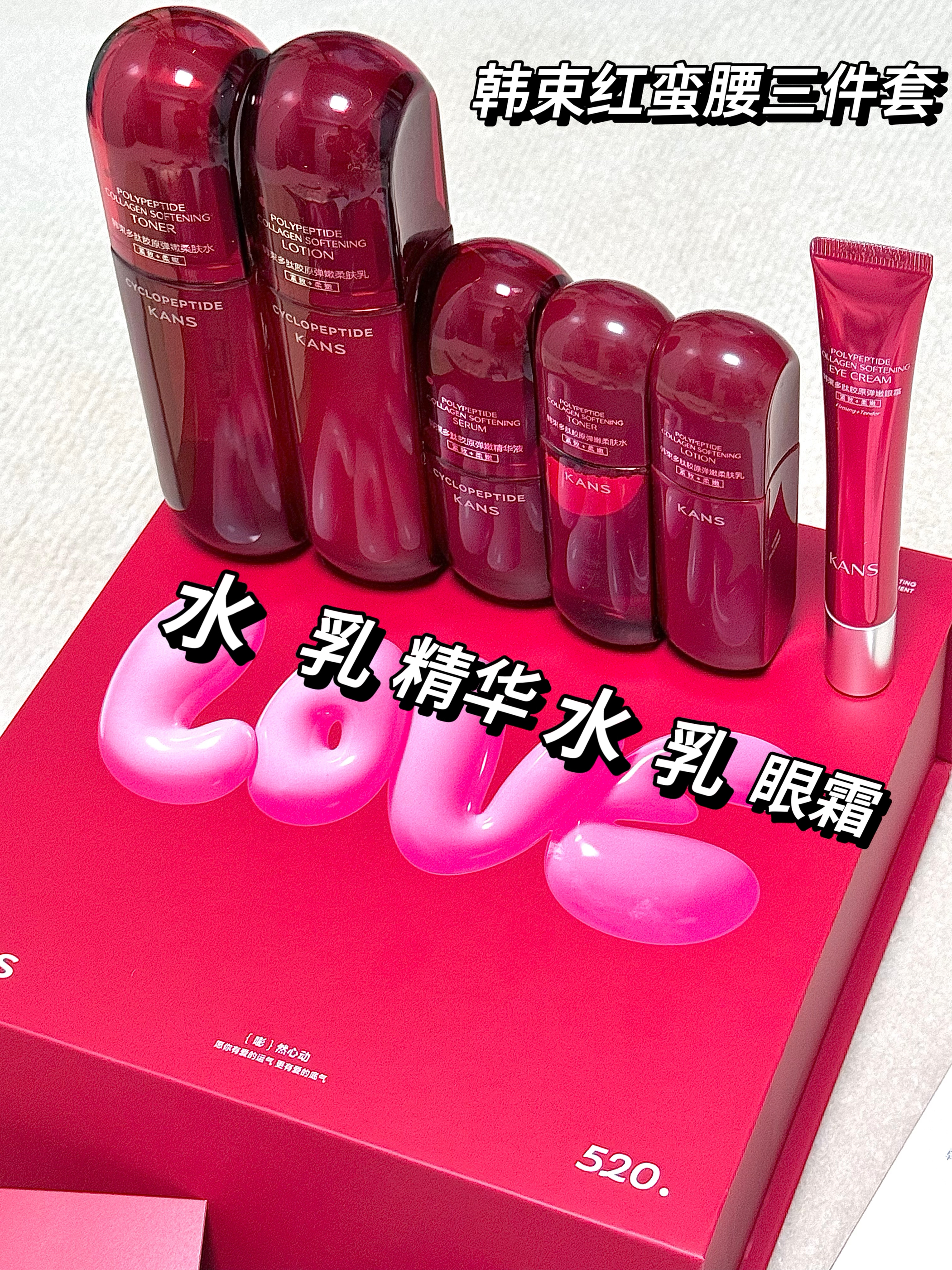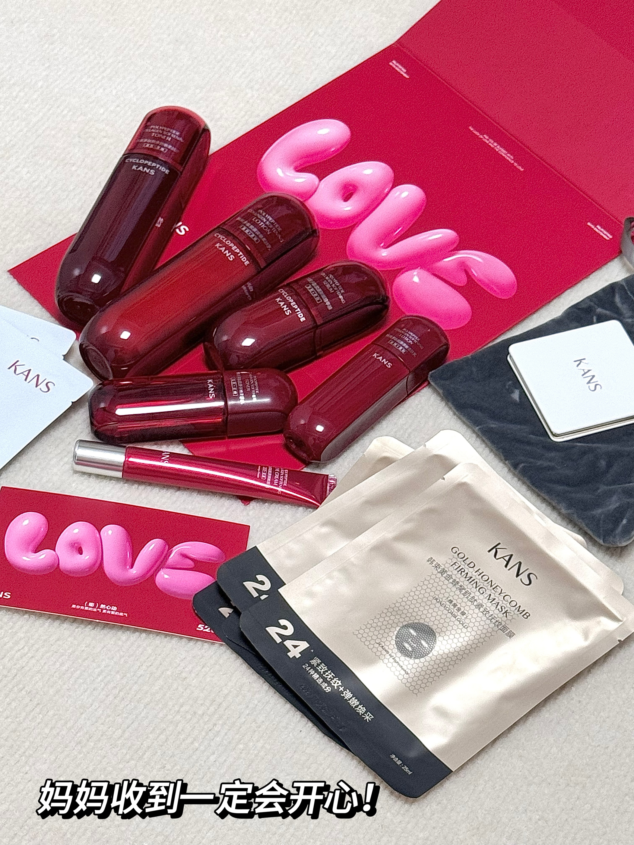 铛铛铛、就是这个韩束红蛮腰三件套! 我看妈妈放在购物车很久了一直舍不得买 掏出小金库果断送给妈妈 里面是水、乳、精华三件套、 还送了一大堆赠品 两盒面膜还有一套水乳眼霜的小样、小镜子、发圈、韩束你不赚钱了这么送! 水乳质地清爽 水是透明质地流动性很好 上脸很好吸收 乳液质地清爽 乳是淡黄色液体延展性不错 很好吸收 精华质地细腻 精华淡黄色质地推开就化水 脸特别好吸收 赶紧给妈妈安排一套吧!