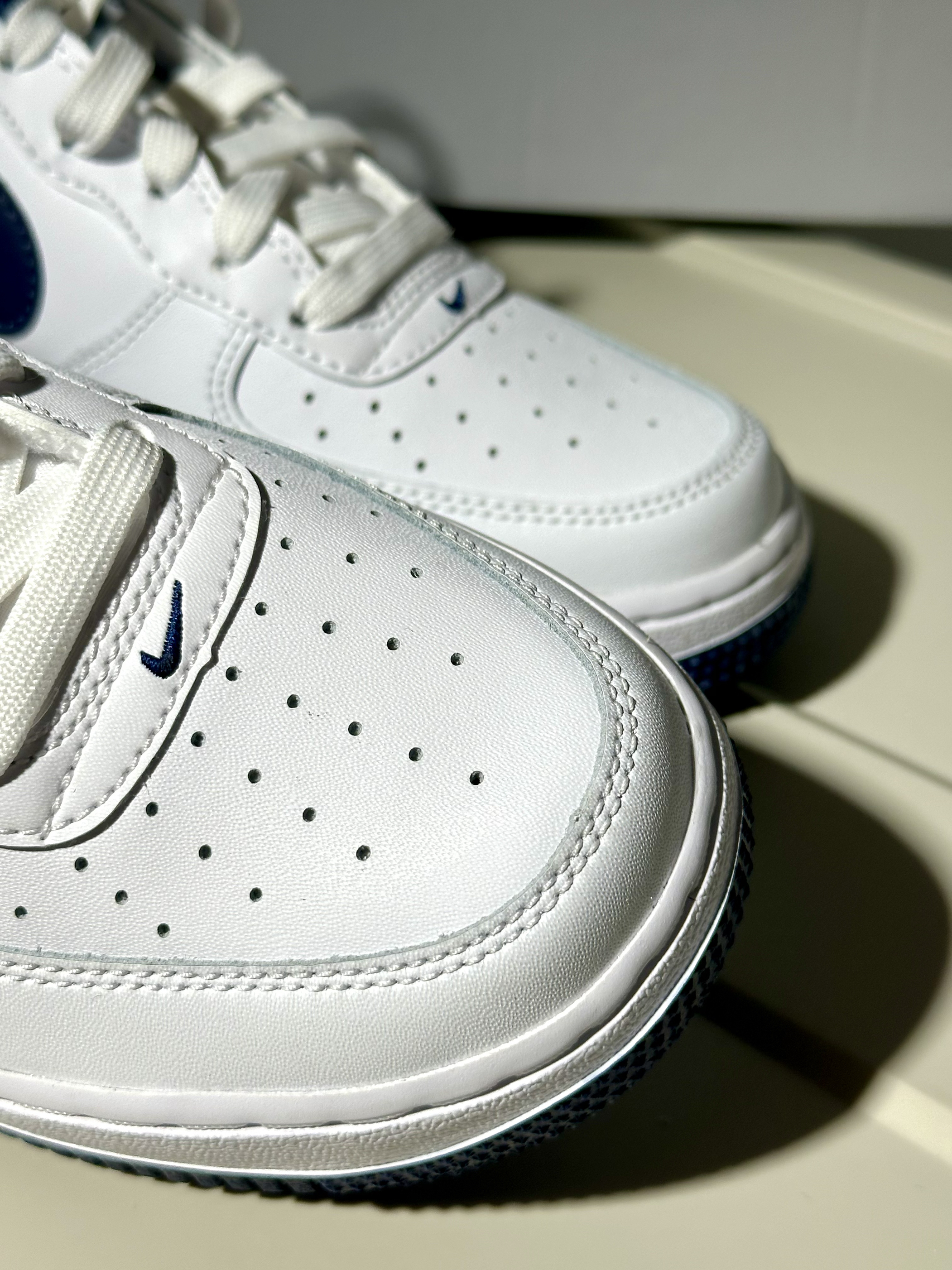 🌊最近很热门的白蓝配色af1,低调内敛沉稳,可以用很多形容词来描述它,但是最终还是会选择『清爽』,最直观的感受反而最接近本质♻️ 🌊鞋面用到合成革,你说材质吧的确普普通通,但是偏偏质感做的不错,光滑平整还好打理🧐 🌊脚感:确实一般了,有气垫也许穿久一点更舒服 🌊尺码选择?正码选择就行,不过最大只到40🪐