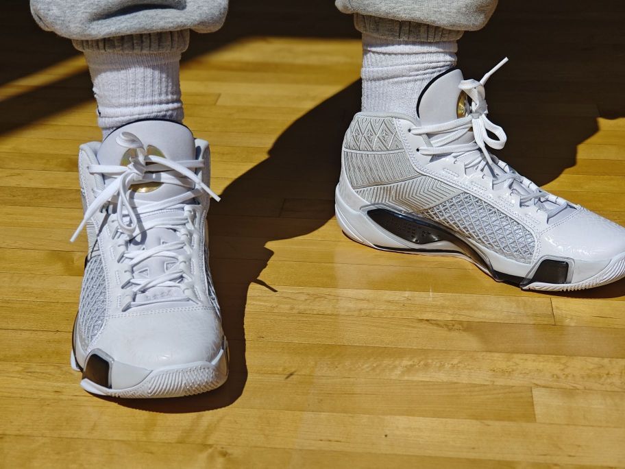 本篇笔记关联了Air Jordan 38 篮球鞋 缓震抗扭舒适防滑耐磨圆头实战zoom GS/白色/金属色等商品,为用户提供真实的使用体验和购买参考。