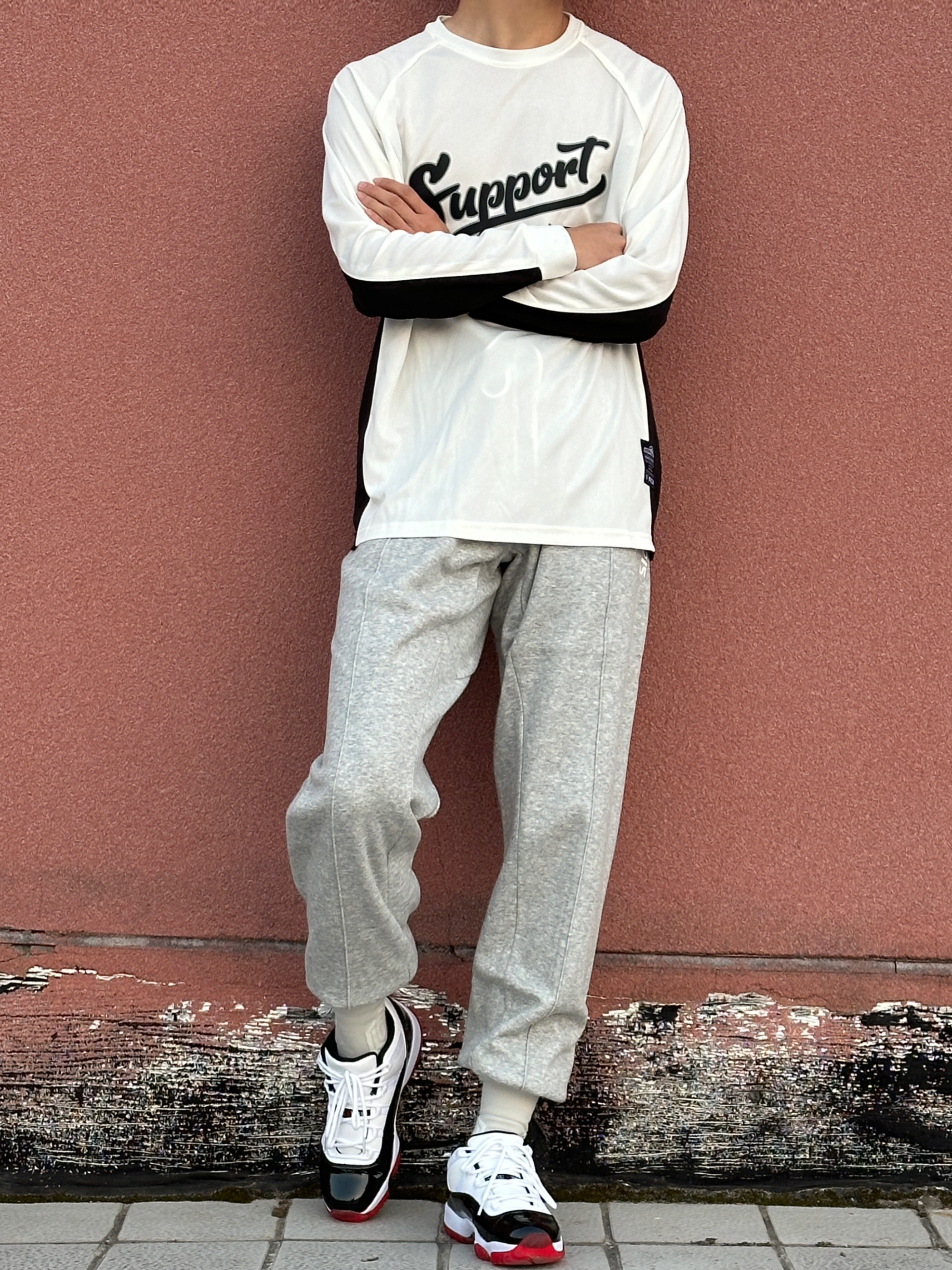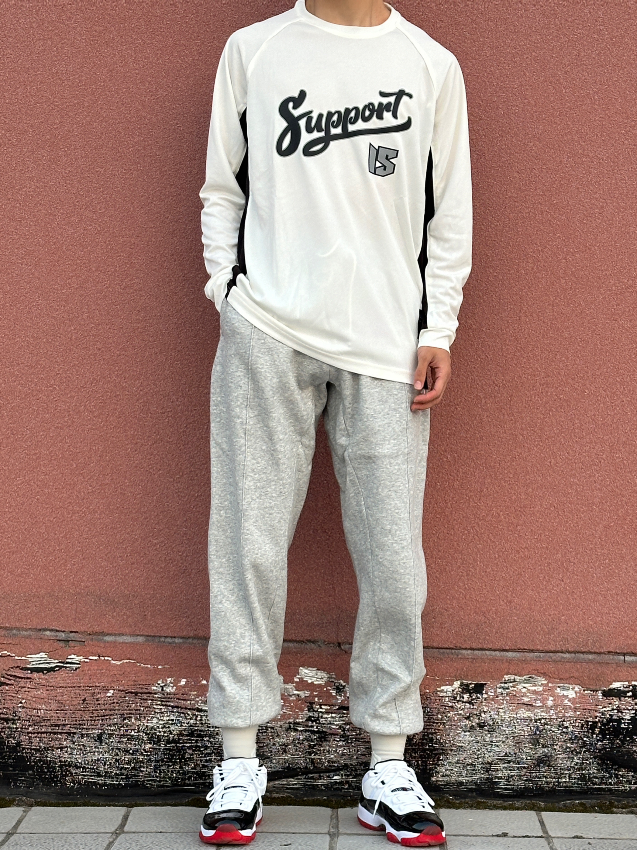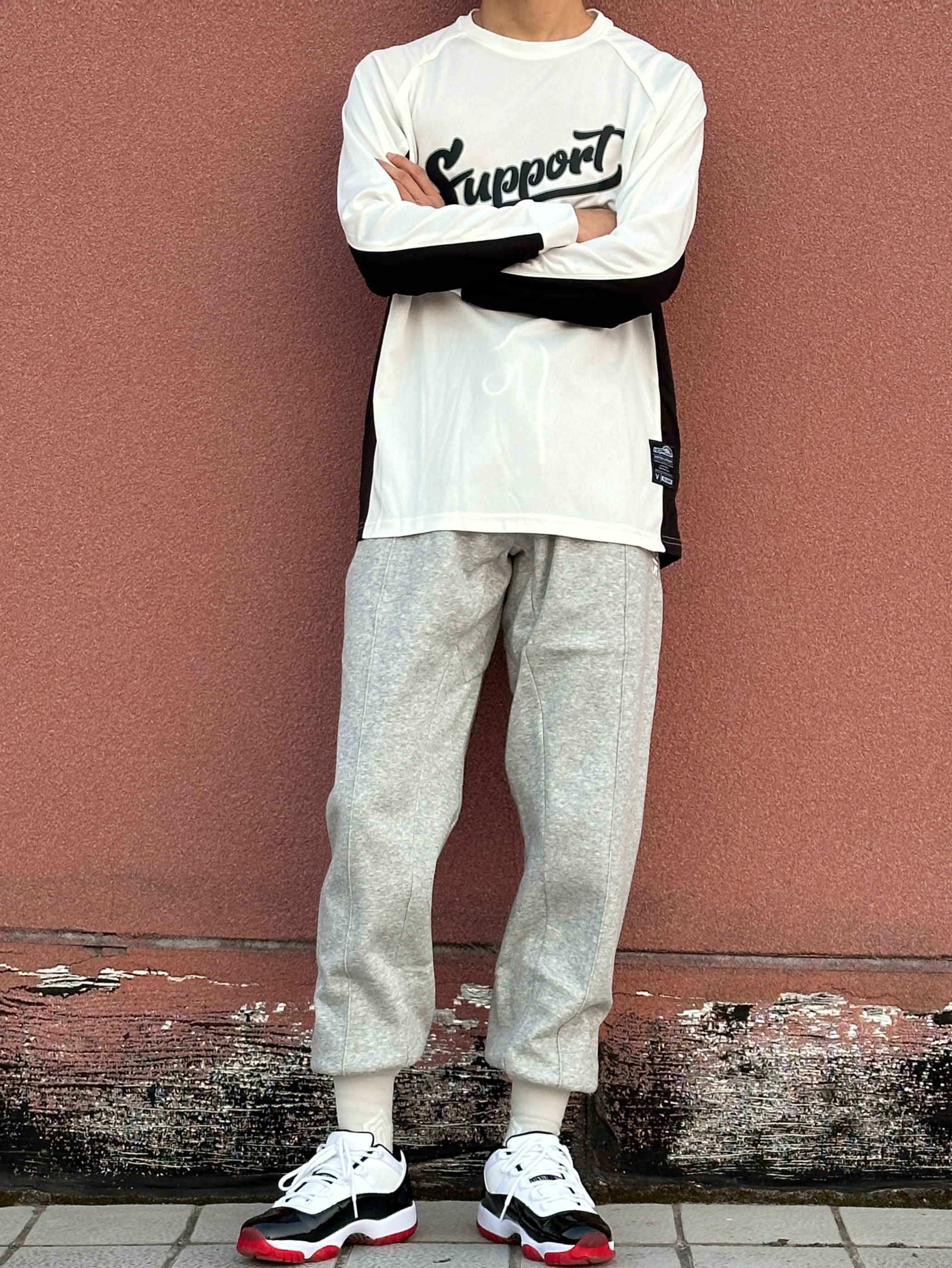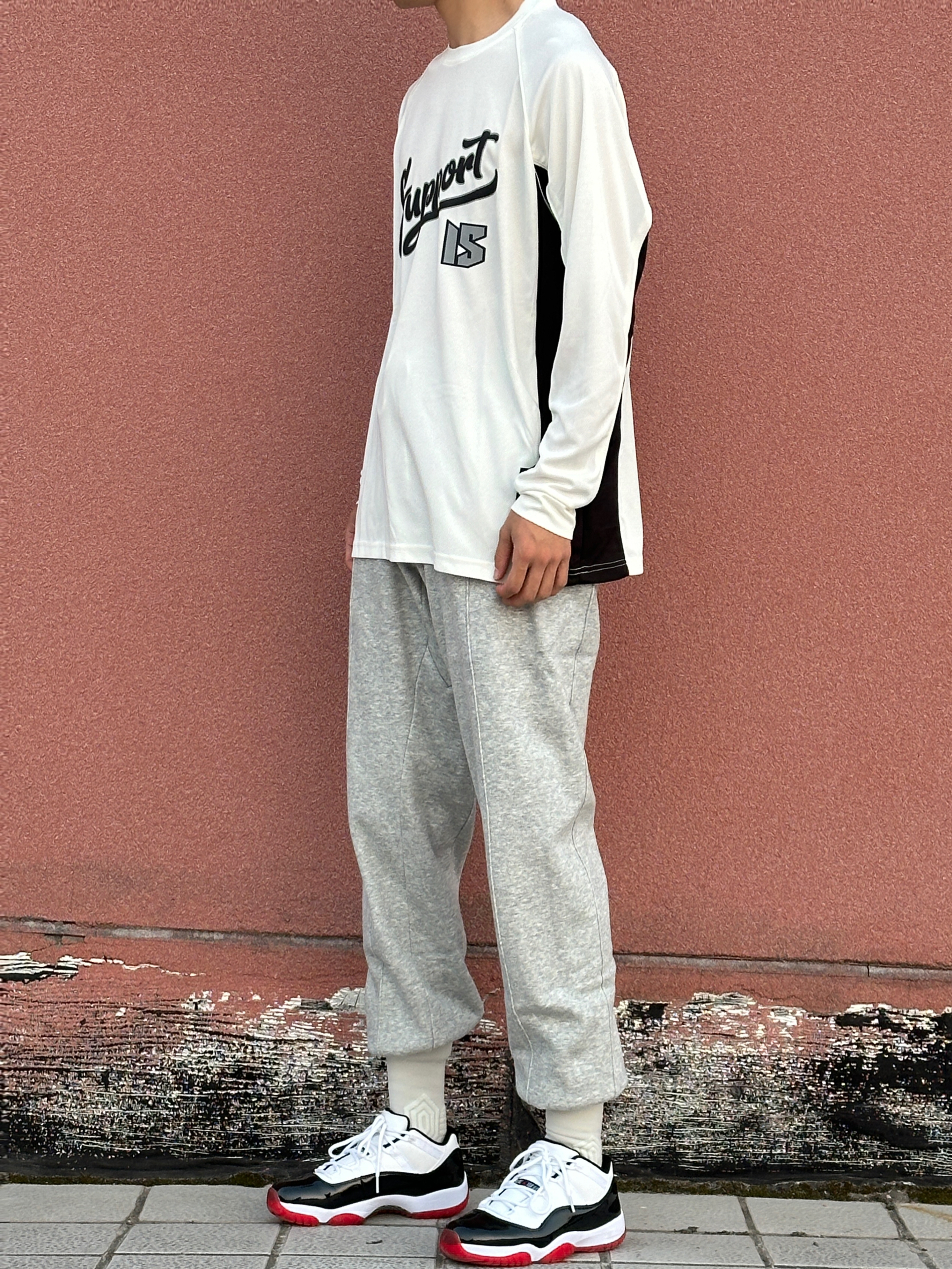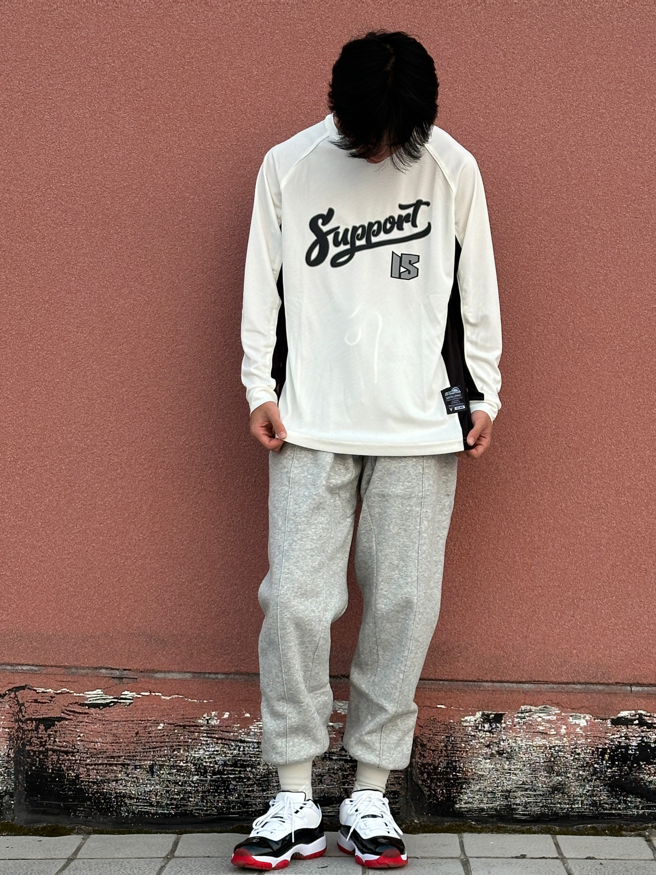 第4️⃣天球场穿搭分享 今天⚪️⚫️运动搭配 白色投篮训练服➕灰色篮球卫裤 再穿一双运动鞋 球场投篮服怎么能少❓ 维动的这件胜劵系列的投篮服🌟 白色颜色 上身显瘦 胸前英文印花 好看百搭 价格也不贵 超适合学生党🤩 👔: 维动 VEIDOORN