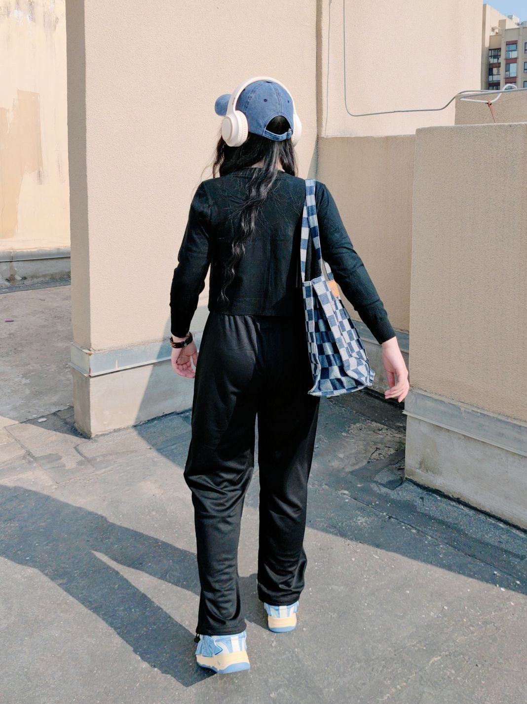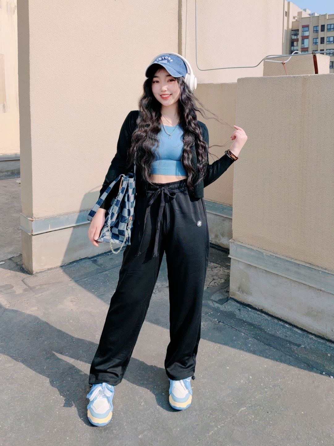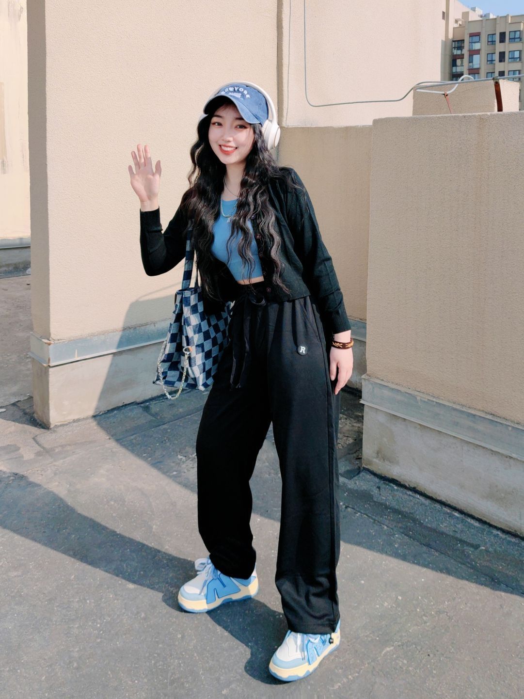 🌞160cm/48kg/M码 ↓ 哈喽,这里是小5的穿搭分享√ 今天带来显瘦又好看滴一套: 运动内衣+针织开衫+直筒裤+面包鞋 黑色蓝色搭配,清爽又不失帅气~ 裤子是很舒服的针织料子哈, 不会闷热而且垂感nice, 穿起来蛮宽松显瘦,对梨形身材友好! 搭配短款上衣比例嘎嘎好, 日常运动的话也可以像我这样搭运动内衣, 轻松get初夏松弛感~ ↓ 裤子:TORSO 板鞋:TALKING TOM 耳机:...