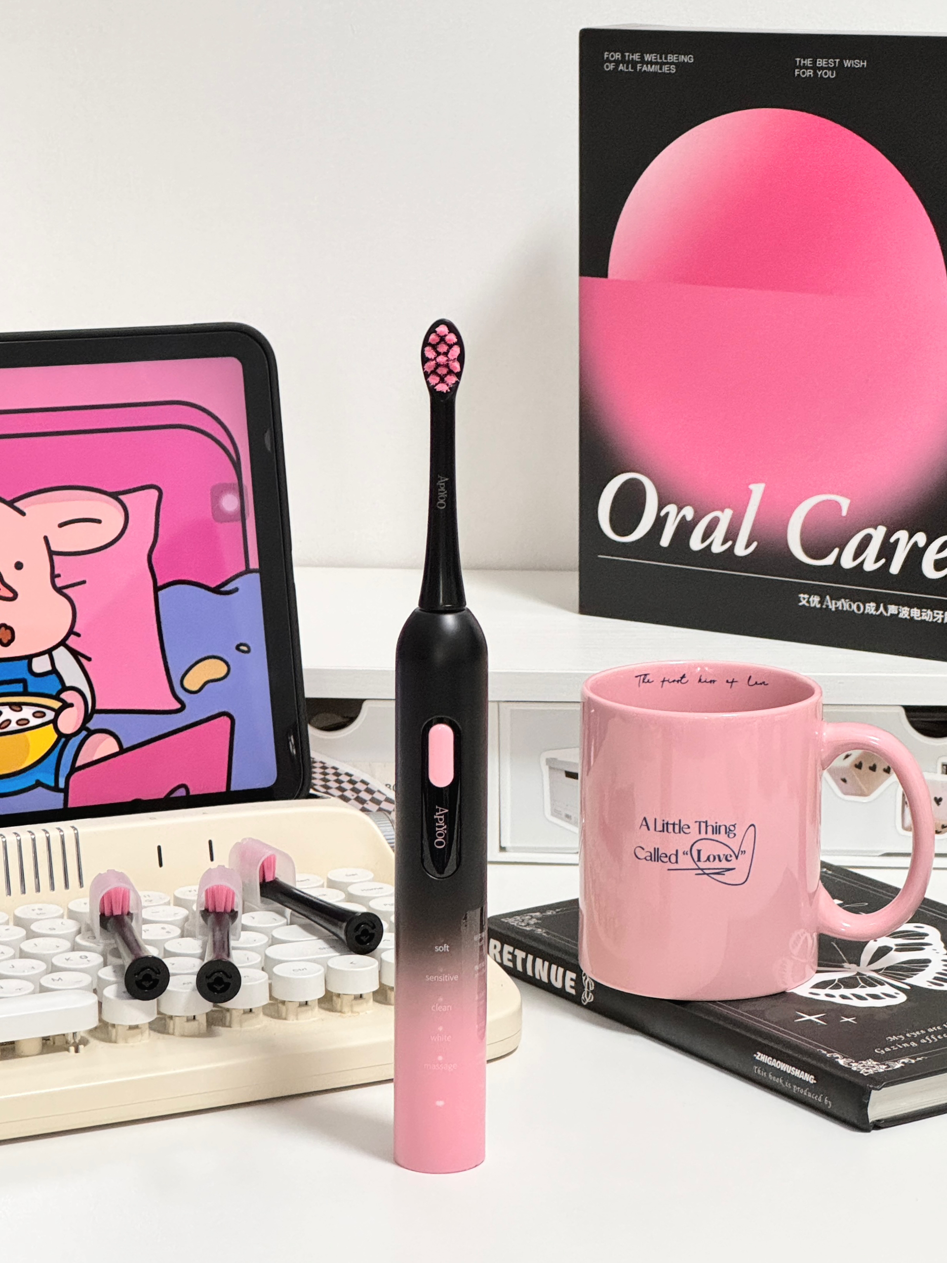 芜湖~隔着屏幕都会羡慕的礼物💝 艾优的倾心粉限定牙刷好高级 渐变黑粉设计感满满🎀太美丽了 五种档位清洁模式+杜邦Soft刷毛 4个刷头可以用很久🌟柔软不伤牙 愿称之为我的人生电动牙刷!🪥 礼盒包装又A又甜,送对象绝了👩🏻❤️👨🏻