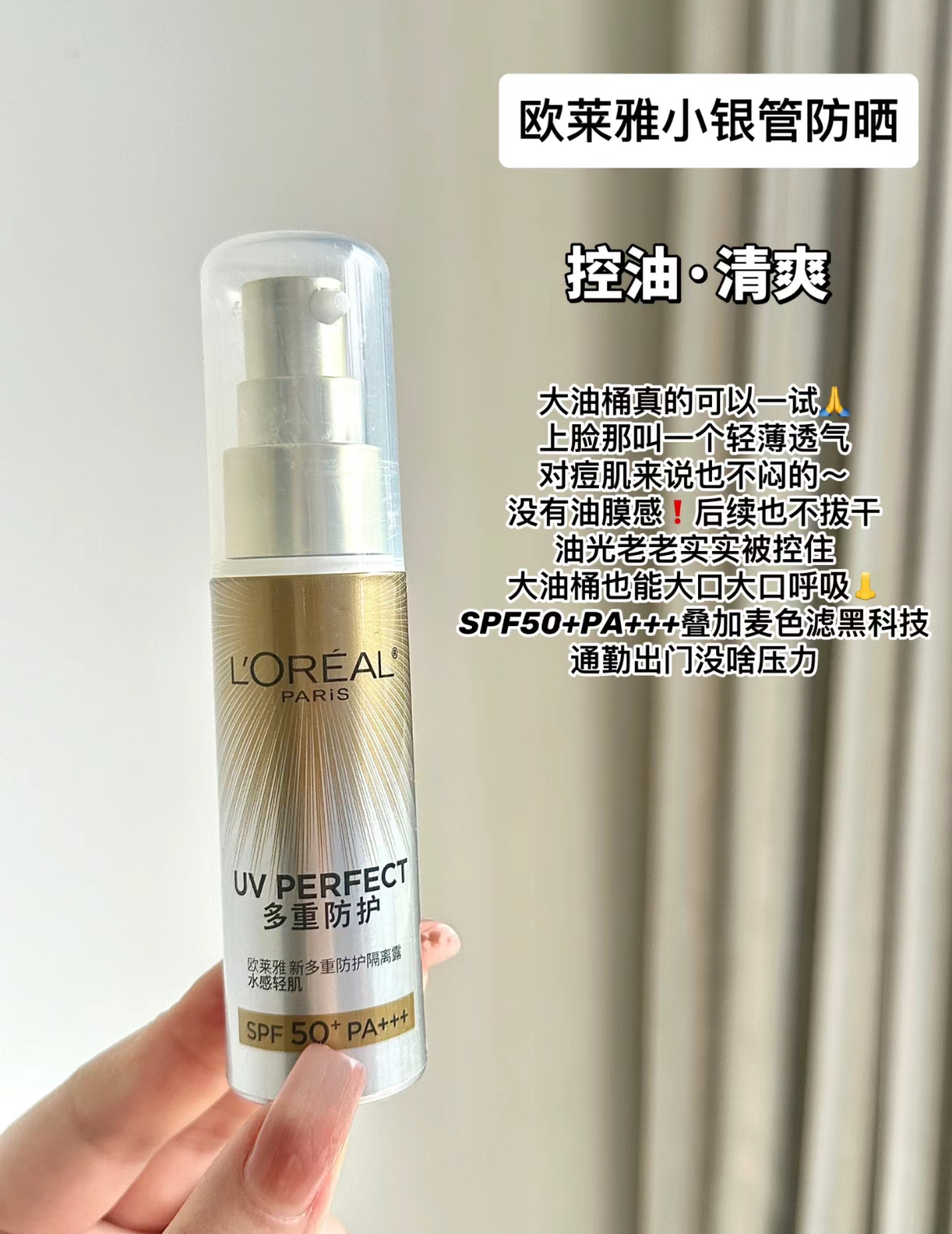 本篇笔记关联了L'OREAL/欧莱雅 小金管防晒露 多重防护高倍清爽 经典版 SPF50+/PA++++、laroche posay/理肤泉 大哥大防晒霜 抗光老隔离轻盈 有香型50ml SPF50+/PA++++、【小样】PROYA/珀莱雅 轻享阳光超膜盾护防晒液 轻薄修护 温和防晒 SPF50+/PA++++等商品,为用户提供真实的使用体验和购买参考。