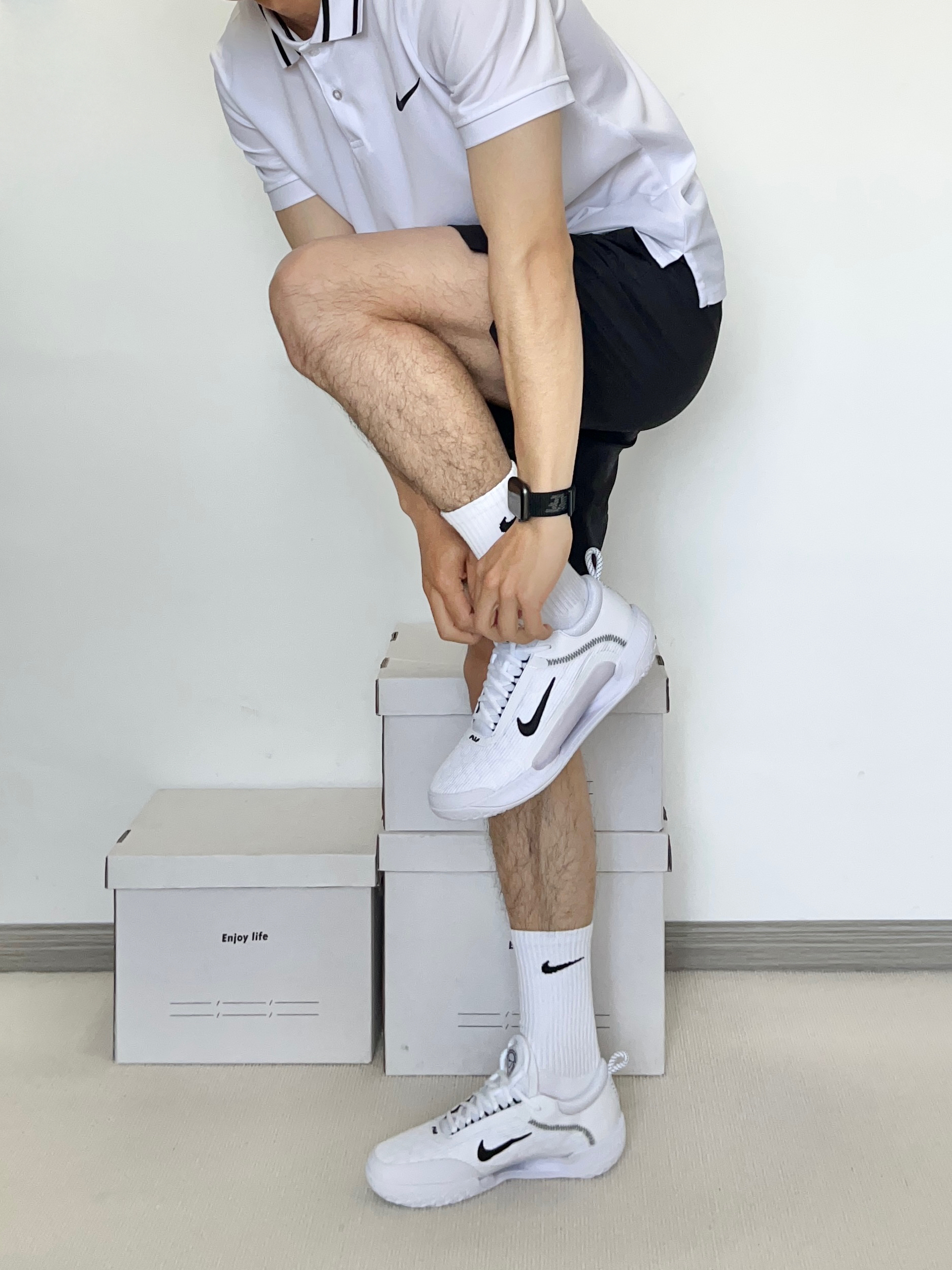 网球的衣服真的太好看了 速干透气的面料版型合身可买大稍宽松一点为好 耐脏选了黑色的短裤 非常轻薄尺码偏大 网球鞋首选全白色的 白色才是yyds 尺码正 不需要买大 👕polo衫XL码 🩳短裤S码 👟网球鞋42.5码