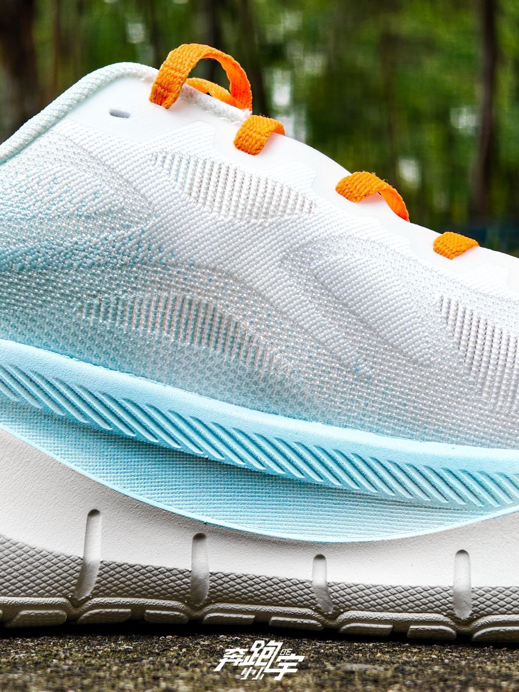 鞋面:一片式无缝梭织贾卡 中底:EVA +PEBA 大底:叶片式颗粒橡胶 定位:缓震慢跑 坡差:5mm(30/35) 侧墙:前掌39mm,后掌68mm 大底厚度:2mm 重量:41码,265g