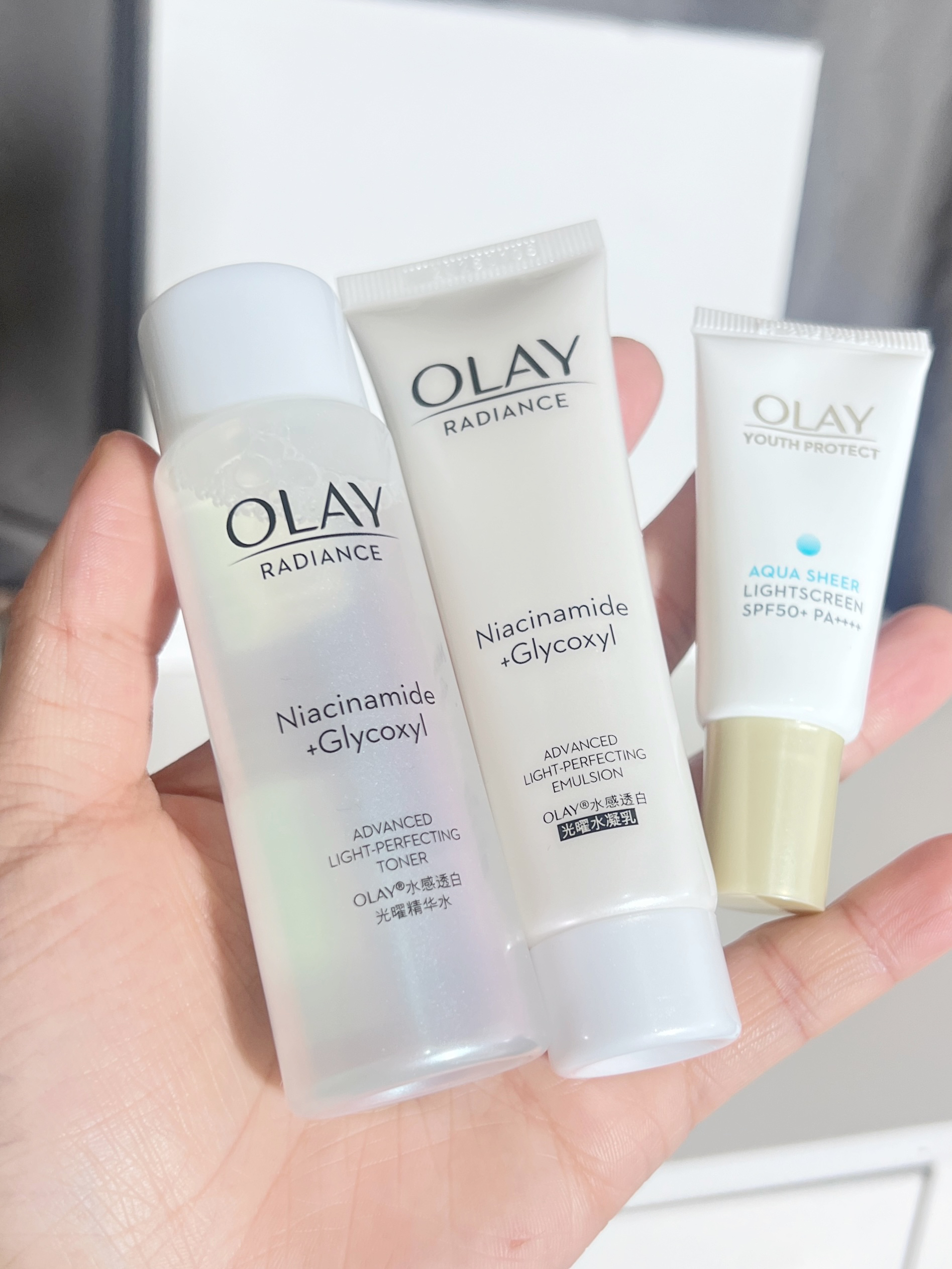 本篇笔记关联了【小样】Olay/玉兰油 防晒霜 SPF50+/PA++++ 清透 10ml、Olay/玉兰油 白光曜护肤套装【水+乳】 祛斑减黄 美白水150ml+乳液100ml+30氨基酸洁面125ml等商品,为用户提供真实的使用体验和购买参考。