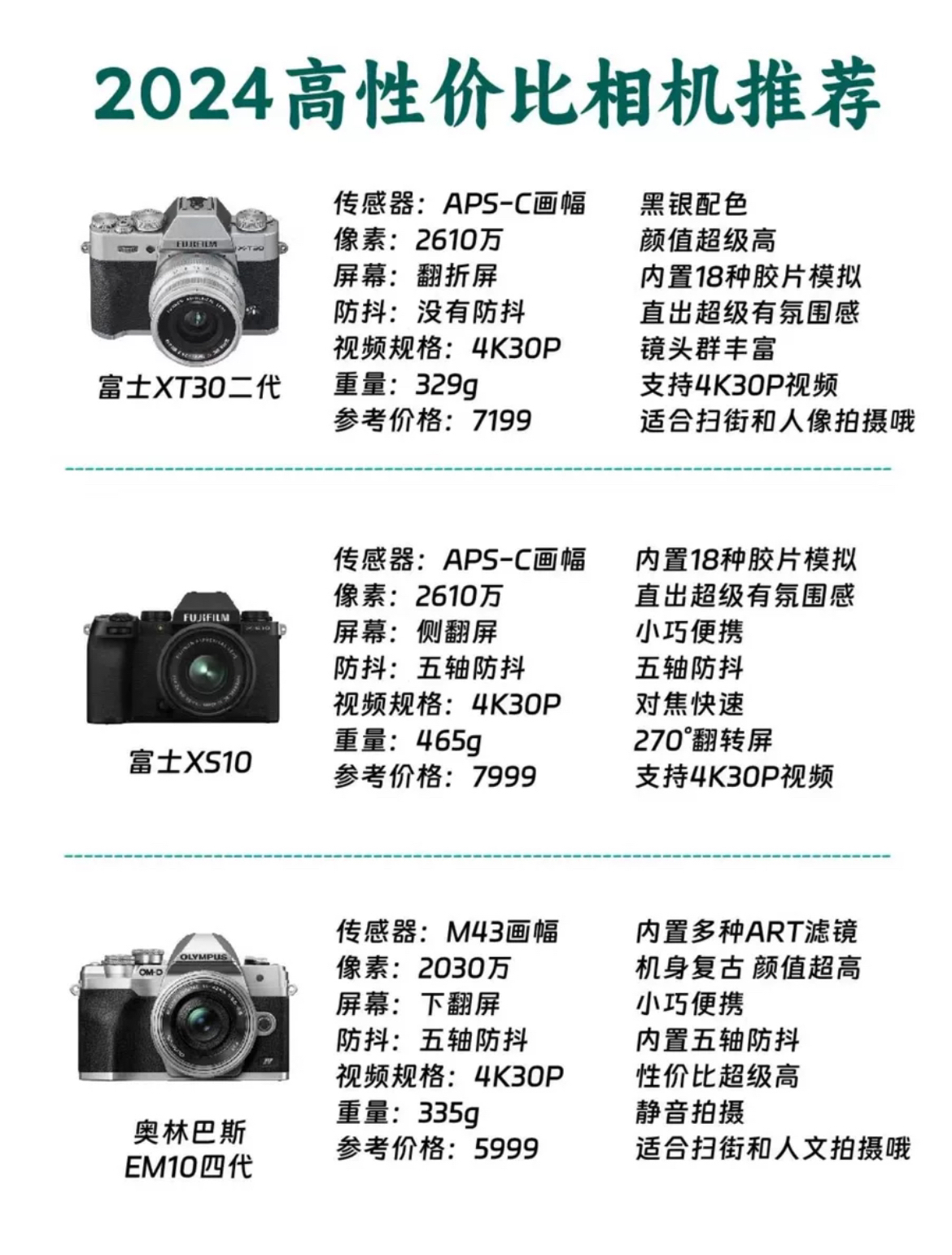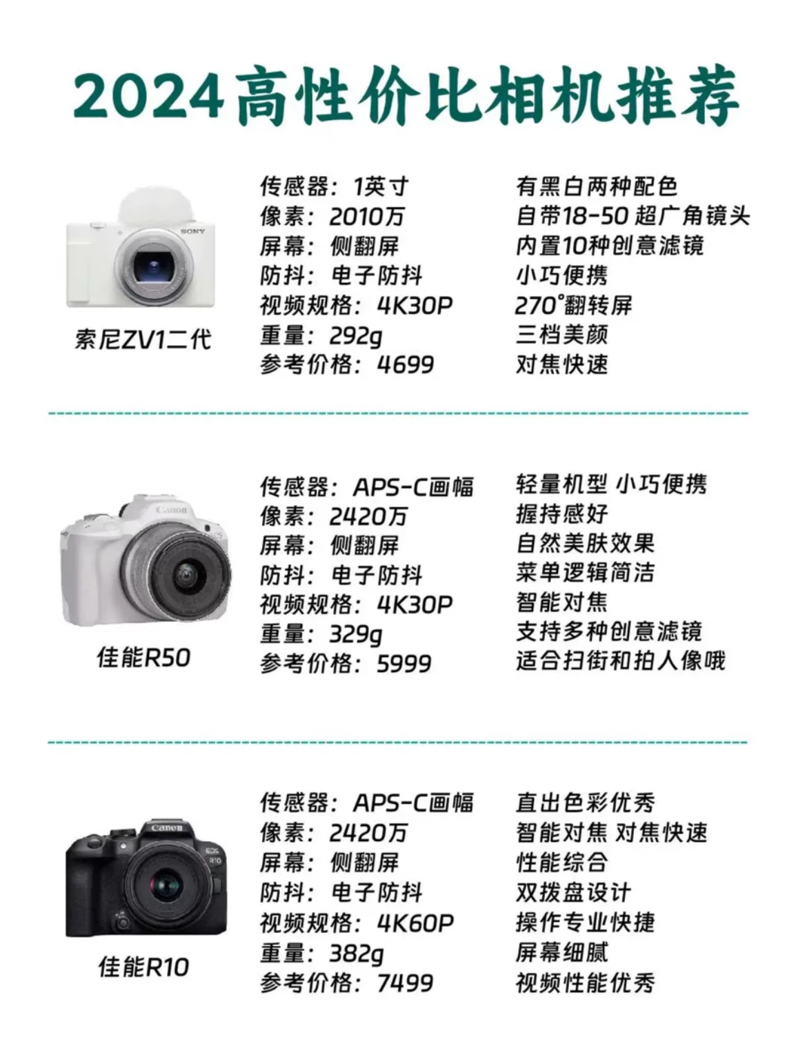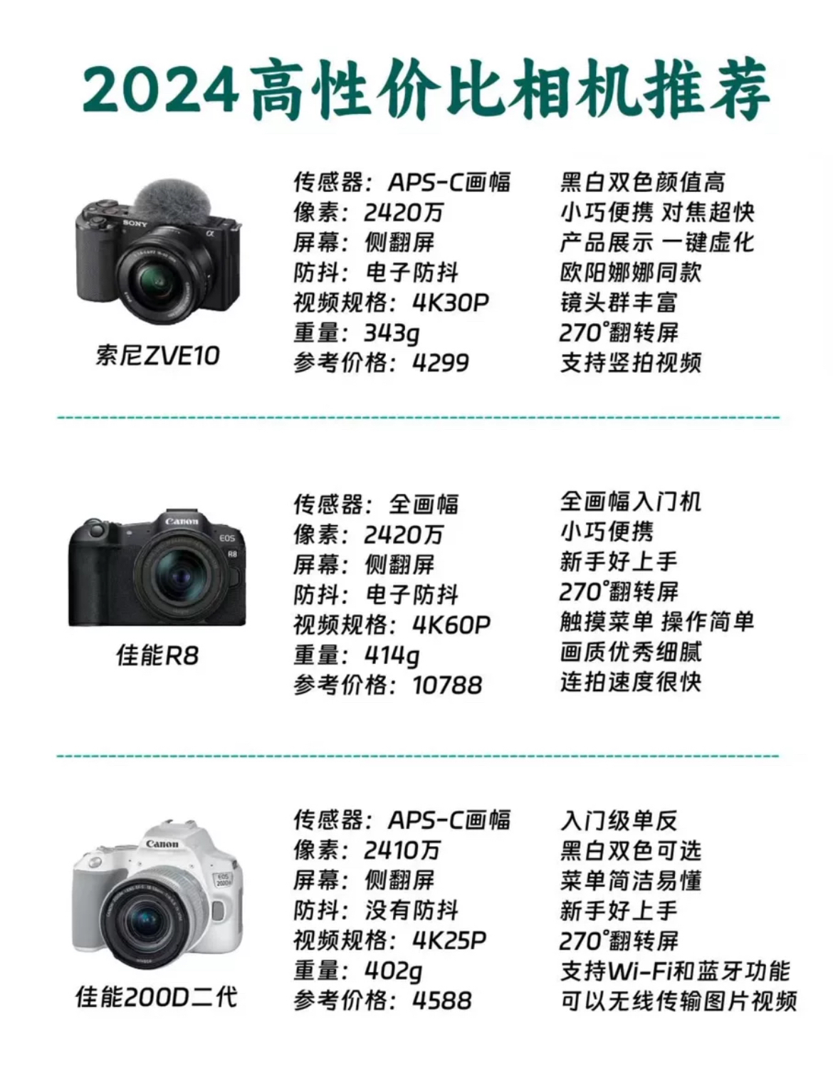 2024年想入相机的可以看看 SONY、佳能、尼康、富士四大家的几款相机分享给大家,并且也推荐了几款性价比非常高的入门产品。不一定准确、全面,但可以参考一下,一起讨论!