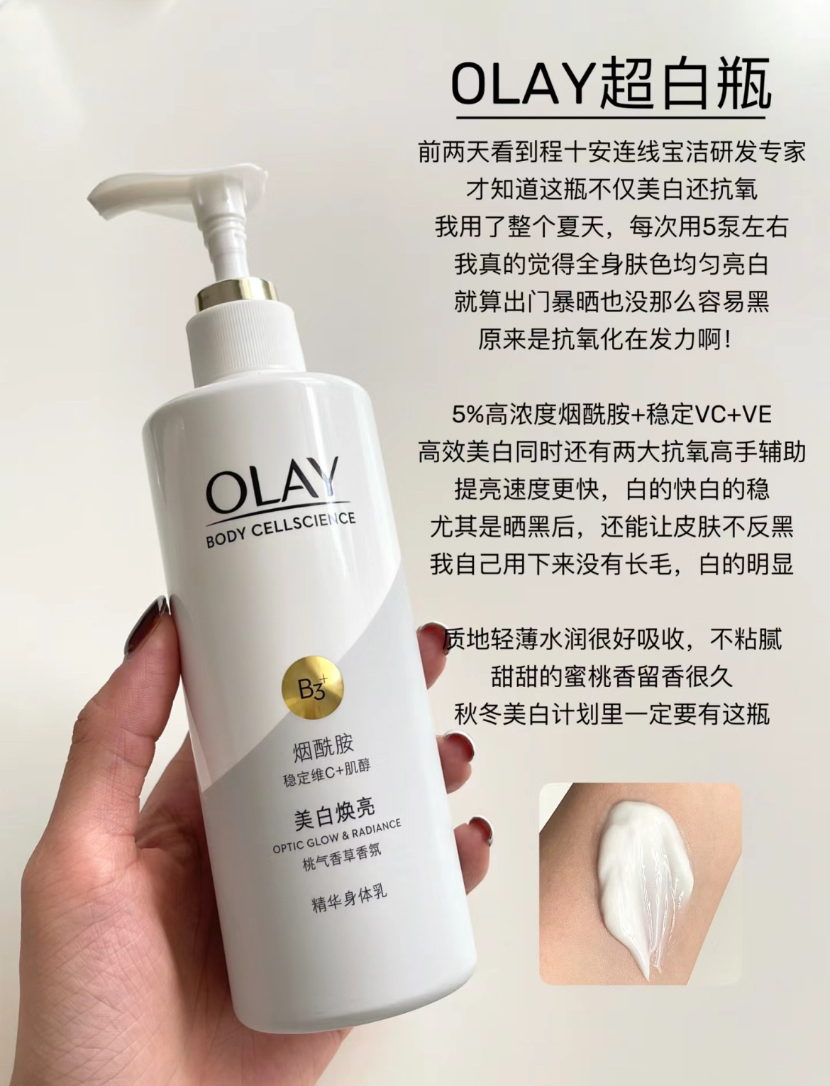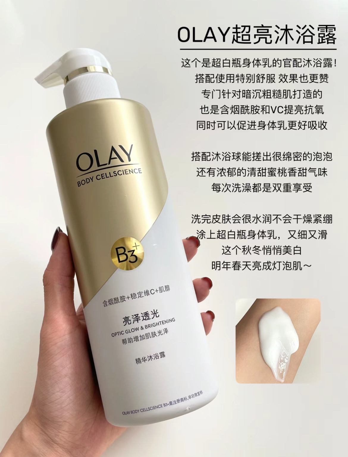 本篇笔记关联了Olay/玉兰油 去角质磨砂养肤超亮身体钻光磨砂膏 焕亮肌肤 温和 莹亮二合一 乌木玫瑰香 莹亮臻护、Olay/玉兰油 烟酰胺白茶香身体素颜霜 秋冬提亮焕白滋润 珠光版、Olay/玉兰油 沐浴露身体乳组合装 超亮沐浴露500g+净澈柔滑沐浴露500g等商品,为用户提供真实的使用体验和购买参考。