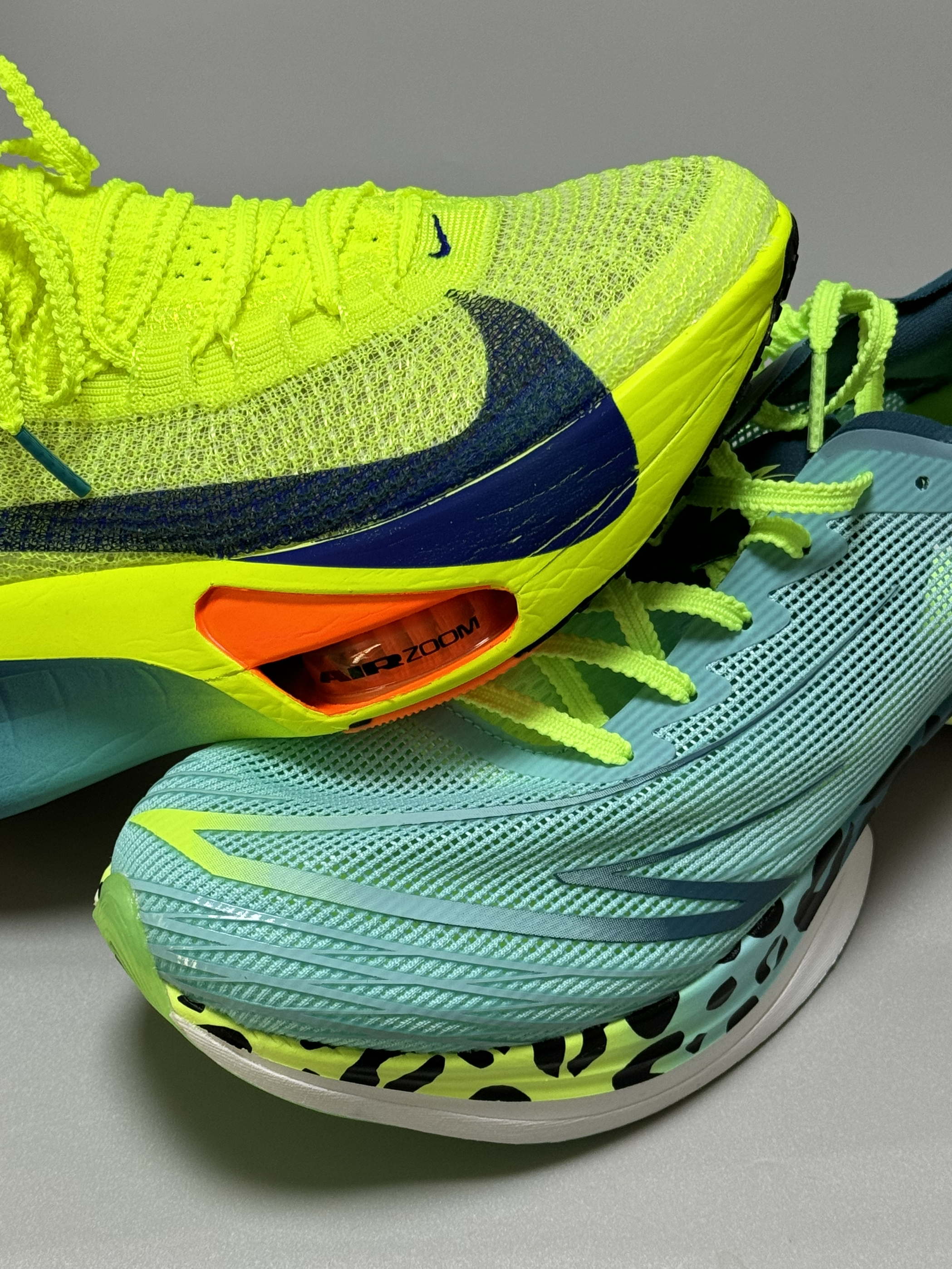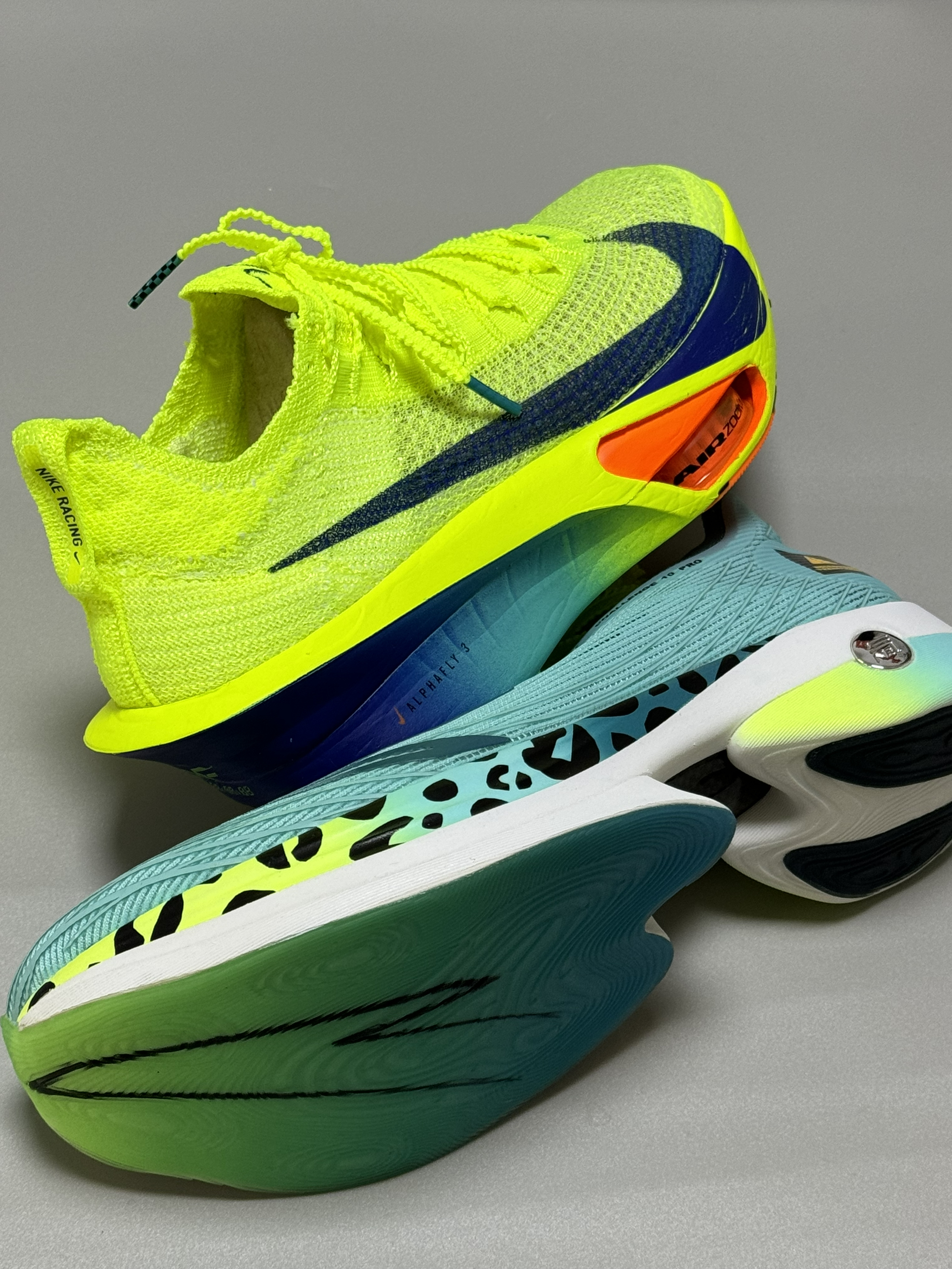 halo 阿迪来了本期分享两双up级竞速马拉松跑鞋!分别是这双钩子的alphafly 3和这双安踏的C10 Pro 话不多说,我们先来看看这双alphafly 3整双鞋鞋面这块全新Atomknit3.0科技鞋面,肉眼可见的透气网眼,韧性优良,保证跑步时包裹又透气。 一体式袜套编织鞋舌搭配麦穗鞋带,提升穿着包裹感与穿着系统在比赛中的稳定性,且编制鞋舌韧性十足,能有效解决压脚背问题。 双层ZOOMX泡...