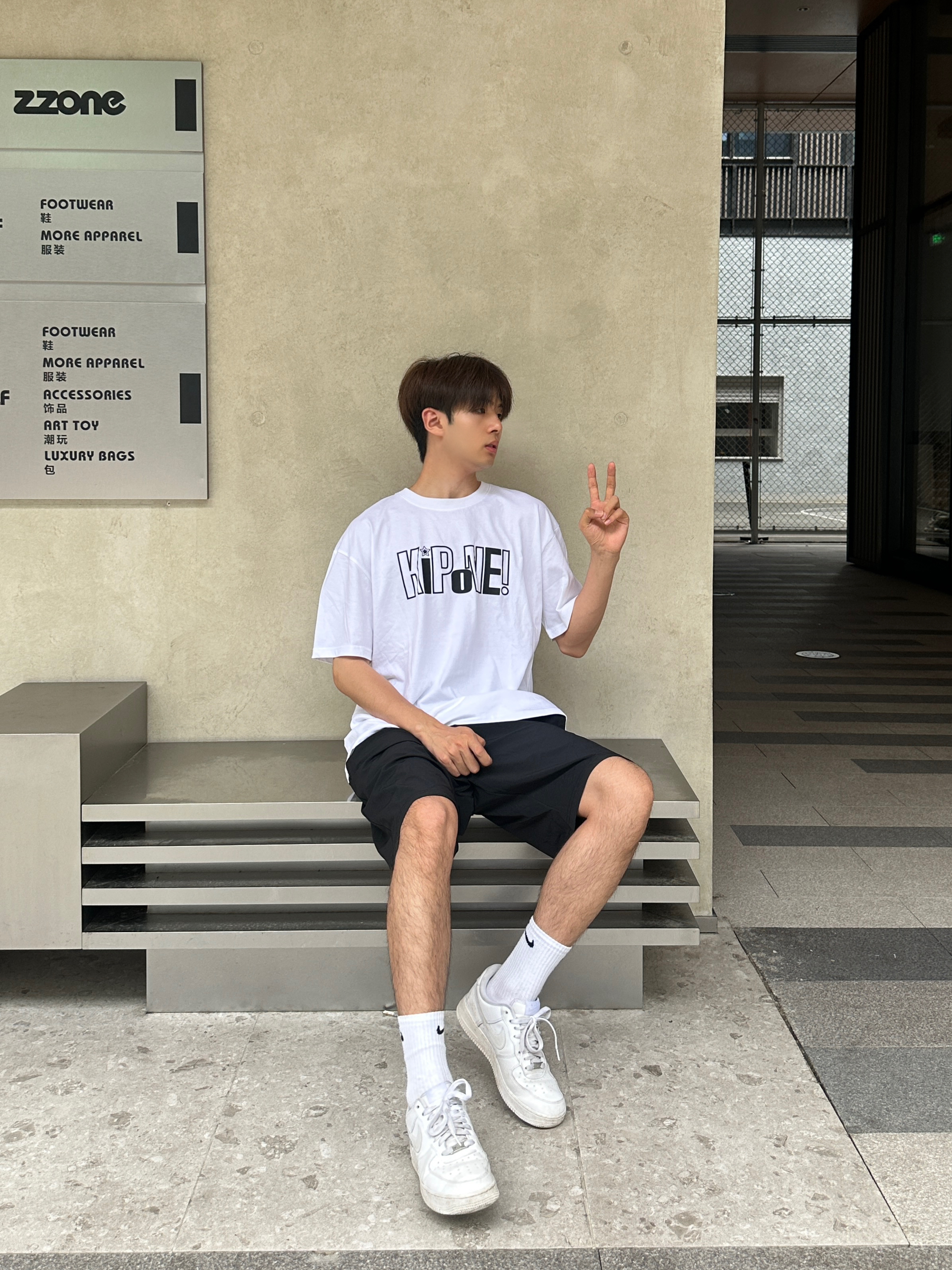 夏天来了 真正的较量开始了! 男孩子还是要穿的简约舒适 黑白是我觉得最百搭又好看的穿搭了 上衣纯棉黑白相间设计的美式T恤 加上黑色的运动短裤 就很有夏日少年感🥺