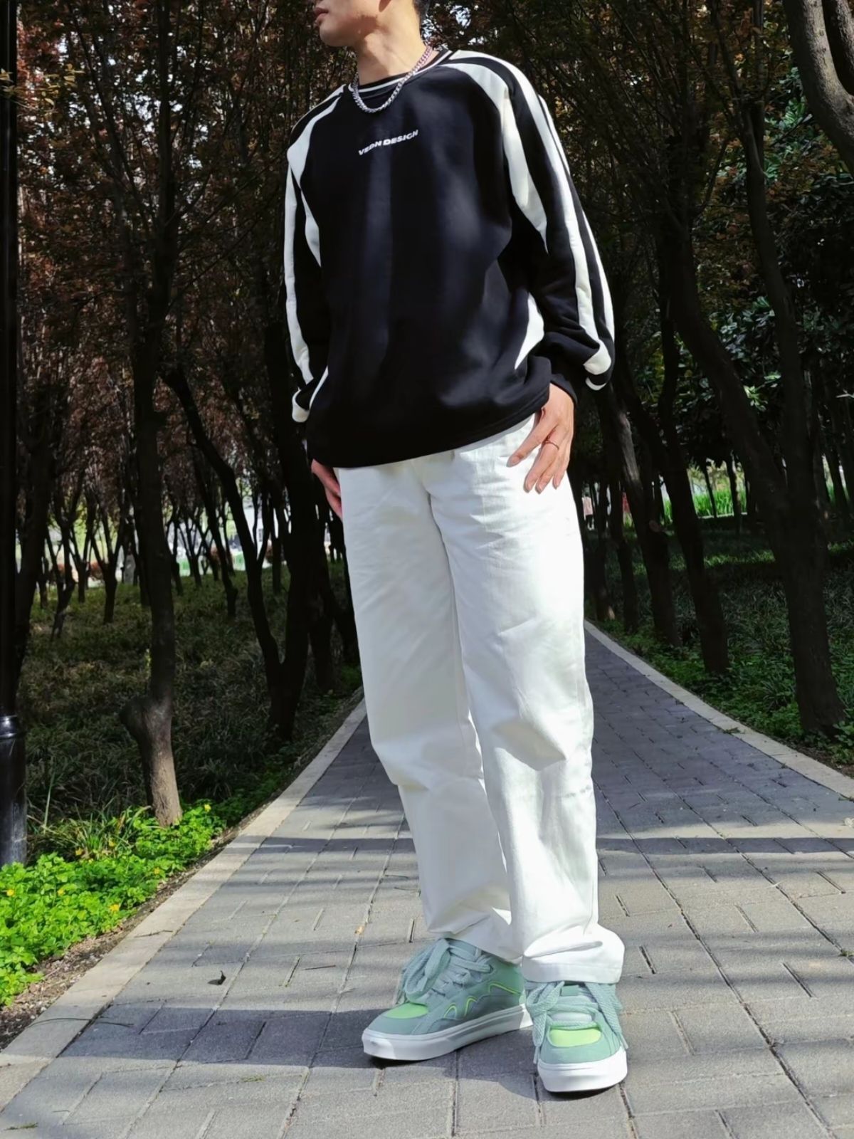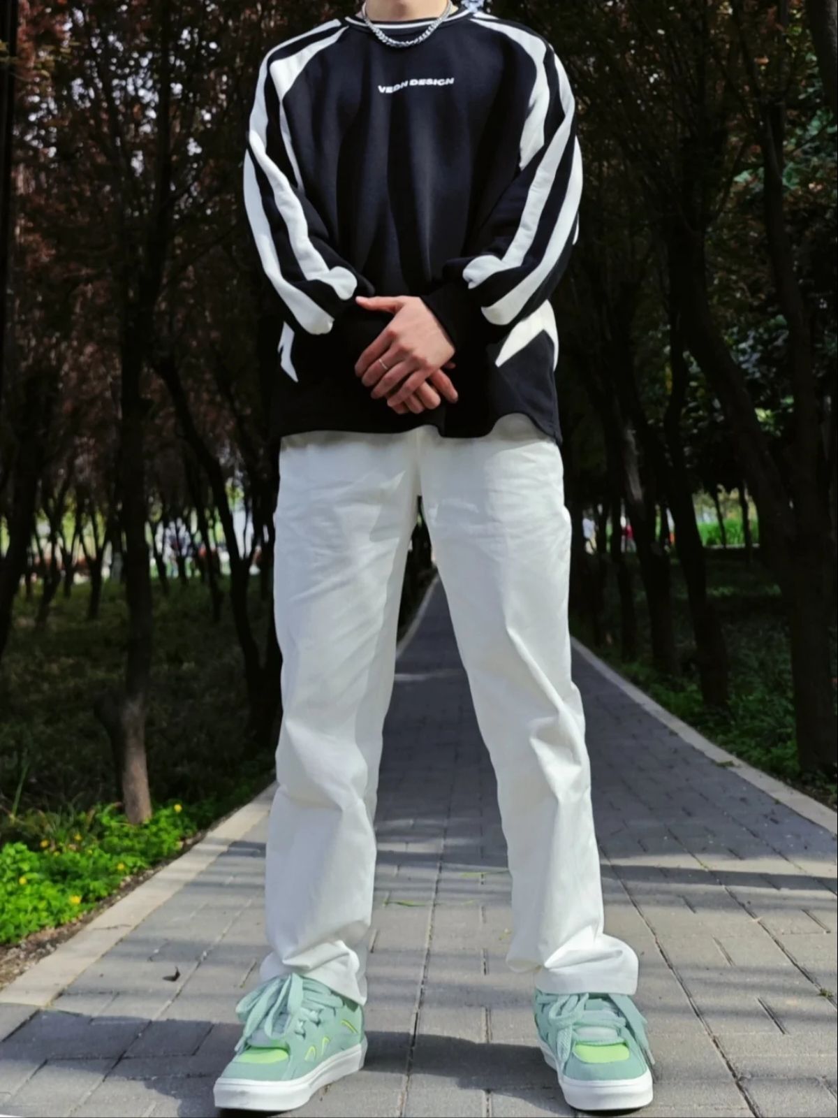 🏖️ 买了很多条裤子了,还没入手过白色款的,也是心血来潮买了FRQ的直筒休闲裤! · 🌠上身效果是不错的,配合个黑色短袖OR长袖都满帅的。 · 💭 但一定要挑好尺码,根据腿长来挑选裤长,不过略长也没问题,还可以卷起裤边穿着,也挺帅~