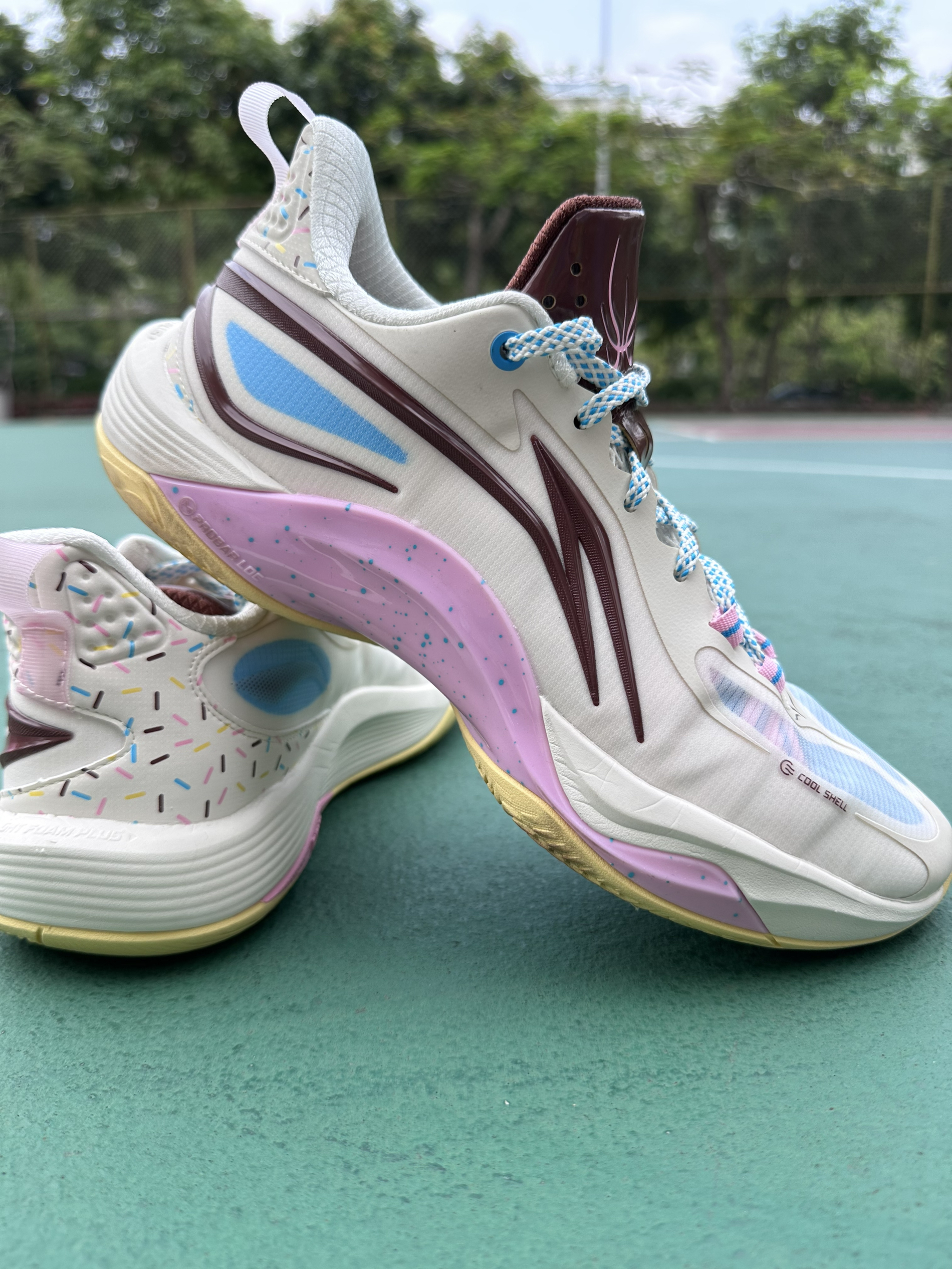 💍如果你喜欢闪击10但担心后掌不耐磨,推荐你试试闪凌一代❗️❗️我愿称他为——闪击10外场版❗️ 💍首发配色鞋面是工程网布,这双夏季版采用网纱搭配网眼✅轻薄透气,鞋头两对绑带增强了横移变向时前掌的锁定,比较惊喜的是,这次中底Lightfoam Plus调教的很不错,比之前相同材质韧性更足❗️ 💍中段X形抗扭片,外侧软质tpu联手保证鞋身刚性,Tuff RB硬度75征战外场无压力❗️大底横向人字纹设...