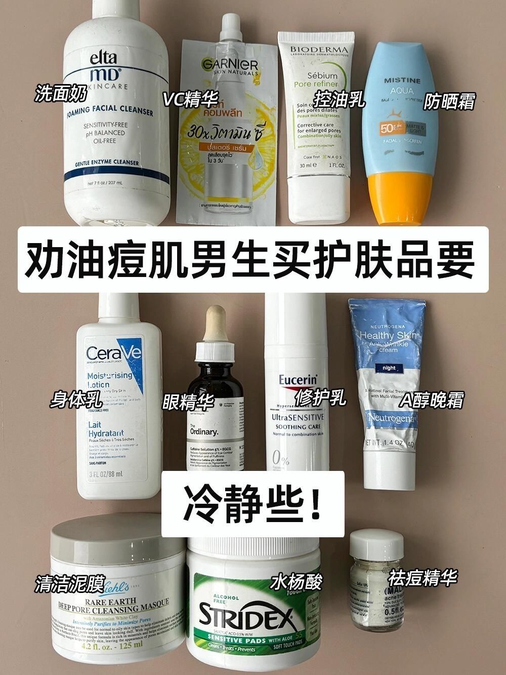 省流版:油痘肌男生用哪些护肤品? ❤原则:控油祛痘淡印 ❤宗旨:深层改善出油,源头遏制长痘! ❤愿景:愿天下男生不再长痘^_^ - 墙裂推荐皮肤油和长痘的兄弟们 用这一组平价国货护肤品套装 亲测好用成分yyds功效嘎嘎香! - ●清洁控油强悍-ercha洗面奶 ●日常出门防晒yyds-蜜丝婷防晒霜 ●控油净痘祛痘小能手-ercha水乳 ●高效去黑头-AYBB清洁泥膜 ●收缩毛孔给力!-AYBB果冻...