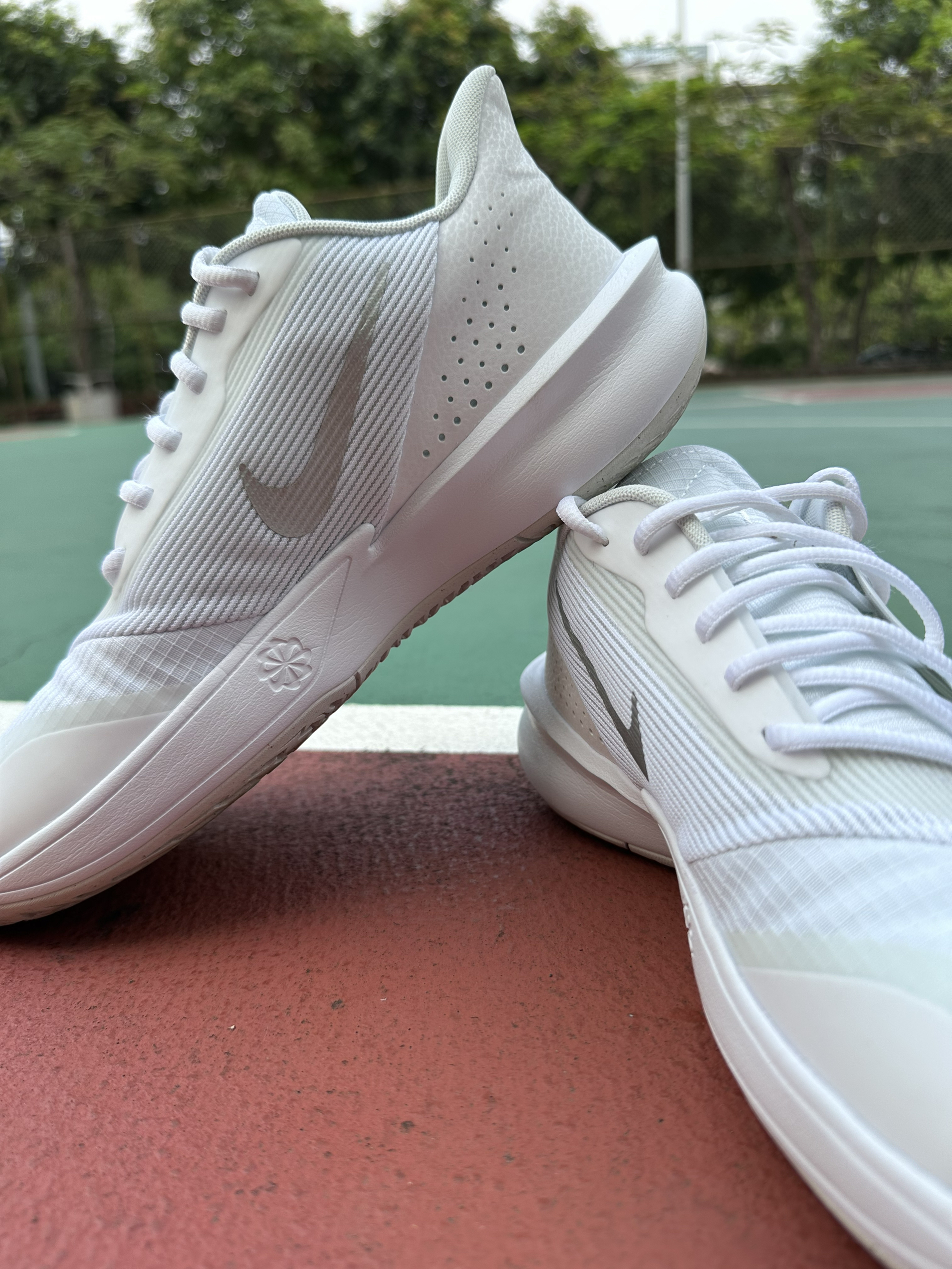 💍防侧翻角给的很足,优秀的重心控制加上前后低落差,形象点可以说是脚掌向外延伸了一圈,泡棉调教的前掌偏韧弹,这点我还是比较喜欢的。 💍可惜后掌缓震极限不高,外场穿到170左右已是极限❗️还好变向灵活,启动不拖沓,在大多数外场的抓地耐磨没问题✅除了多灰的拼接地有打滑情况。 💍鞋面比前两代有所加厚,这就导致透气性变差❗️❗️只有脚背部分有轻微的通气效果,厦季大概率闷脚,其次,没给抗扭片,大体重选手会觉得...