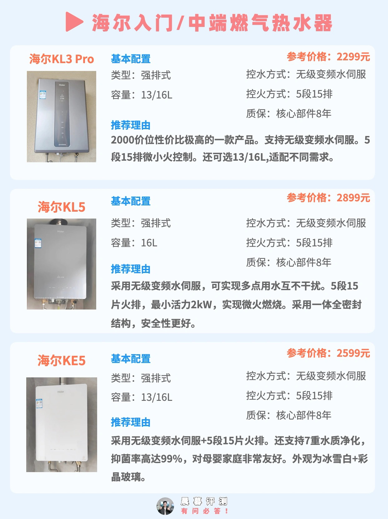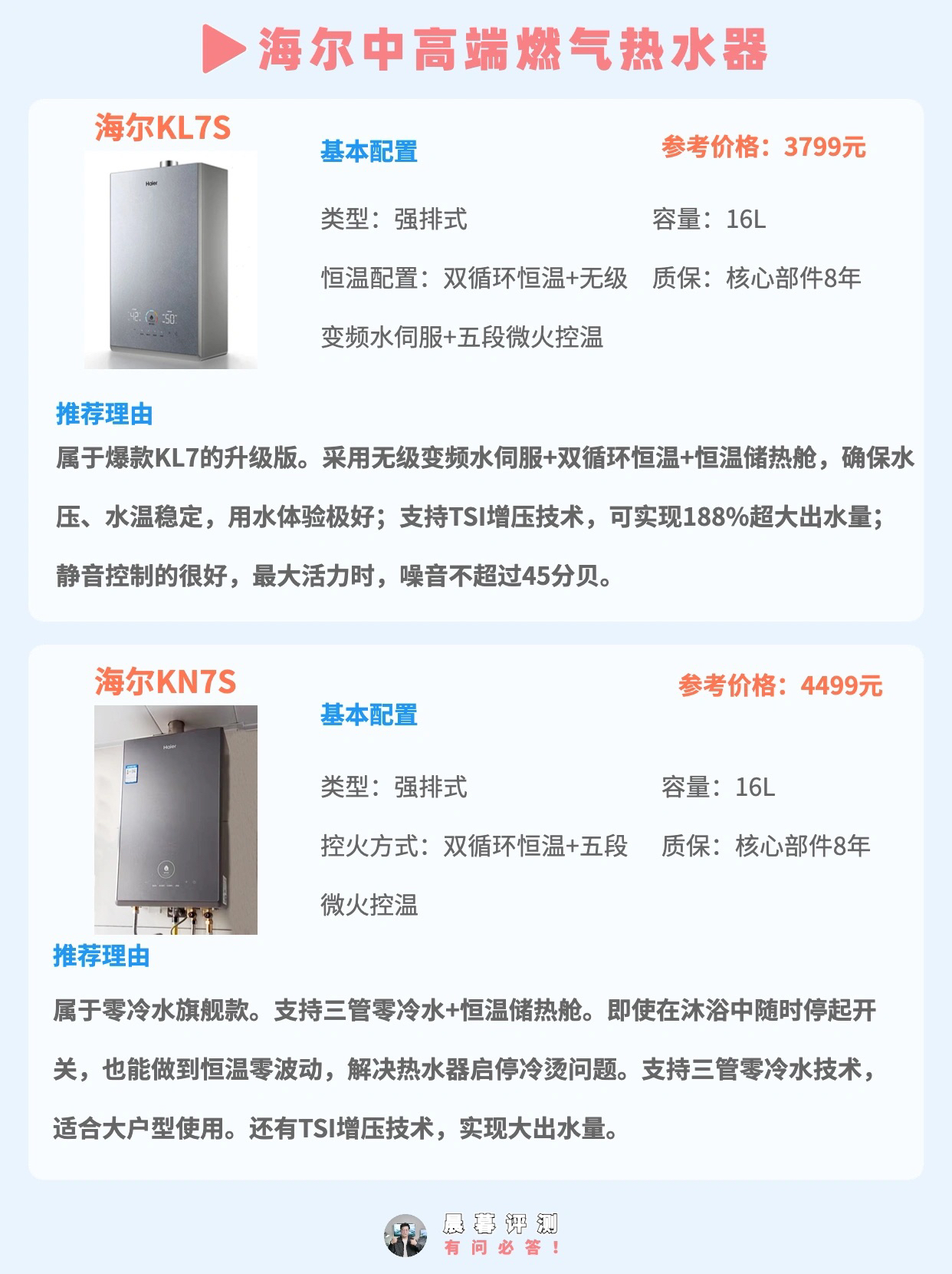 本篇笔记关联了Haier/海尔 K 燃气热水器 水量伺服 精准快速 水伺服 密闭 天然气 恒温 水温稳定 微火控温 KE5 16L、Haier/海尔 KL5锦绣U1 燃气热水器 16升 密闭稳燃舱 智控 天然气 强排式 零冷水 水伺服恒温 防冻 一级静音 净水洗 节能 下置 增压 无级变频 星蕴银等商品,为用户提供真实的使用体验和购买参考。