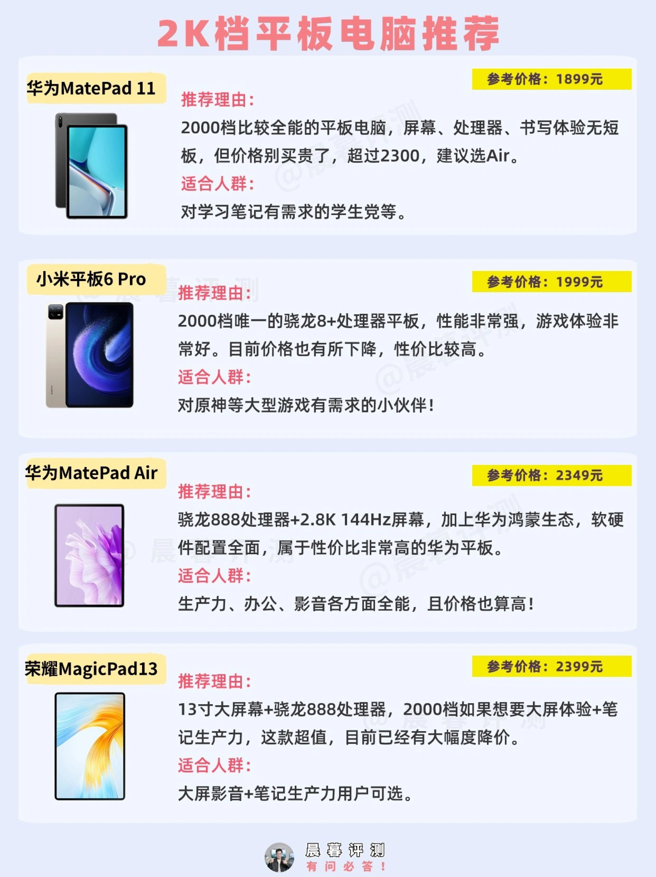 【高性价比平板电脑推荐!各价位选购攻略】,由用户 晨暮评测 分享,来自浙江。这是一篇来自识货社区的真实用户分享笔记。