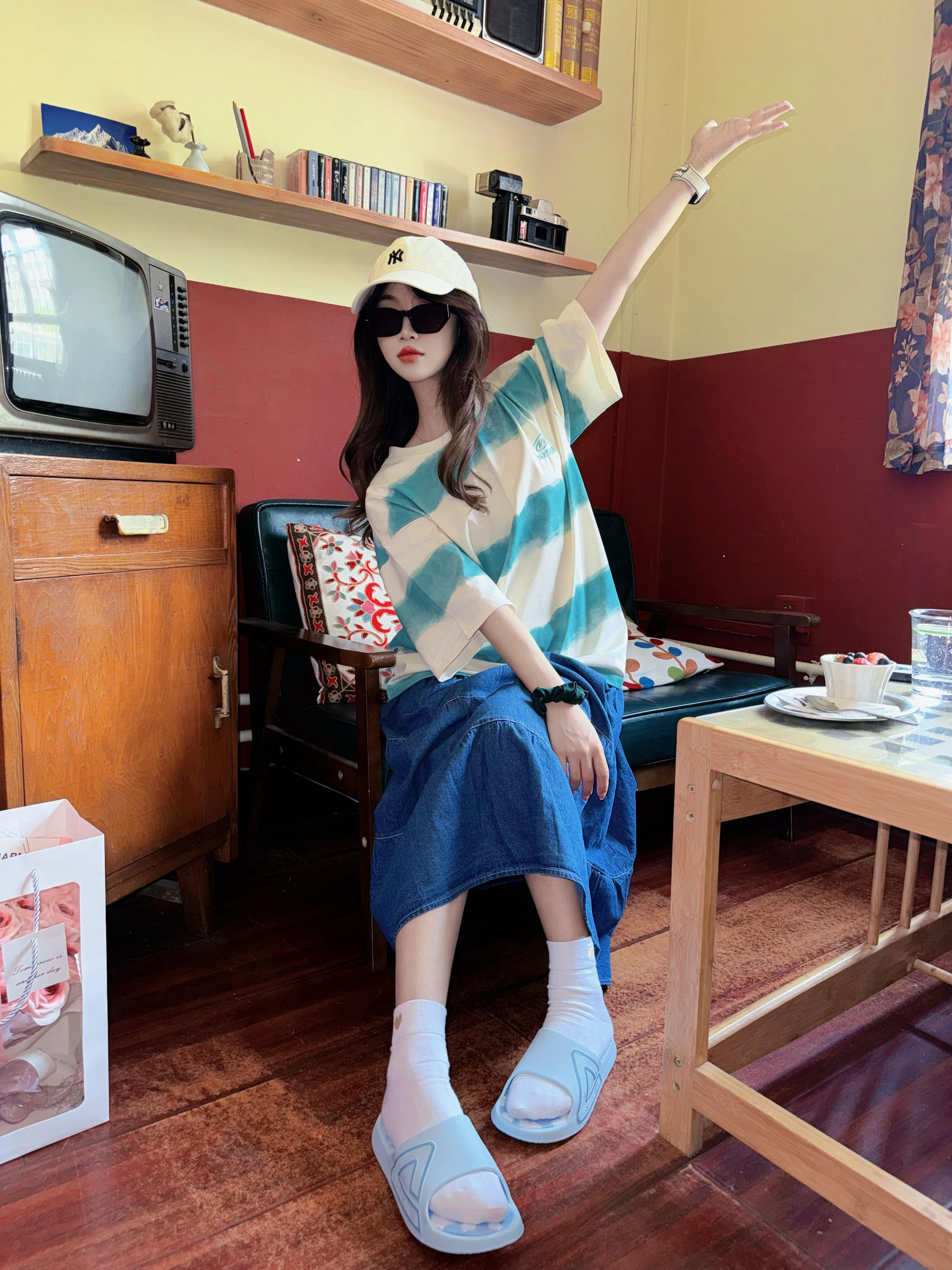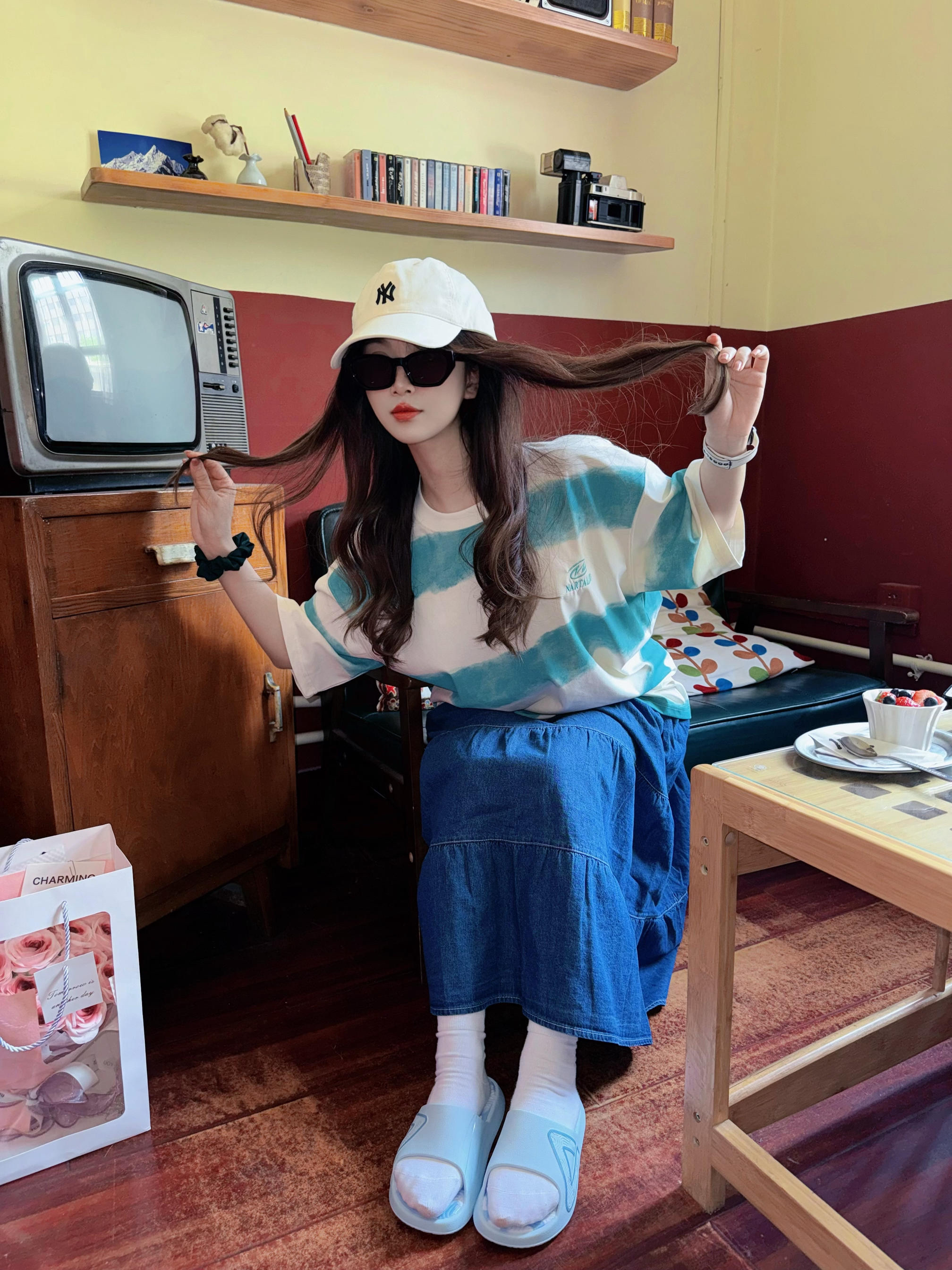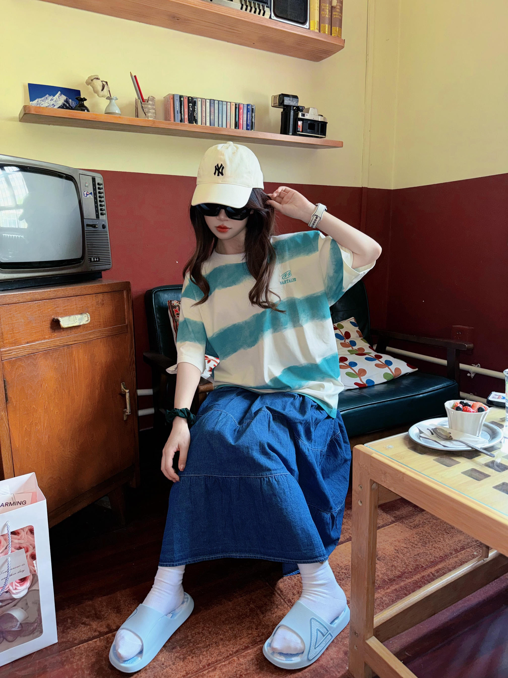 这个五月衣柜里是不是缺了一件百搭条纹T恤 微渐变的设计好喜欢😆 搭配牛仔长裙好舒服的感觉^_^ 百分百纯棉哦~布料超级软 穿起来也很凉快不闷,做工也很细致 穿显瘦百搭T恤真的给一种干净清爽的感觉 男女同款,性价比超高 154/40上身s码 #又一件宝藏T恤 #必入T恤分享 #不限穿搭合伙人 #晒出你的出片战衣 #条纹短袖T恤