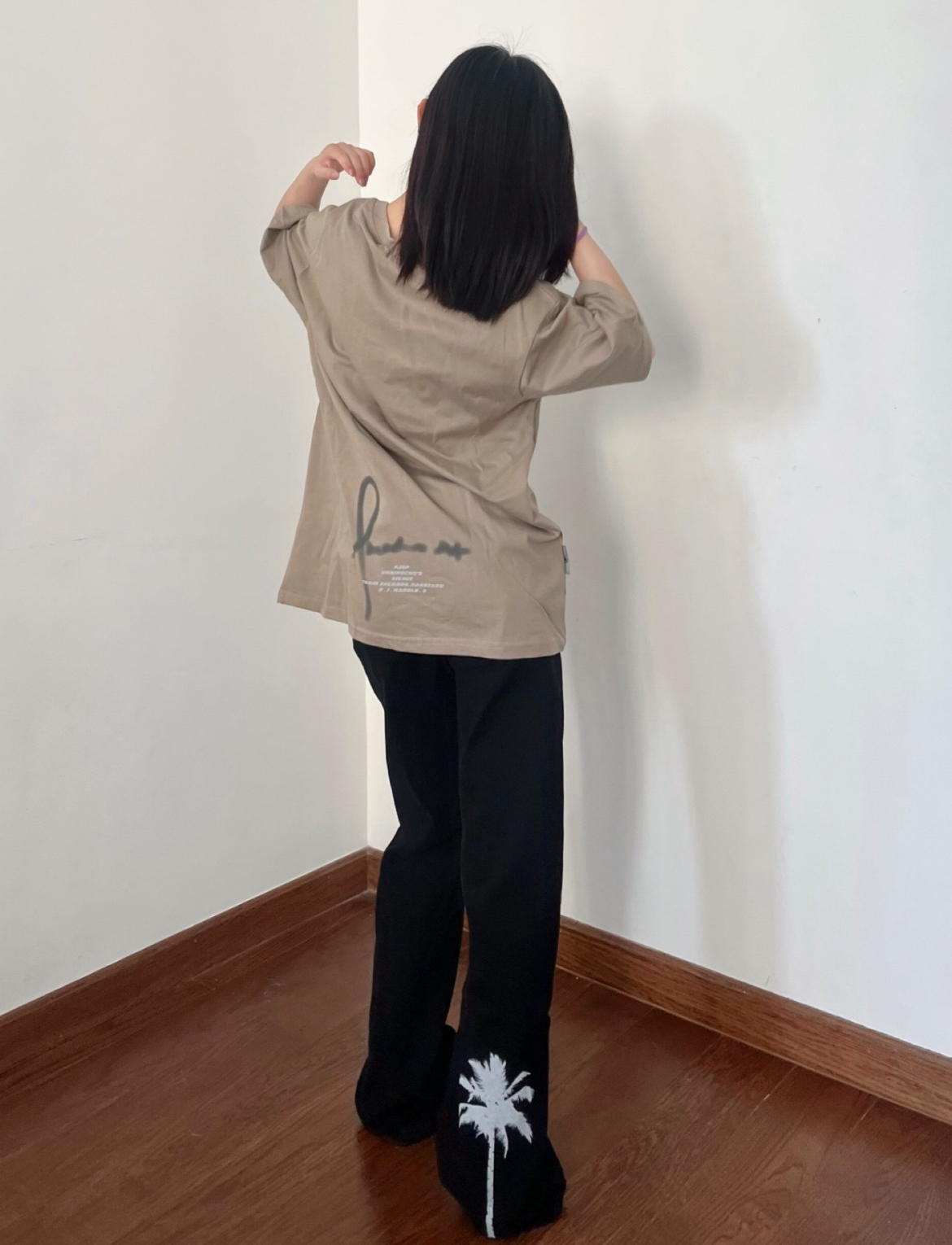 哈喽大家好,今天给大家带来一件好看又日常的牛仔裤👖,黑牛仔裤后面有着白色的椰树🌴印花,非常简约的同时又不缺设计感 裤子版型是微喇可以很好的修饰腿型!简直就是舒适又日常的穿搭