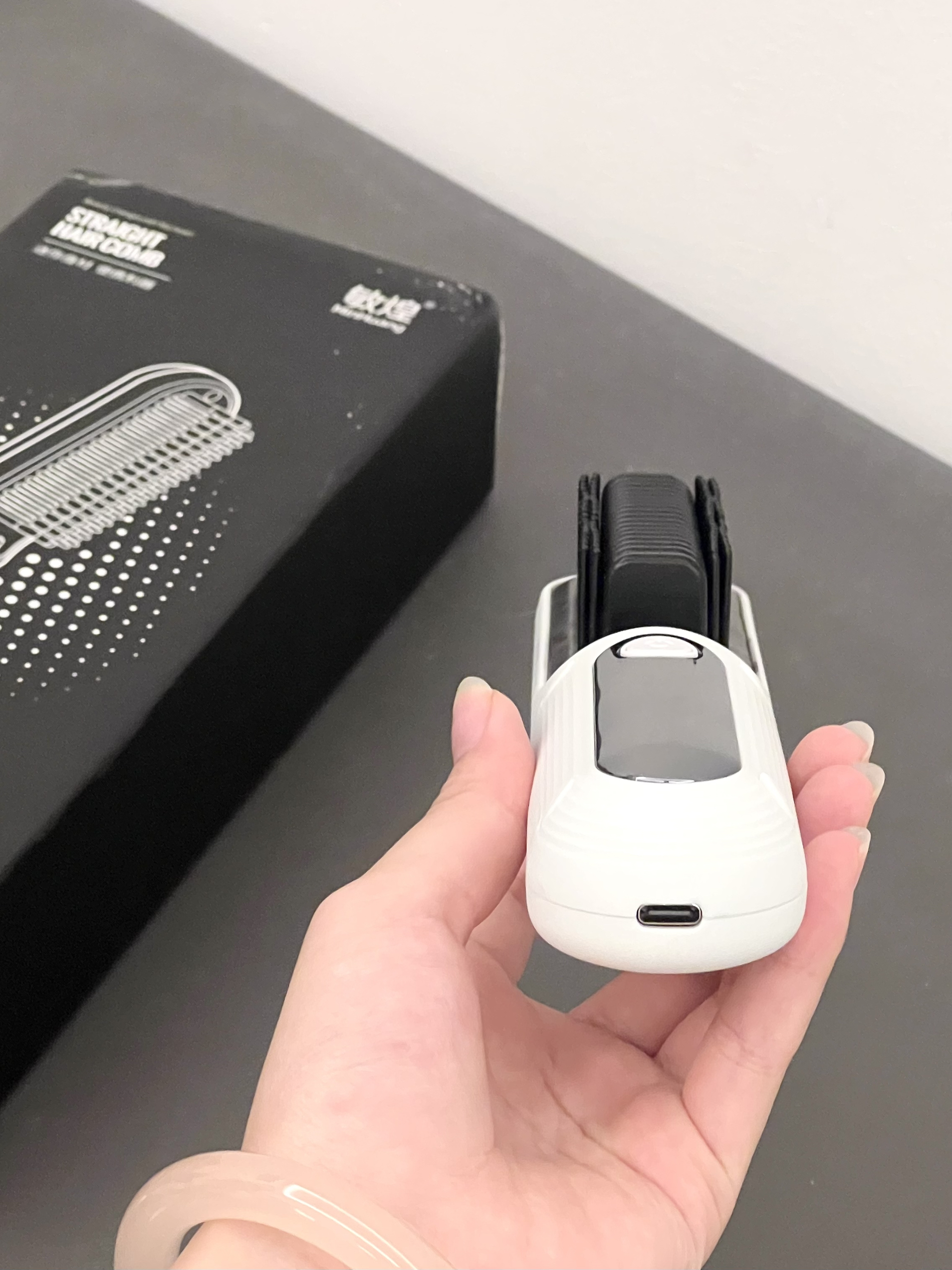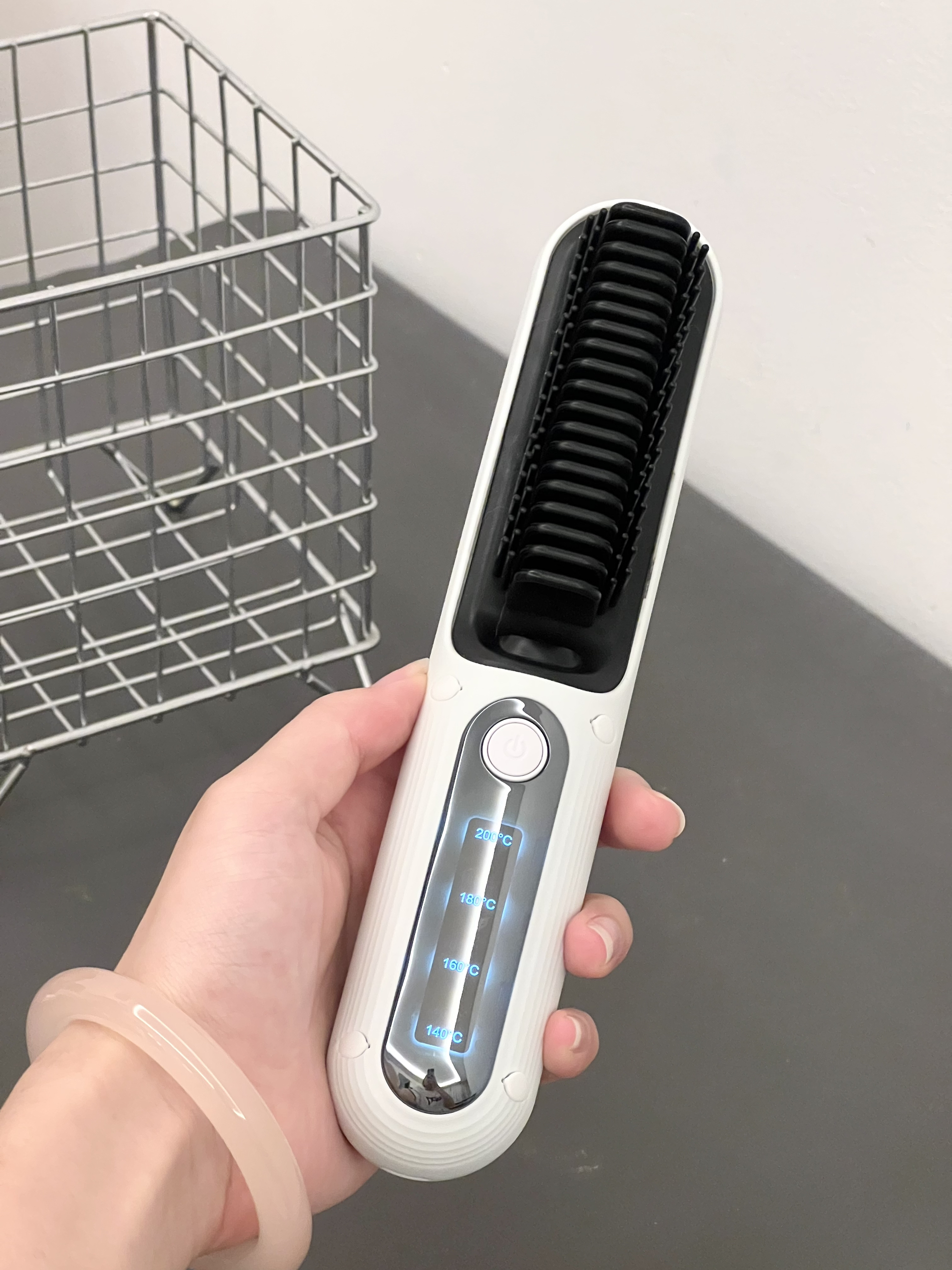 因为经常漂染头发 发质受损很严重 看上去毛躁很难看 拍照也显得乱糟糟的 考虑了好久入手了这个直发梳 没想到打开了新大陆 后悔没有早点买 不需要插电 是充电使用的 很方便 出去玩也可以带上 有多档位可以调节 有防烫设计 像我这种手残党也不怕烫到啦 每天出门前只需要像梳头一样梳一会儿就可以了 头发很快就直了 而且还可以做高颅顶 比卷发棒方便很多 漂发的姐妹快冲!