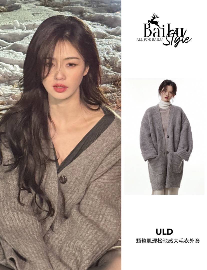 白鹿近日分享一组户外随拍,身穿灰色慵懒针织开衫,宽松版型松弛有度,流畅的线条感与慵懒包裹感,轻松穿出随意慵懒感,是秋冬不可缺少的百搭单品,可盐可甜 开衫| 自ULD 颗粒肌理松弛感大毛衣外套