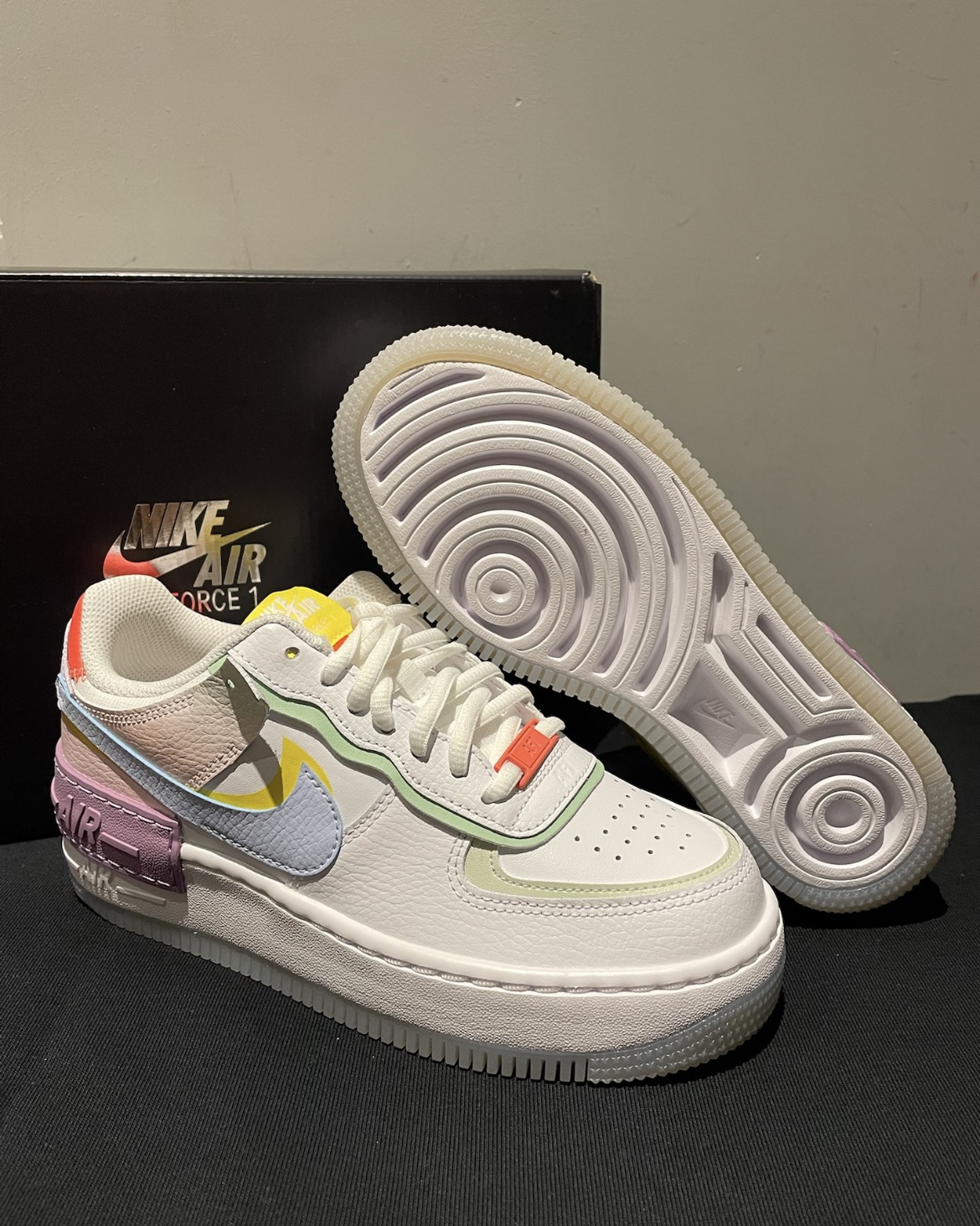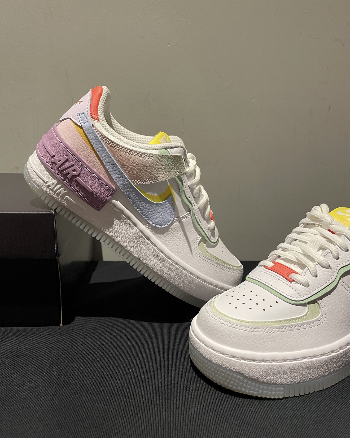 Nike Air Force 1 Low Shadow 1E73 板鞋 马卡龙 鞋面采用全皮革打造,质感细腻易打理,多色彩搭配,甜美可爱 鞋眼、挡泥片、后跟饰片和Swoosh标志均采用双重设计,打造非凡层叠造型 泡绵中底搭配凹槽外底,加厚的中底具有增高效 果 上脚轻盈舒适,休闲百搭,搭配牛仔裤、运动裤、裙子都非常好看! #这双鞋也太少女心爆棚吧