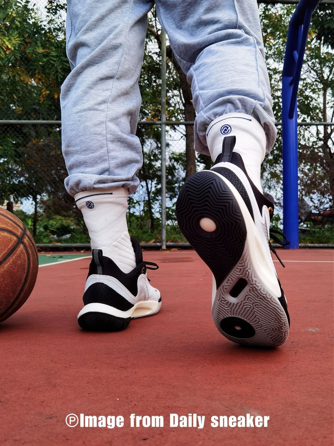 测评人信息 身高:172cm 体重:73kg 脚型:正常(罗马脚) 脚长:265mm 鞋码:43码(265) 打法:6投4突(直线突破+中投) 1⃣️包裹性: 鞋面采用网纱搭配热熔压胶补强,保证透气性和强度,而这个鞋面的设计和幻影4非常的相似,后跟的填充厚实,虽然足弓支撑稍微偏弱了一丢丢,但整体的包裹性和支撑性都不错。 绑缚系统有六组鞋带孔,第1.2组为织物绑带...