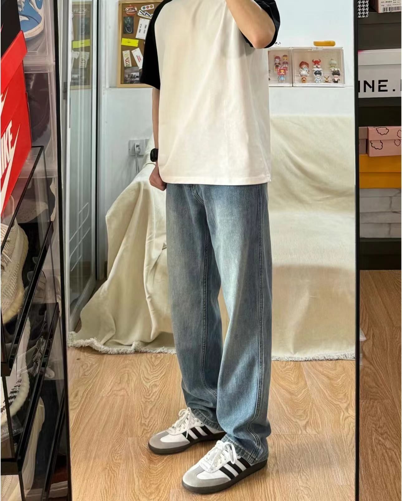 分享一条嘎嘎显瘦百搭的黄泥牛仔裤 裤腿有一点开叉设计 搭配特殊的水洗色 很吸睛 美式风短袖超适合夏天 阳光干净 整体版型偏修长可以修饰腿型,面料有弹性不论胖瘦可以穿 上身是比较修身的效果 可以搭配不同款式的鞋子都很好看 #好搭的裤子 #裤子种草 #黄泥牛仔裤 #显瘦牛仔裤 #男生裤子推荐 #ootd每日穿搭 #OCW旗舰店
