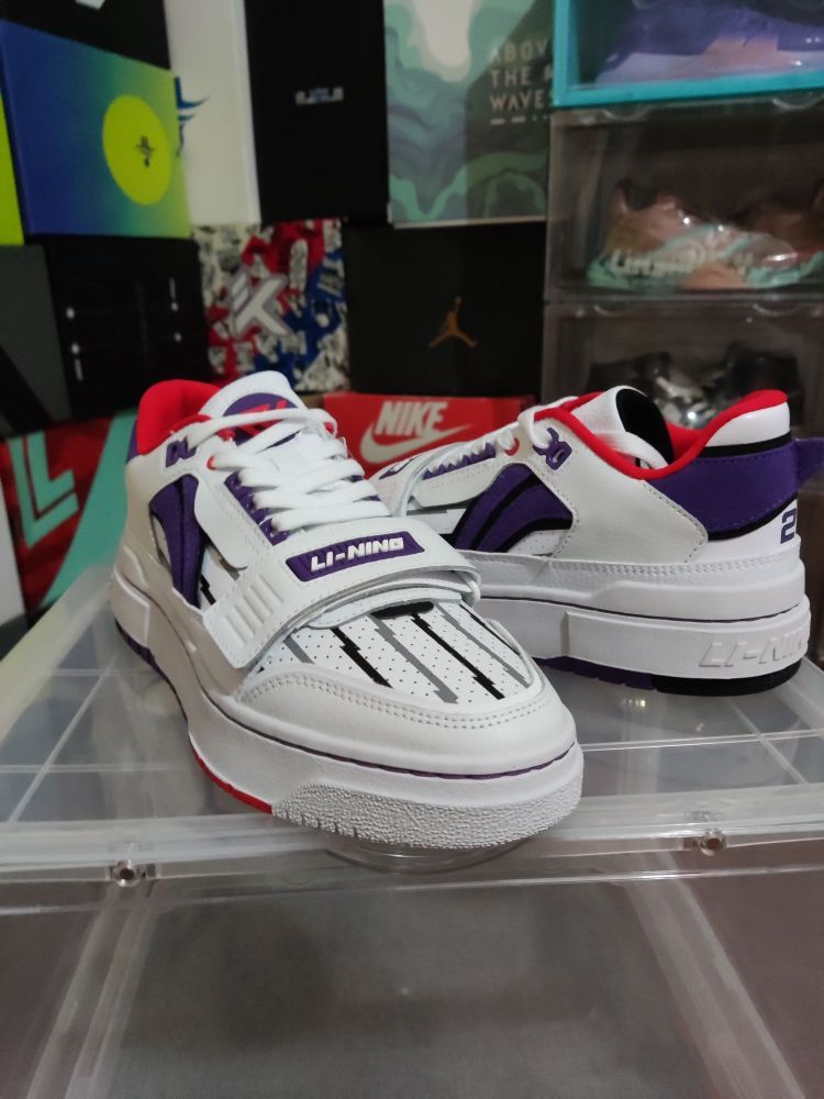 LiNing李宁 新秀Rookie 范弗利特pe白紫 这款板鞋配色灵感来源于范弗里特所在的猛龙队复古衣,整体颜色搭配白色为主色调紫色点缀,鞋面还有复古球员的条纹设计,鞋舌和鞋后跟分别有着范弗里特的球衣号码和个人专属LOGO,这样一双结合了球员的个人和球队元素的一双板鞋你会喜欢?