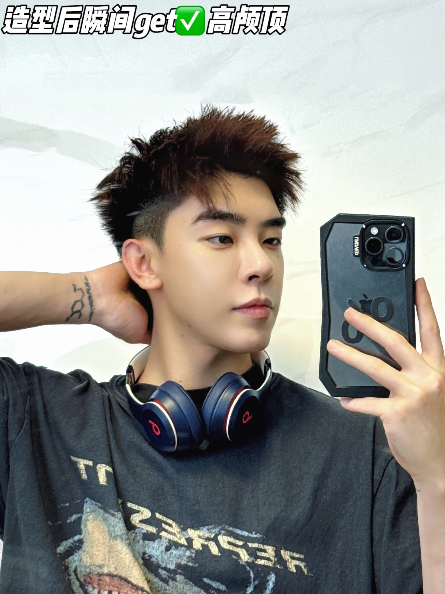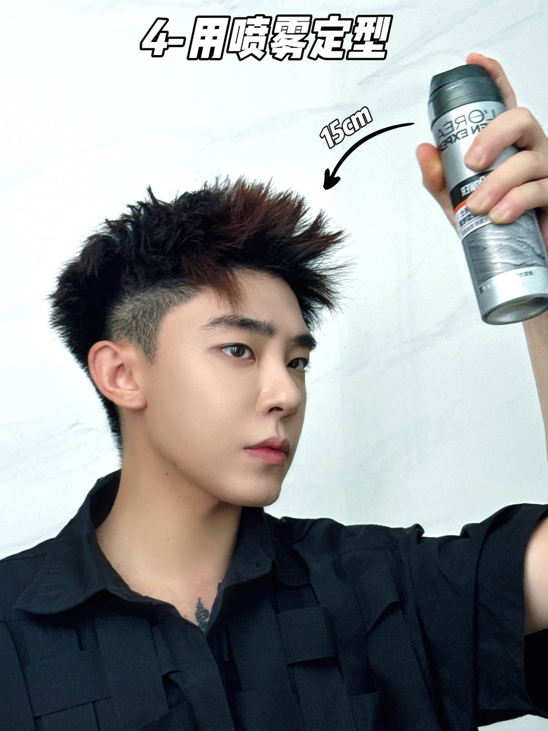 4️⃣整体定型:用喷雾整体定型,帅气发型保持一整天~