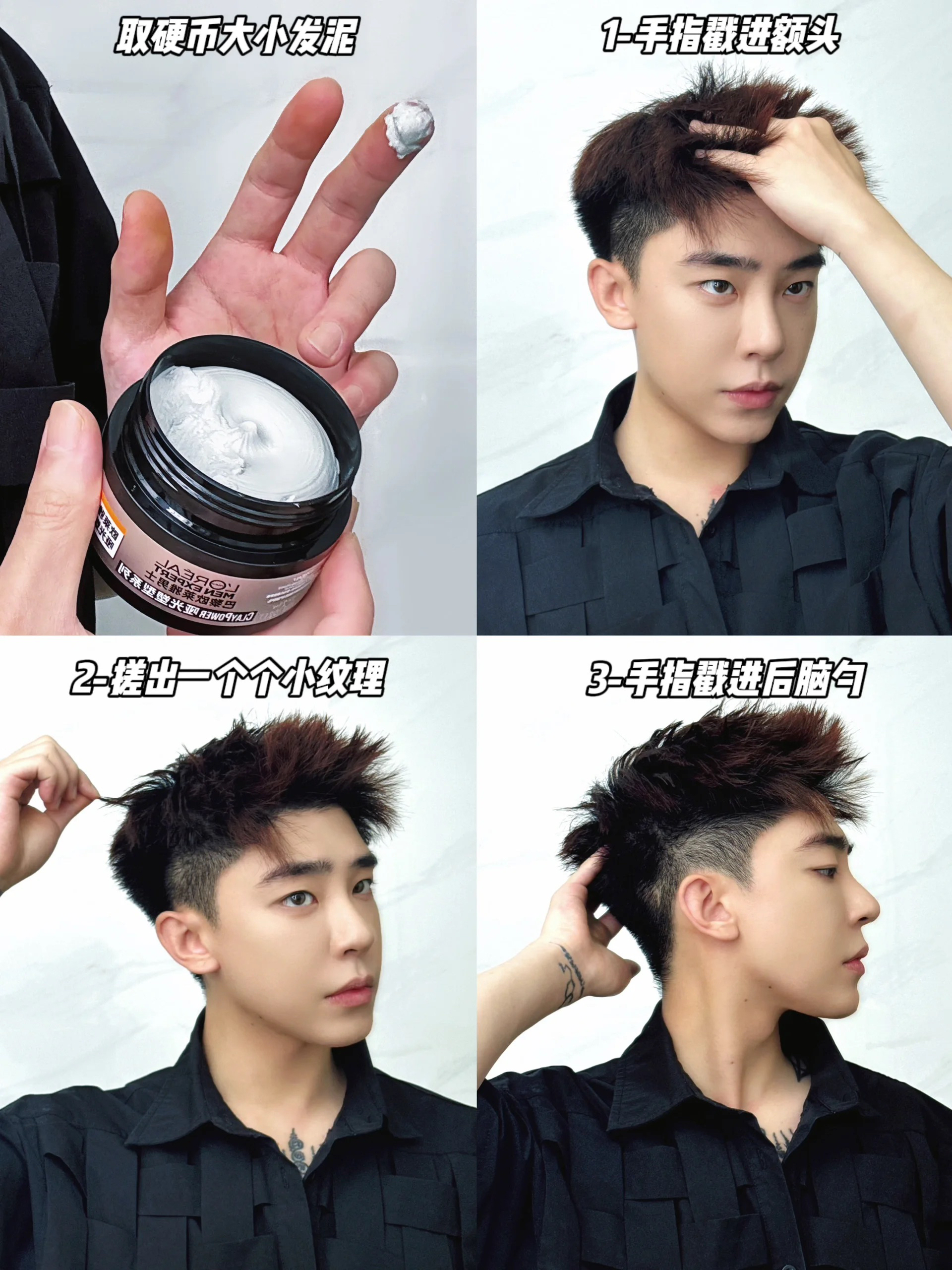 2️⃣纹理:用发泥抓出一个个的小刺,让发型纹理造型感更强~