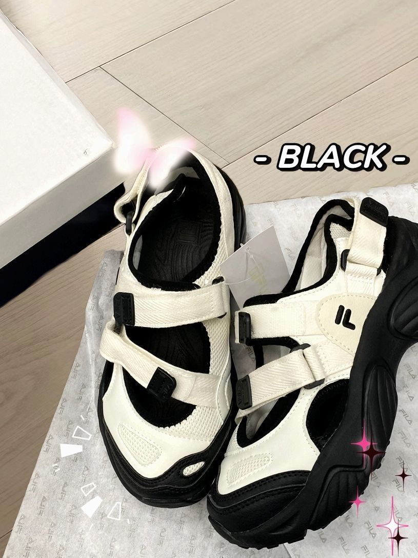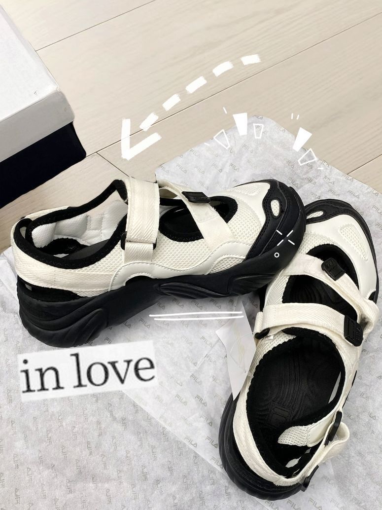 FILA 鞋子超级轻,超级舒服 透气耐穿,走路很轻无负担 无痛增高的首选❗ 魔术贴的设计,穿脱方便 米白和黑的搭配,颜色奶呼呼 夏天搭个袜子穿,显瘦又舒服 松弛感这不就来了~ 不对称设计时髦吸精 甜酷👧🏻都可入 凉鞋越来越🔥,趁着降价赶紧冲!