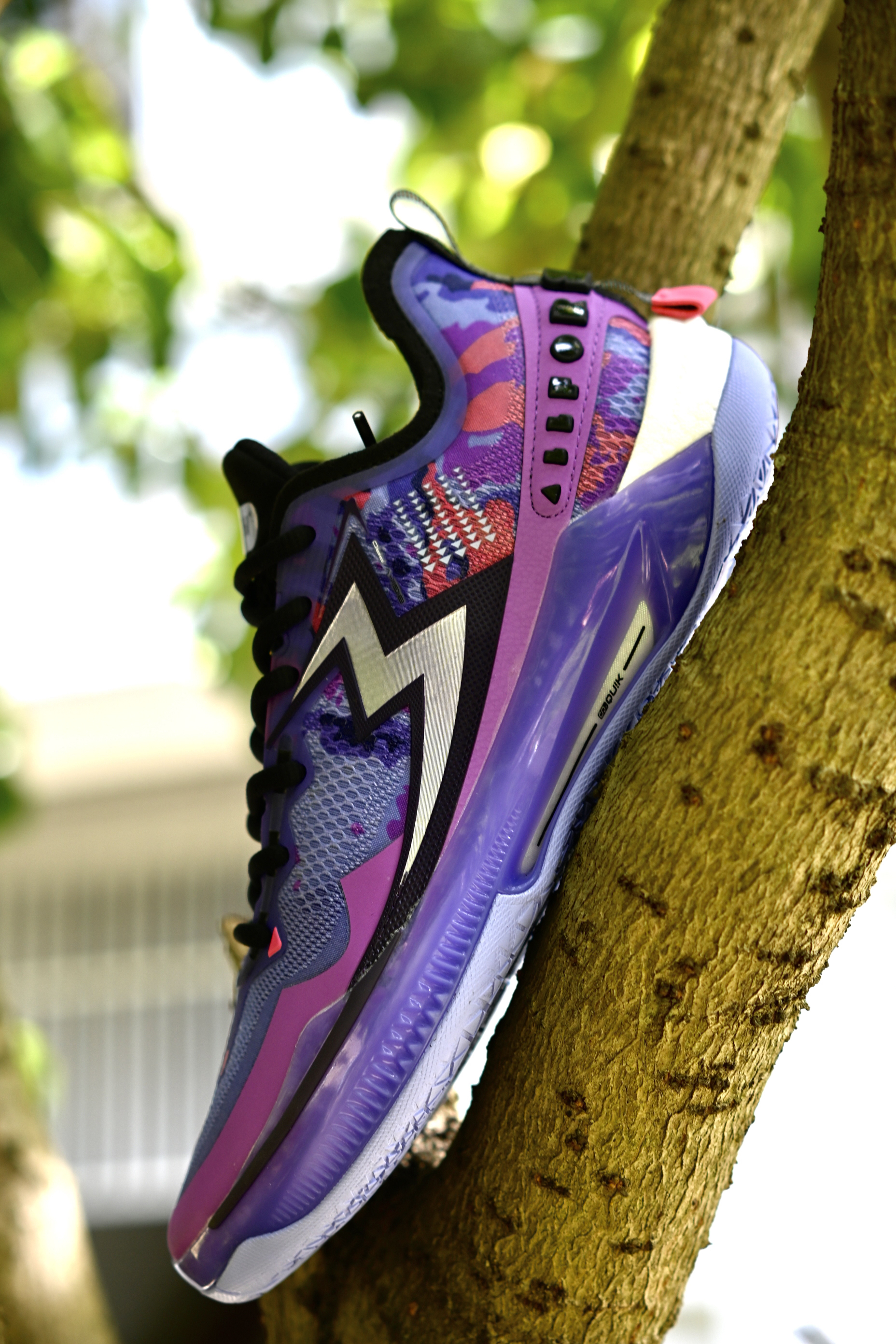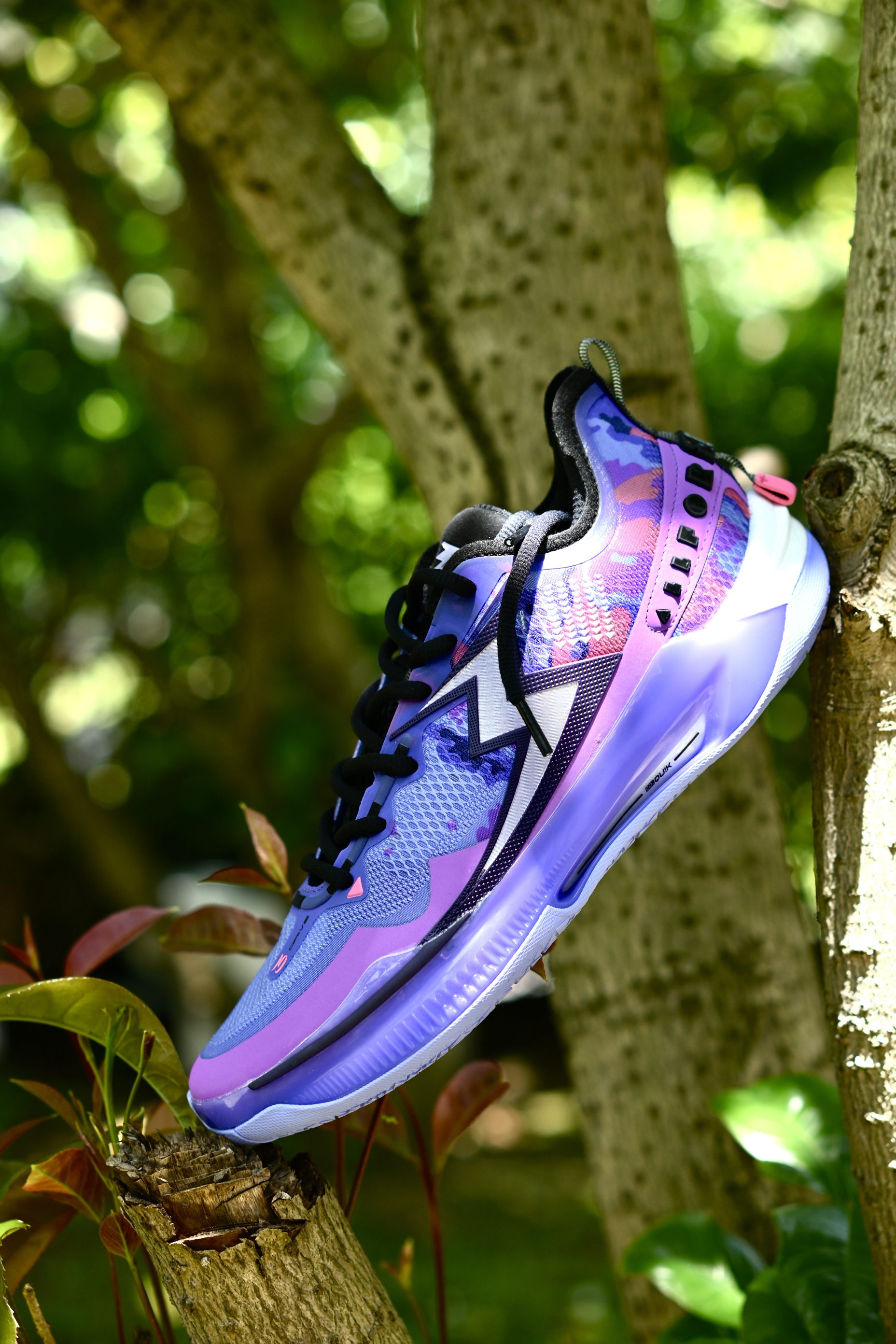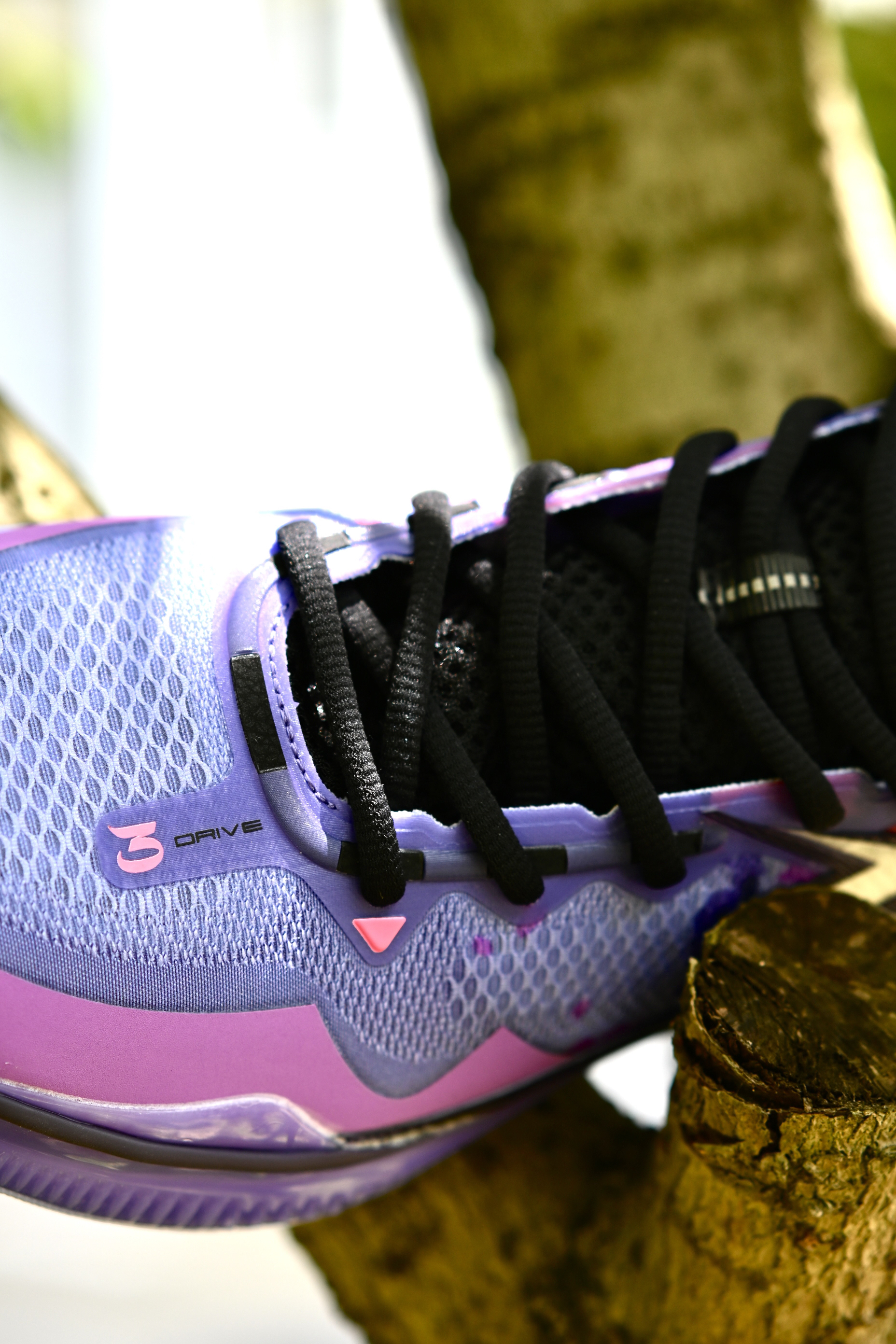 最近又收到了一双实战鞋,还没发售,给大家提前开箱看一下细节,后续也带来详细实战测评,感谢361的支持哦~ - 云涌配色,南方人都不会读吧“风起云涌”念三遍😅。白紫配色,漂漂亮亮的颜色搭配,侧边大大的“3”就有一种赛博朋克的味道,科技感。 ETPU纱梭织鞋面,强度和透气性都很不错,前掌会有一点点硬,不过还行。鞋面外侧有包围的TPU支撑,所以支持性也很优秀哦!中底呢,碳临界科技,感觉有点类似于李宁的䨻...