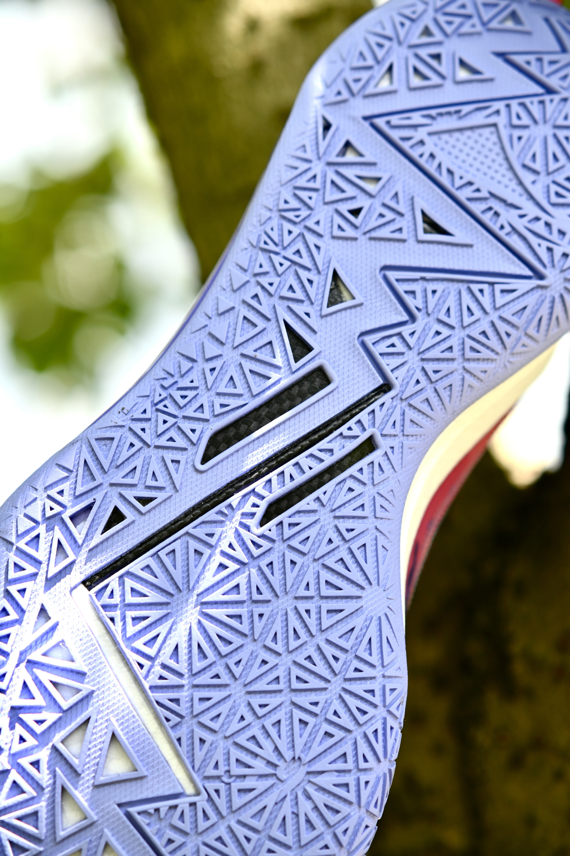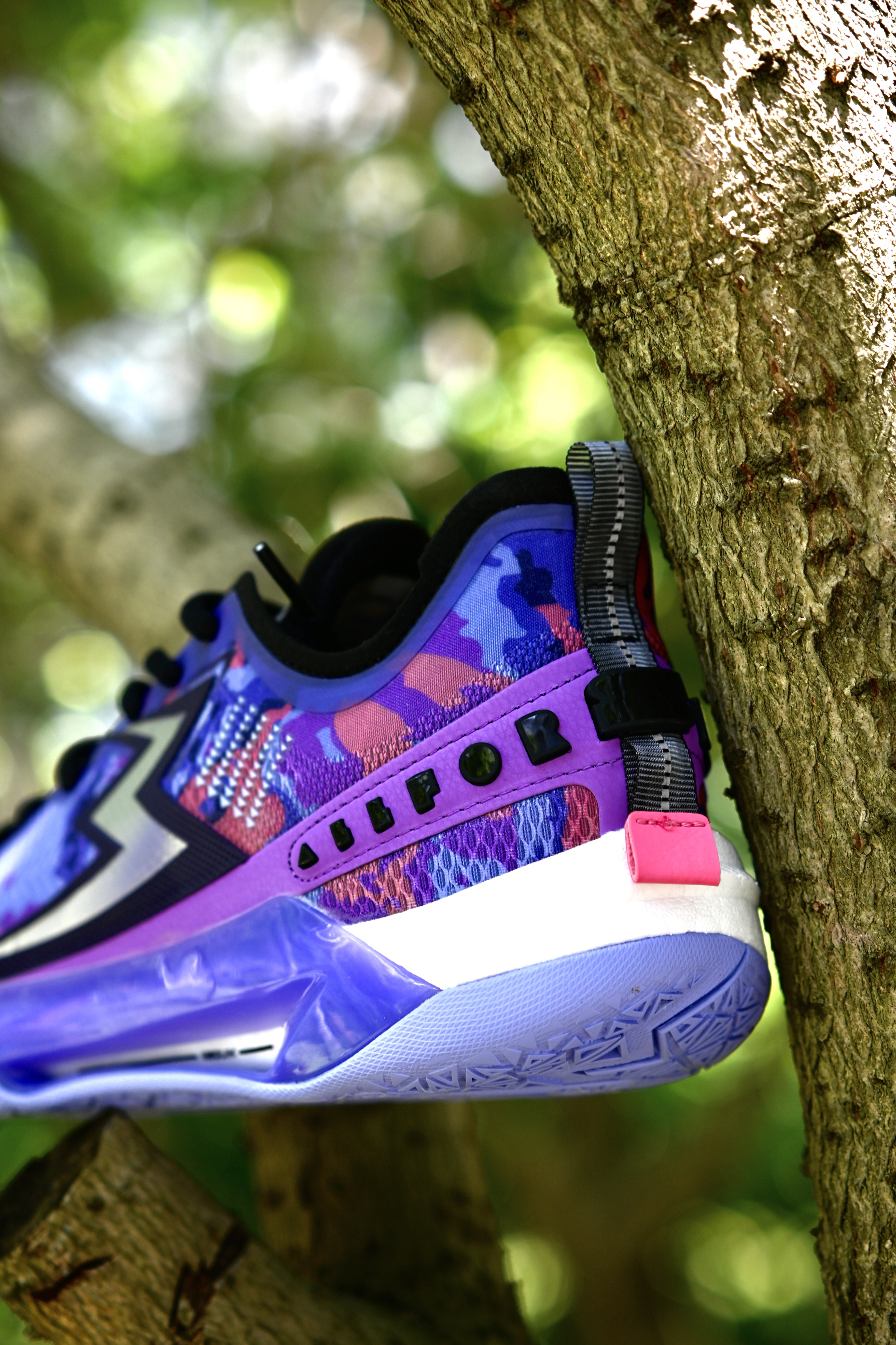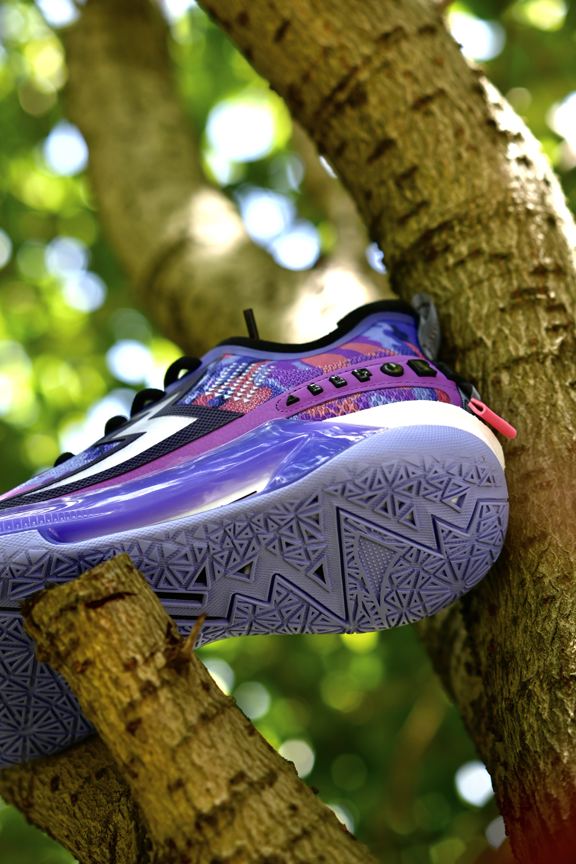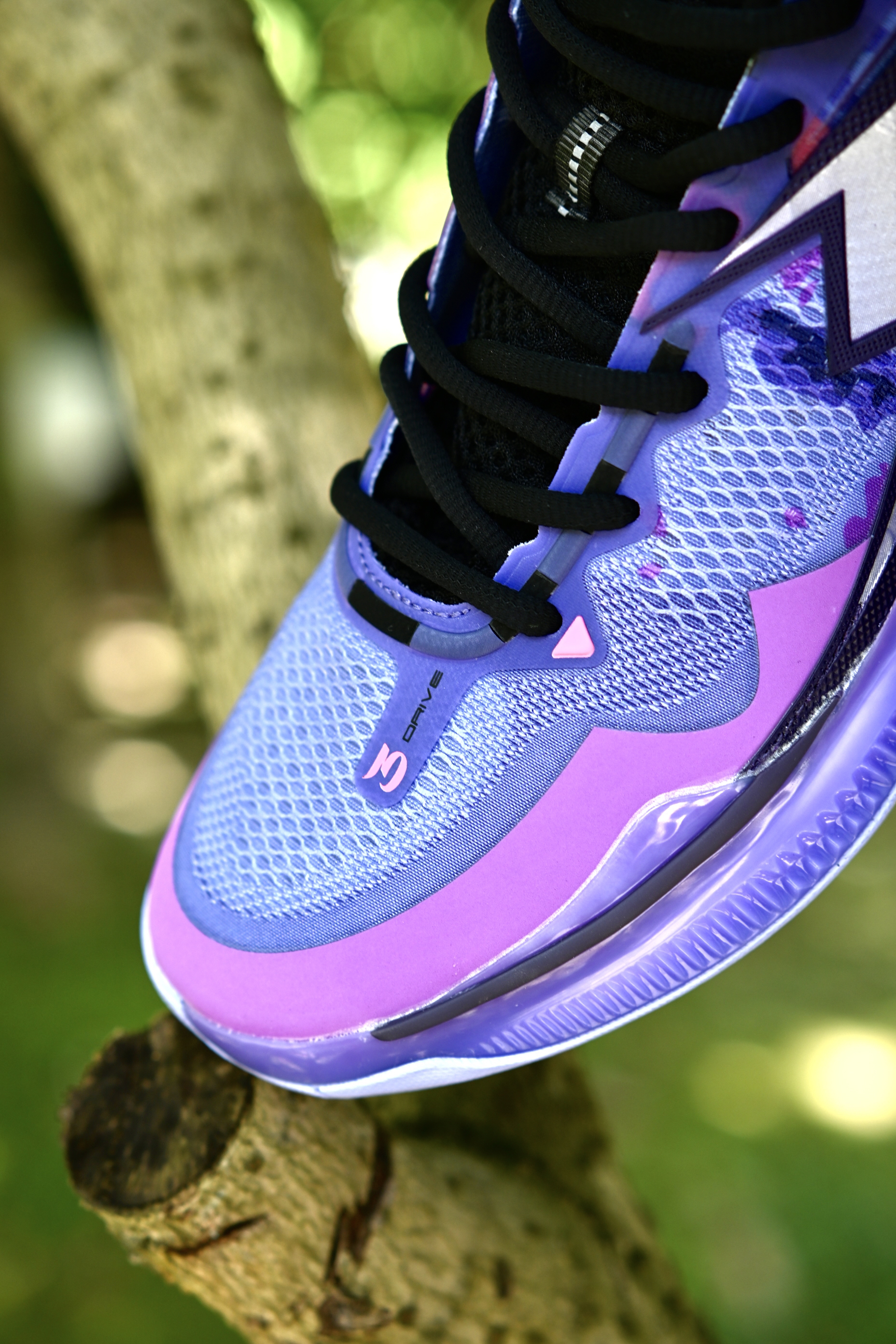 最近又收到了一双实战鞋,还没发售,给大家提前开箱看一下细节,后续也带来详细实战测评,感谢361的支持哦~ - 云涌配色,南方人都不会读吧“风起云涌”念三遍😅。白紫配色,漂漂亮亮的颜色搭配,侧边大大的“3”就有一种赛博朋克的味道,科技感。 ETPU纱梭织鞋面,强度和透气性都很不错,前掌会有一点点硬,不过还行。鞋面外侧有包围的TPU支撑,所以支持性也很优秀哦!中底呢,碳临界科技,感觉有点类似于李宁的䨻...