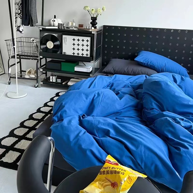 卧室里面蓝色搭配灰色,这也太惊艳了,让人眼前一亮,与棉共眠每天都会有个好心情,韩式ins风不仅颜值高还是纯棉的面料盖着很舒服 睡着柔软透气做懂你的四件套,简直就是心动预警,氛围感很强,完全没有色差就很nice,初次尝试极简混搭风格就与现实生活状态碰撞出,另类,个性 独特的火花没有尝试过这样的风格的真的巨巨巨巨推荐