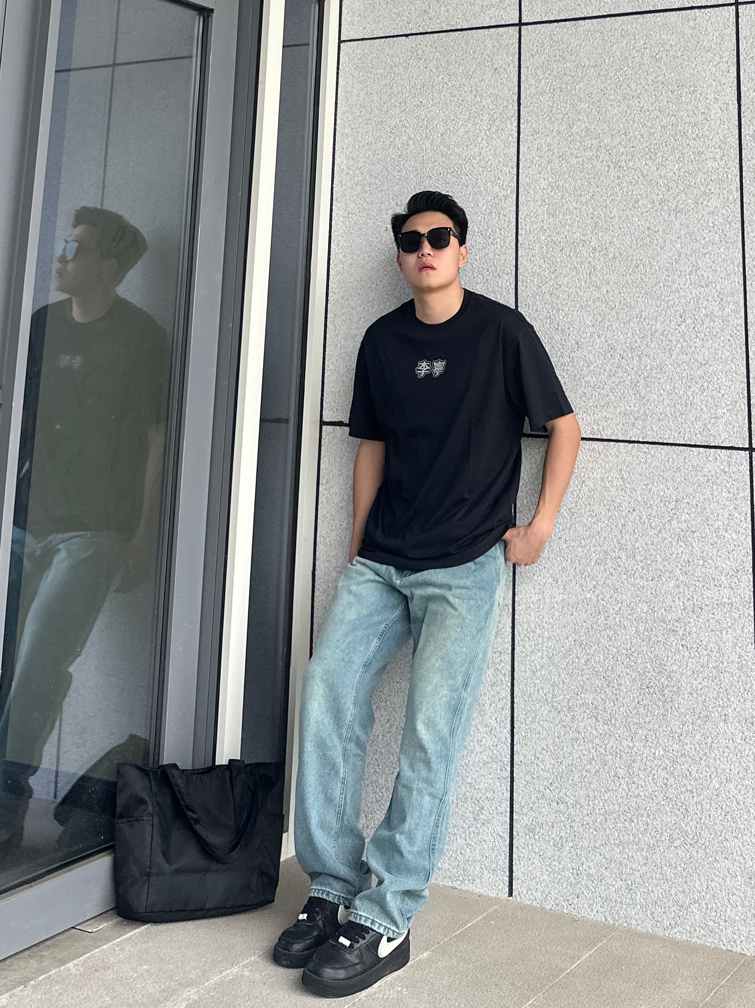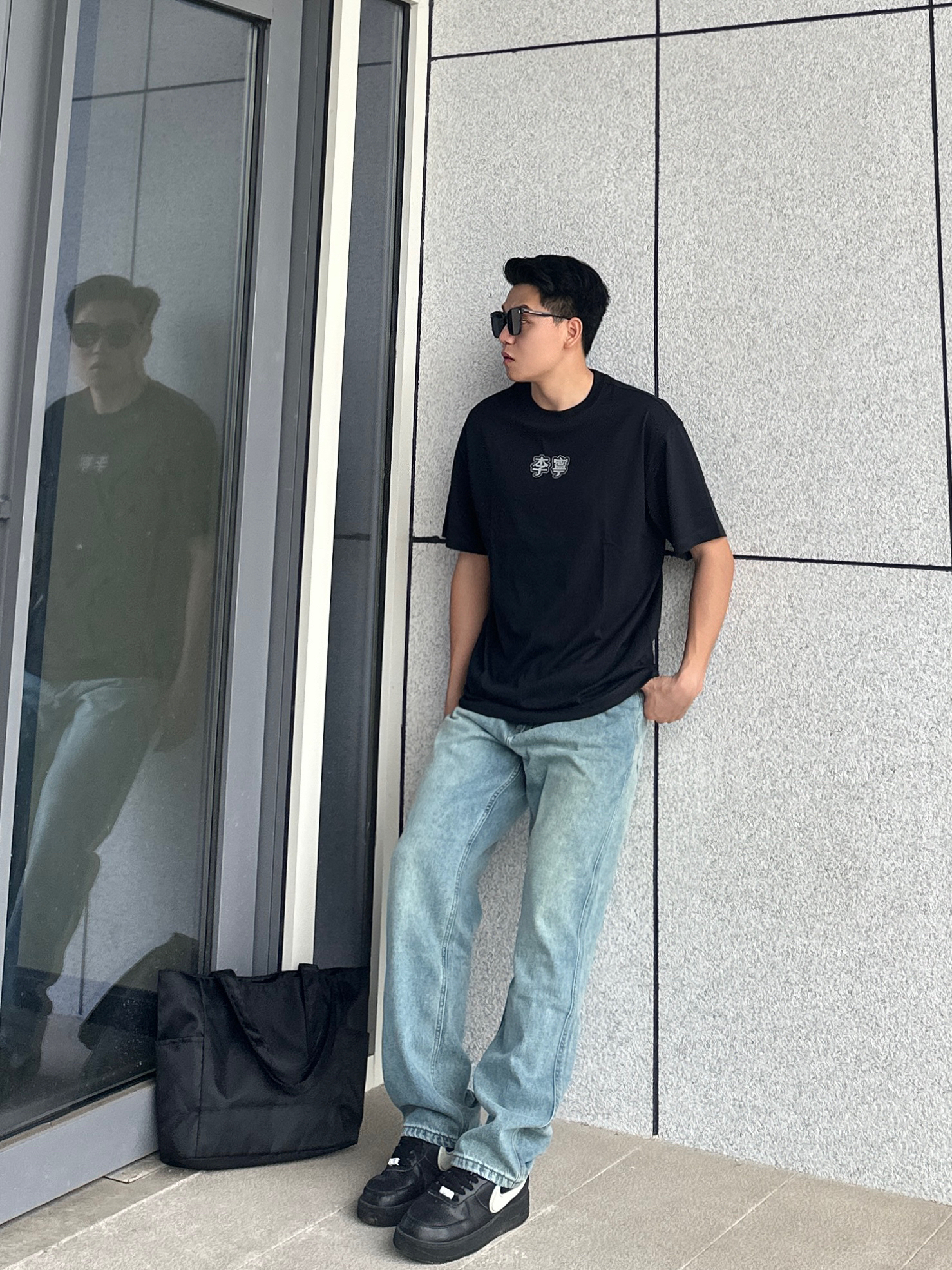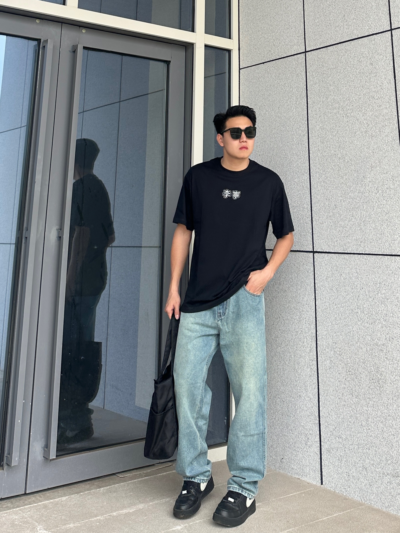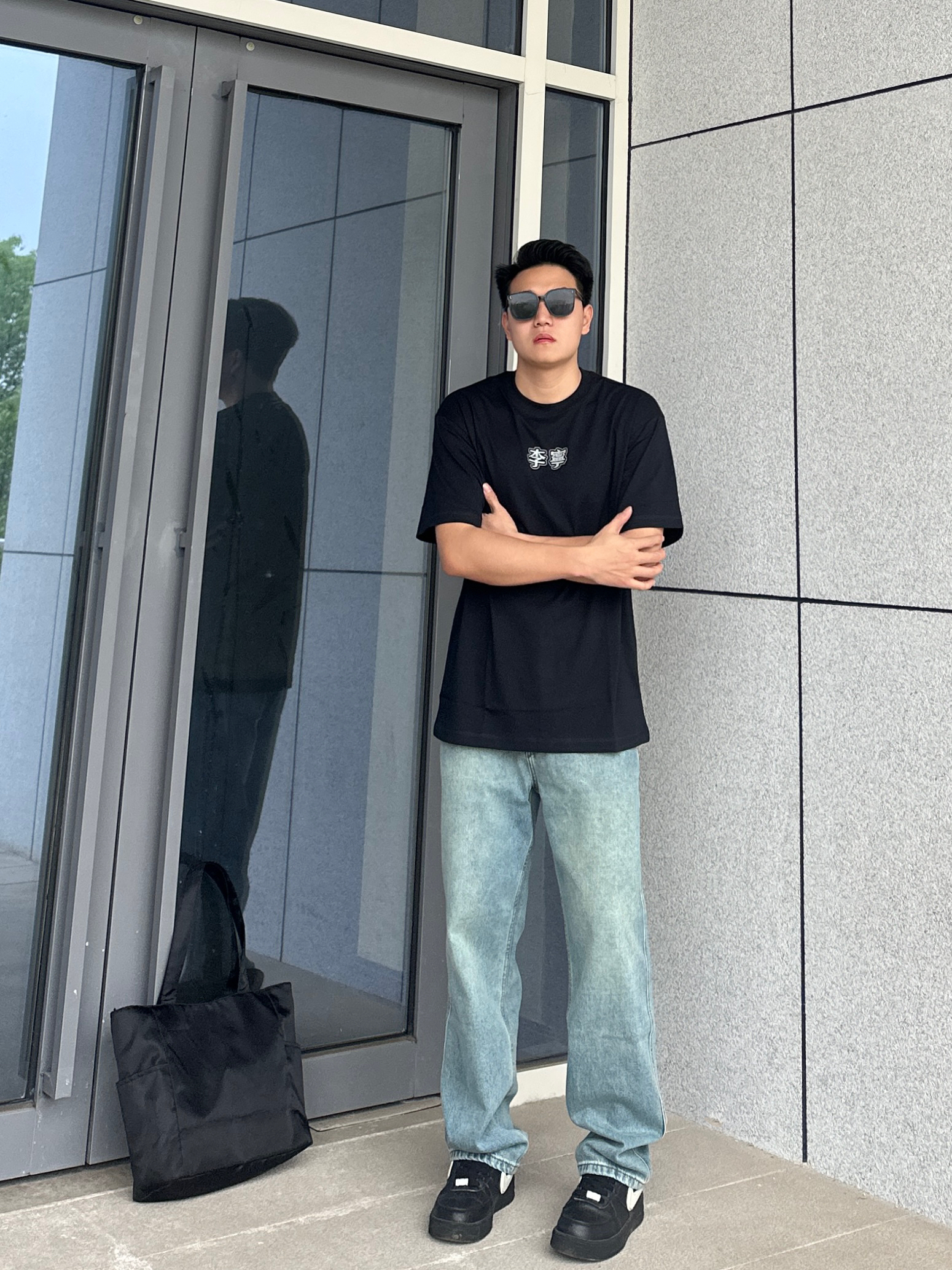 哈喽!大家好,这里是小聂🙋🏻♂️ 不管男生还是女生都可以尝试的穿搭来喽 一件李宁的黑色圆领T恤,简约大气的设计我一整个爱住了! 看到价格的我震惊了,性价比好高! 版型面料都很棒 日常or运动穿都很不错,颜值也高 搭配上蓝色直筒牛仔裤 黑T➕蓝牛仔的搭配真的经典又耐看,时尚感也是轻松拿捏住!