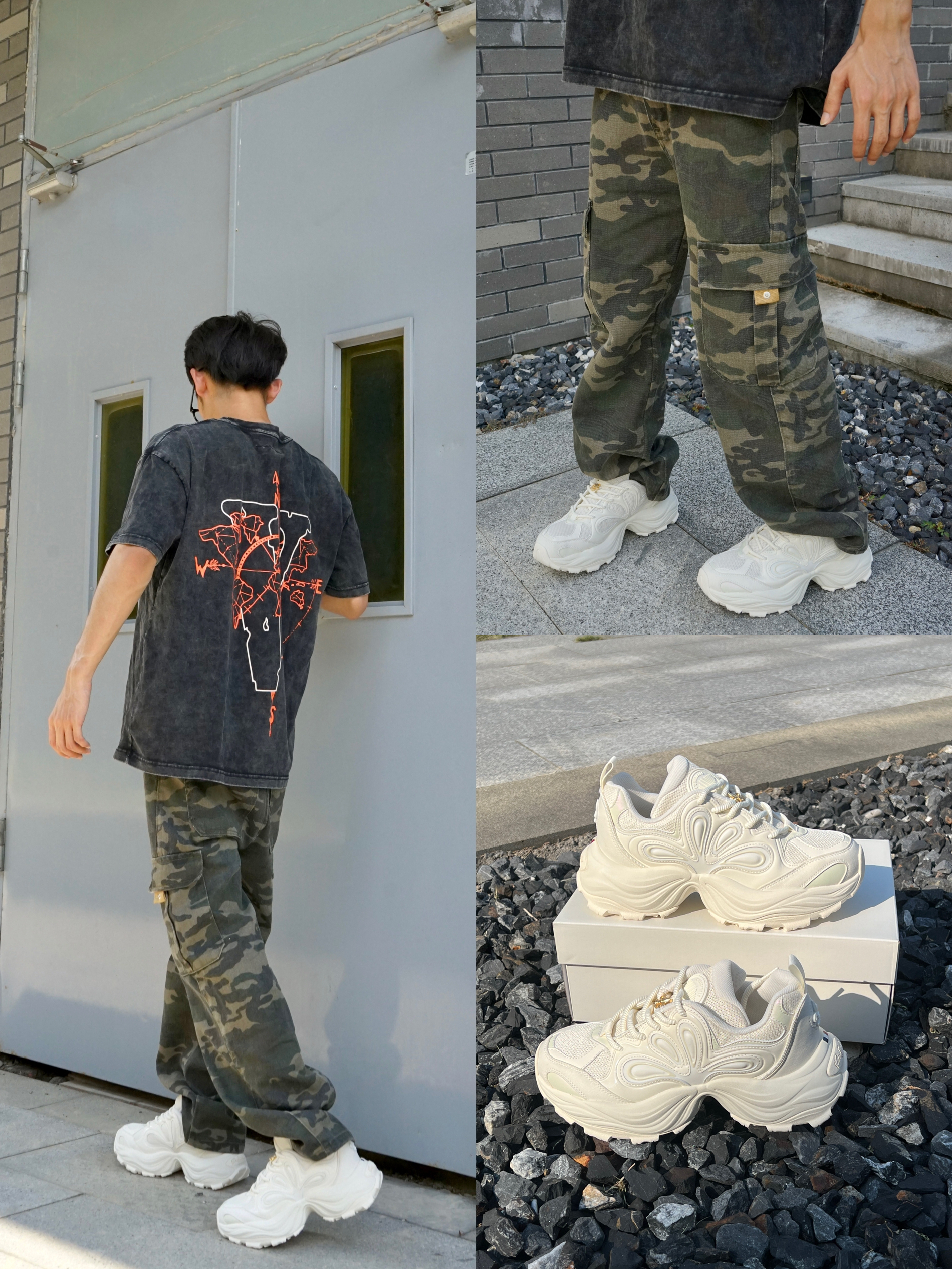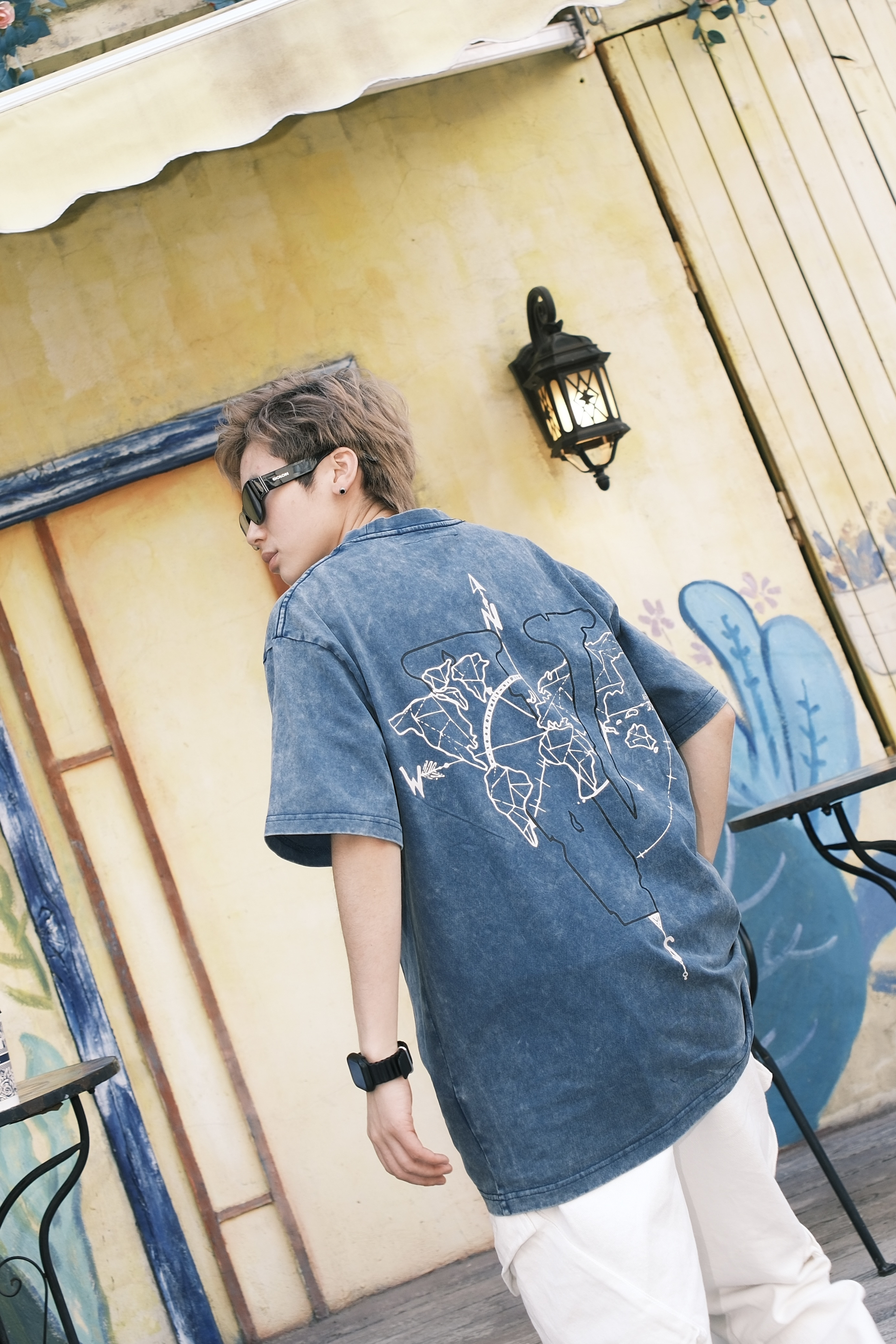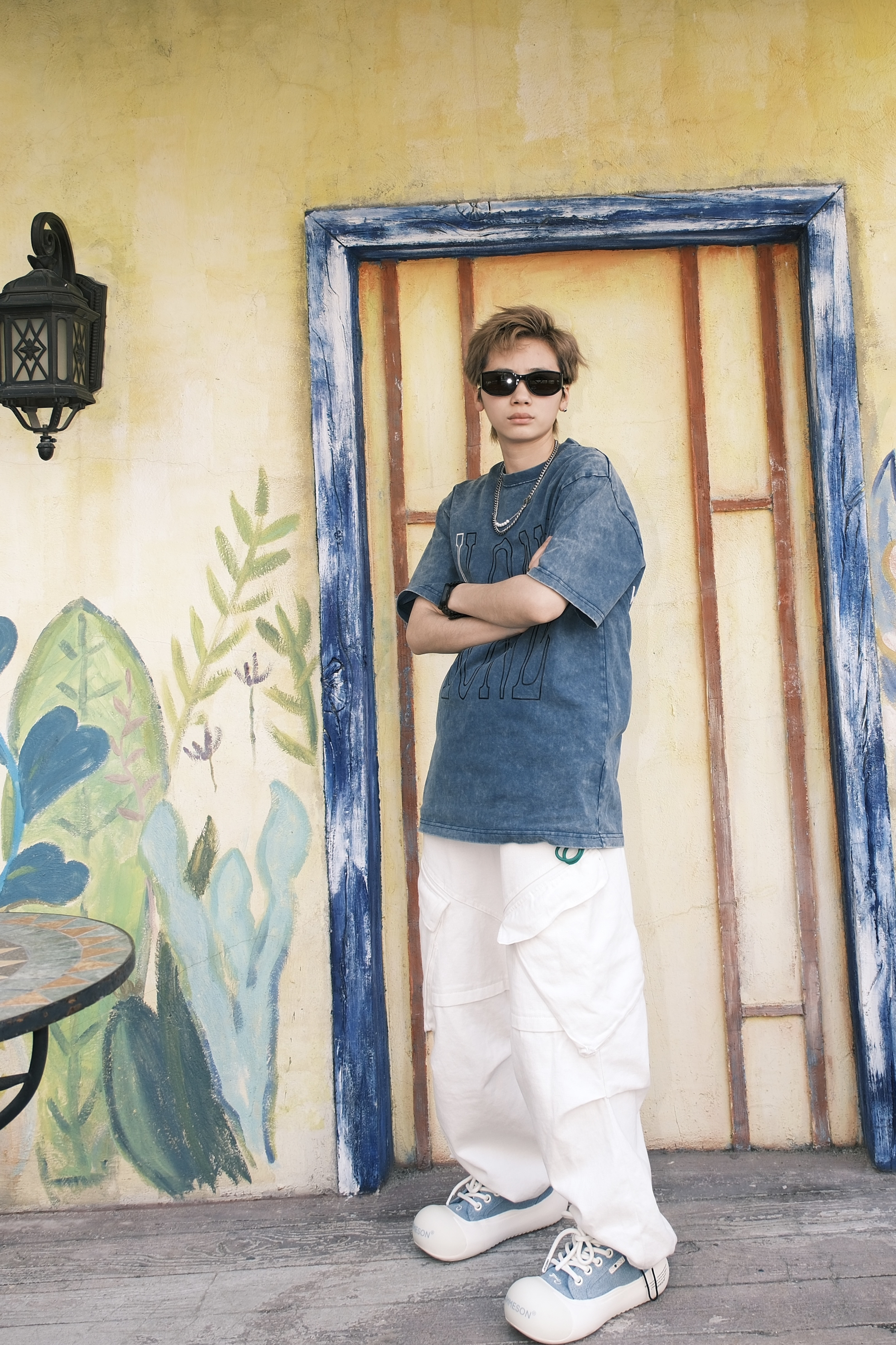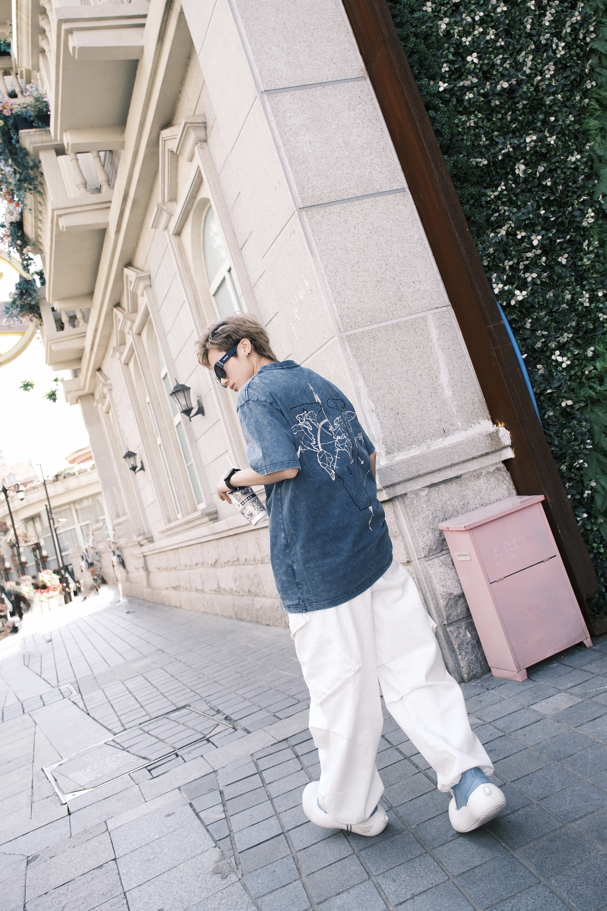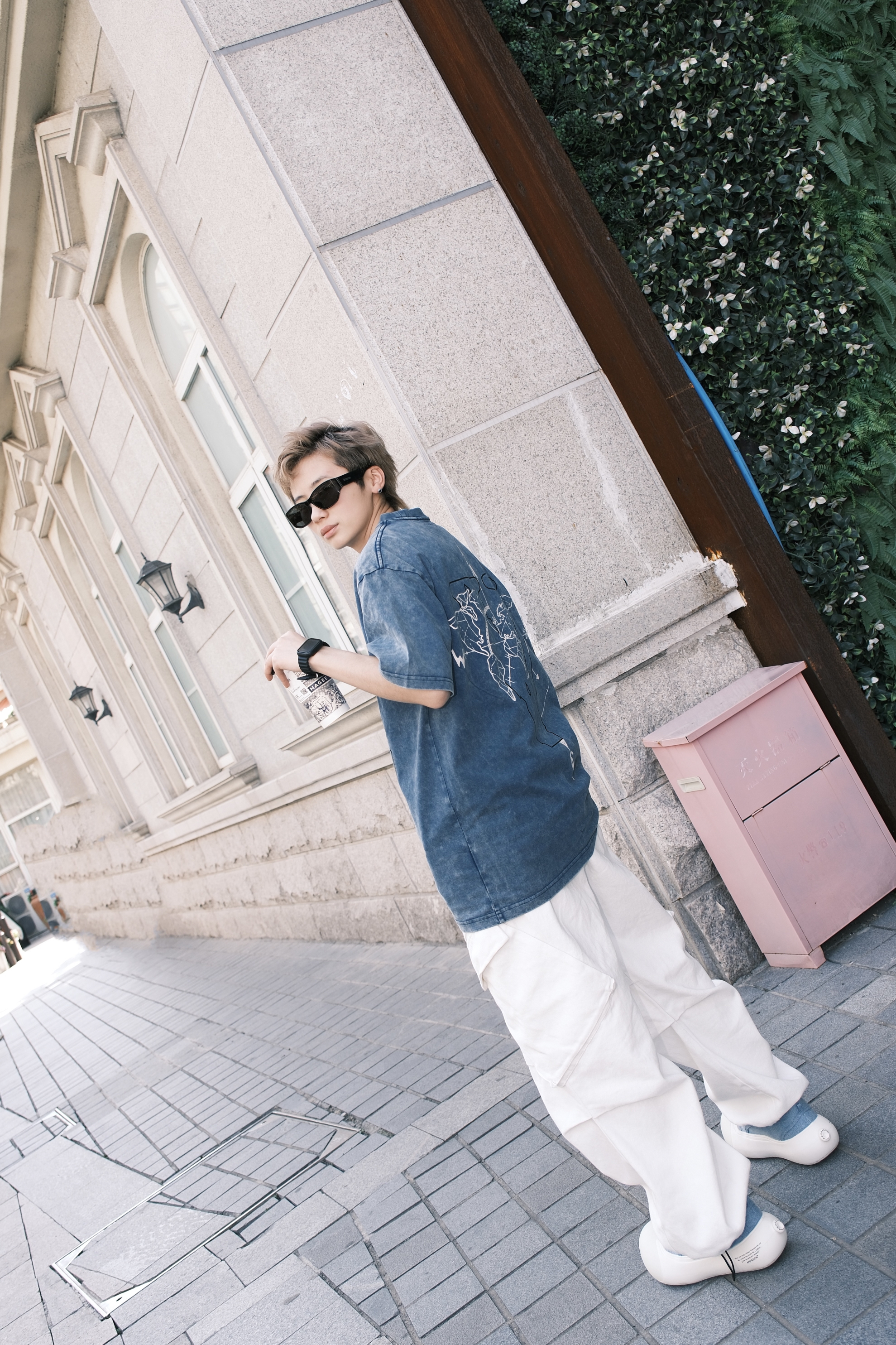 今天搭配没有太多技巧 上下呼应的同色系穿搭,永远不会出错 上衣选一件宽松的短袖 水洗做旧的蓝色,有点复古街头感 正面的大logo加上背面的航海元素的图案,很有辨识度 下身搭配白色工装裤 简约的大口袋设计,上身就很酷 最后来一双白蓝拼色的板鞋 牛仔拼接材质的鞋面,舒服又透气 TPU的水晶胖鞋头再加上5cm的厚底 上脚增高显瘦,踩上去也比较软弹 尺码参考:163cm/45kg 上身S码
