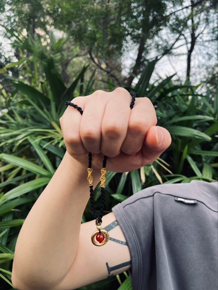 ❤️在我生日这天女朋友送了我这款相思豆平安扣锁骨链,这条项链非常精美,极简的设计风格,搭配相思豆和平安扣的元素,寓意着平安顺遂。 ❤️999 足金的材质保证了其品质和价值,编织黑绳的设计则增添了一份时尚感。刚一到手女朋友就迫不及待的说要给我戴上看看,不得不说戴上之后整个人都变优雅多了,哈哈哈哈哈哈哈,对于女朋友送的礼物,那当然是超级喜欢呀 (图片来自博主:狮子一米八)