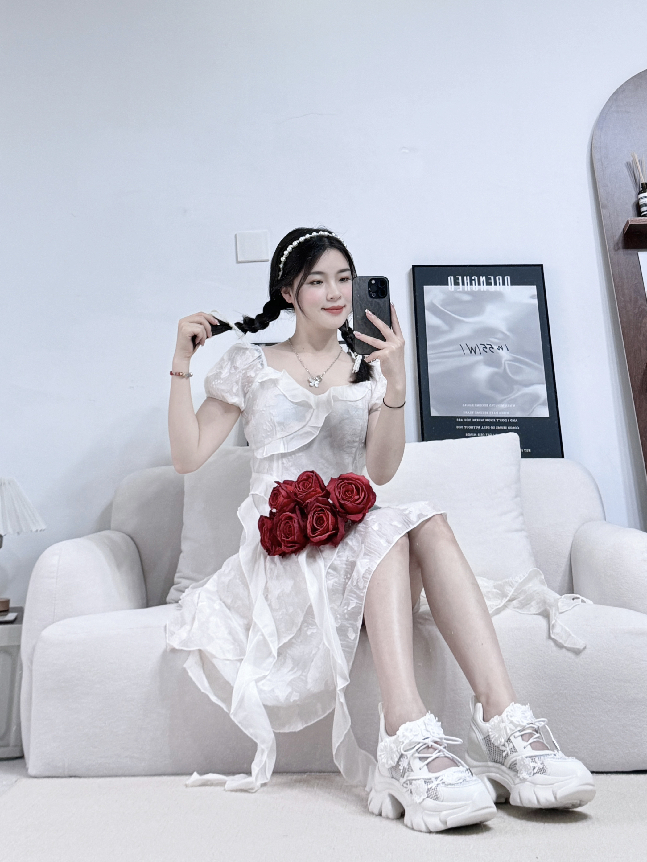 约会前 给自己戴上珍珠头箍👰🏻 给自己买条白色裙子🤳 给自己穿上白色蕾丝鞋👟 给自己买一束鲜艳的玫瑰🌹 宠爱自己❤️永不过时⏰