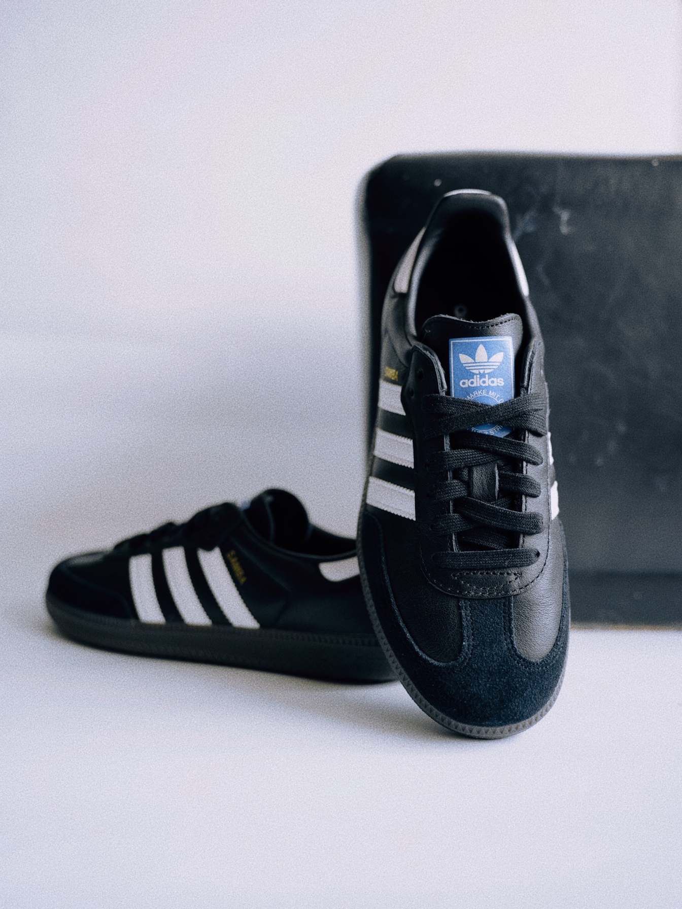 要论百搭 Nike有经典的空军一号 adidas则有Samba系列 我真的想不到有那条裤子是不能搭配这个鞋型的 无论牛仔裤,短裤,裙子 都能轻松驾驭 这双销量第二的黑白色 将会是我这个夏天出街率超高的一双鞋子! 短裤搭配黑白袜 都能轻松拿捏~